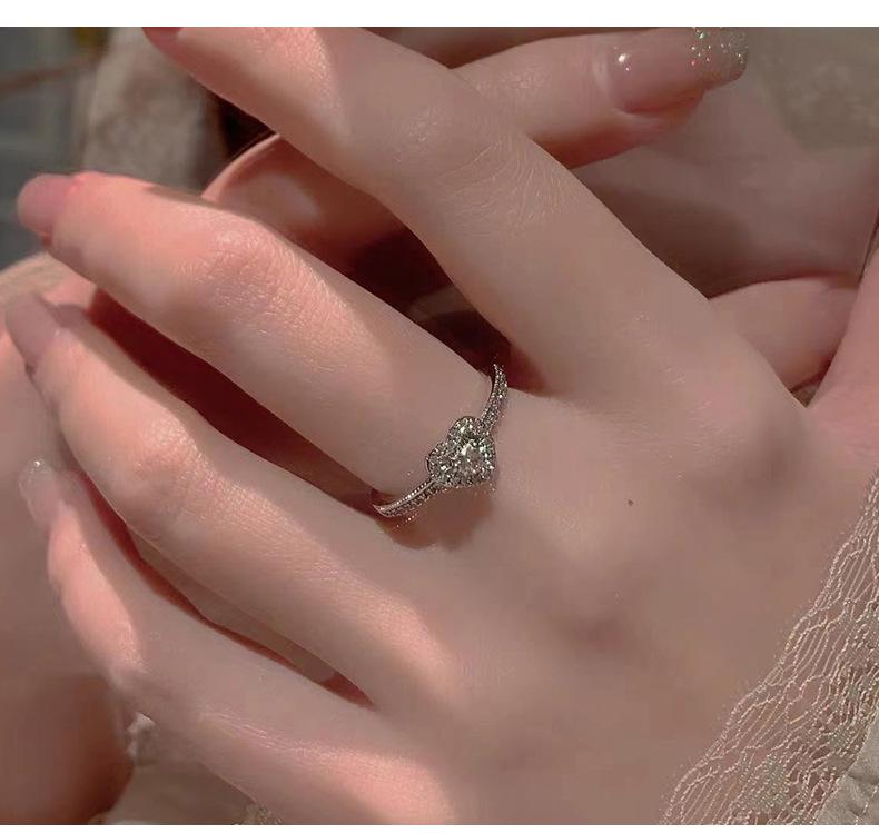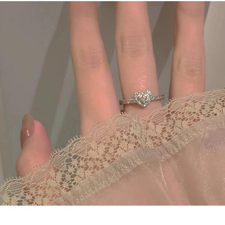Elegante Anillo de Amor con Pedrería de Polvo Estilo Francés para Mujer Diseño Nicho Exquisito Anillo para Dedo Simple Personalidad Moderna de Celebridad de Internet