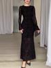 Vestido largo de encaje con cuello redondo y temperamento sexy de comercio exterior europeo y americano transfronterizo 2025.
