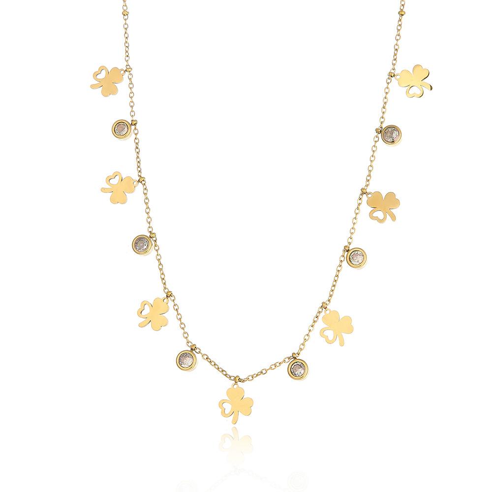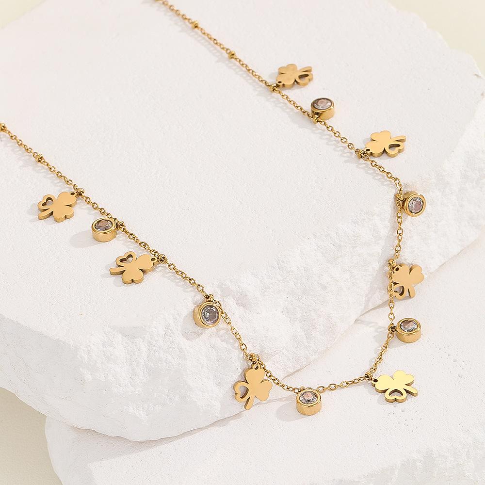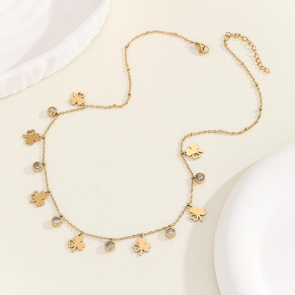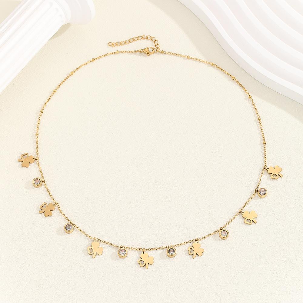Collar de acero de titanio con trébol de amor, accesorios de alta calidad para viajeros de moda, joyería pequeña, estilo simple y fresco.