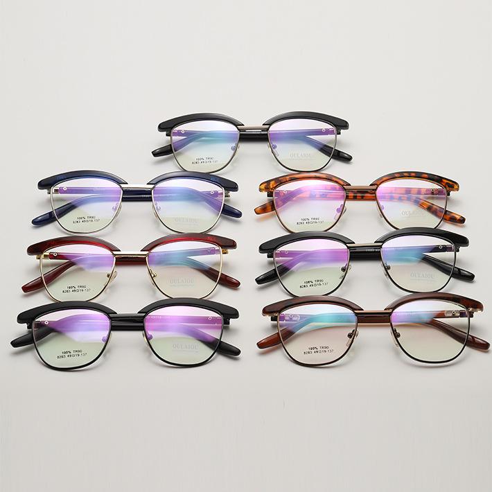 Montura de media montura metálica Oleo para gafas, moderna y moderna, sencilla, informal, sin montura, plana.