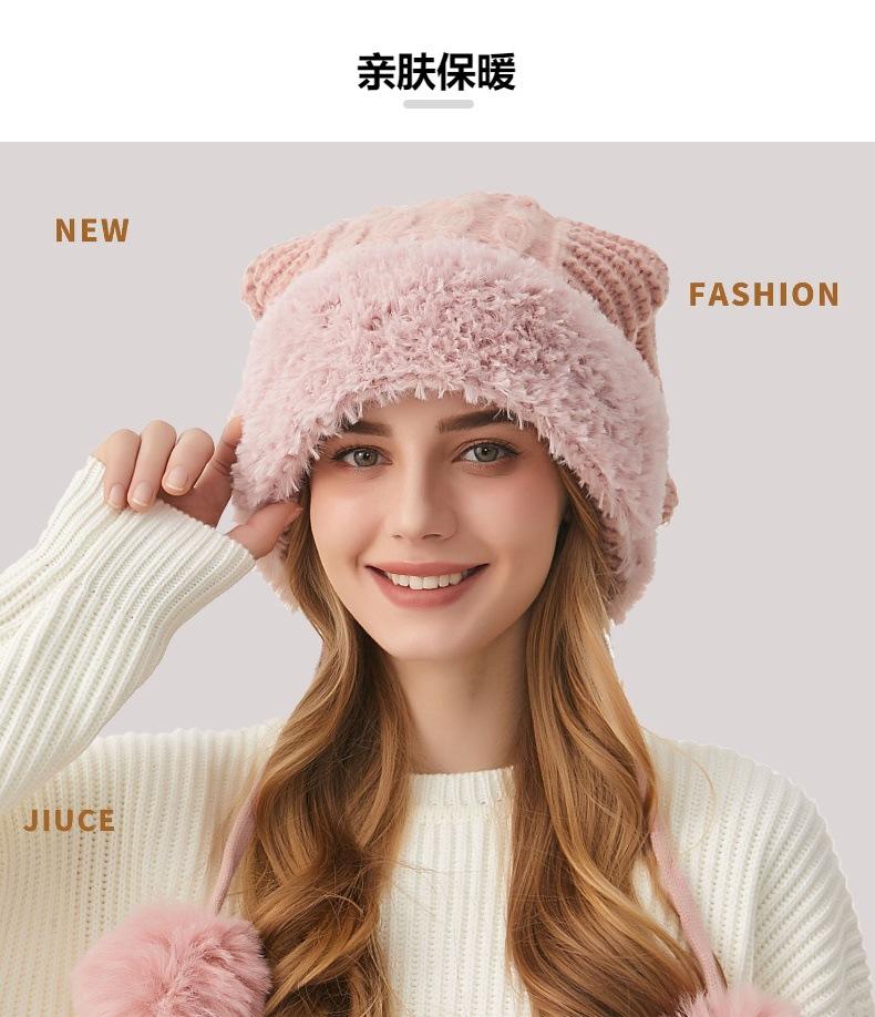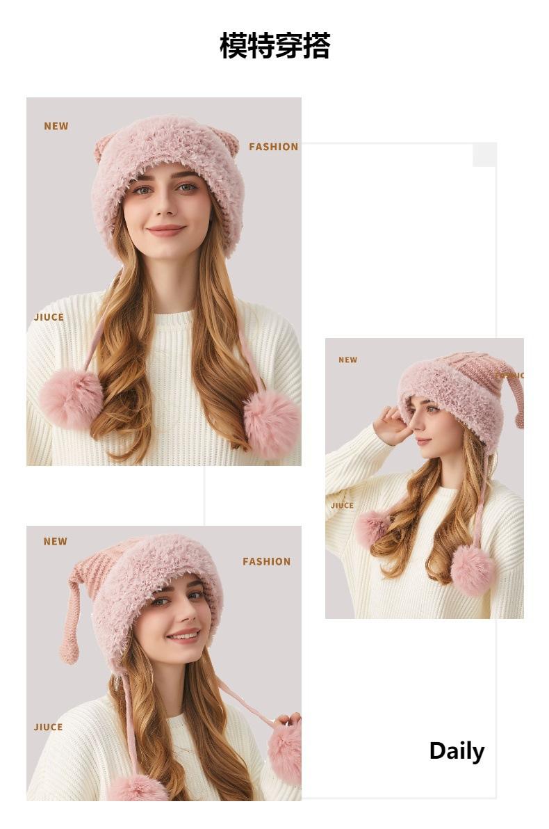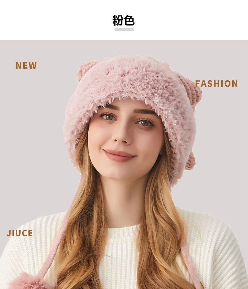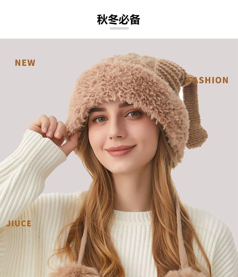 Gorro de punto para mujer, otoño e invierno, nuevo gorro de lana gruesa, gorro cálido de invierno transfronterizo de comercio exterior, gorro de protección auditiva de dibujos animados de Europa y América, tendencia