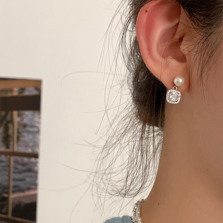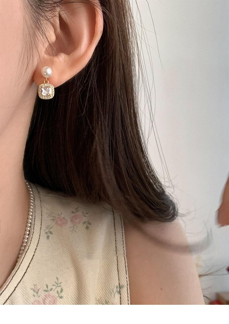 Pendientes de circonita y azúcar con perla retro francesa para niñas, exquisitos, elegantes, sencillos y con personalidad, que combinan con todo. ¡Novedad!