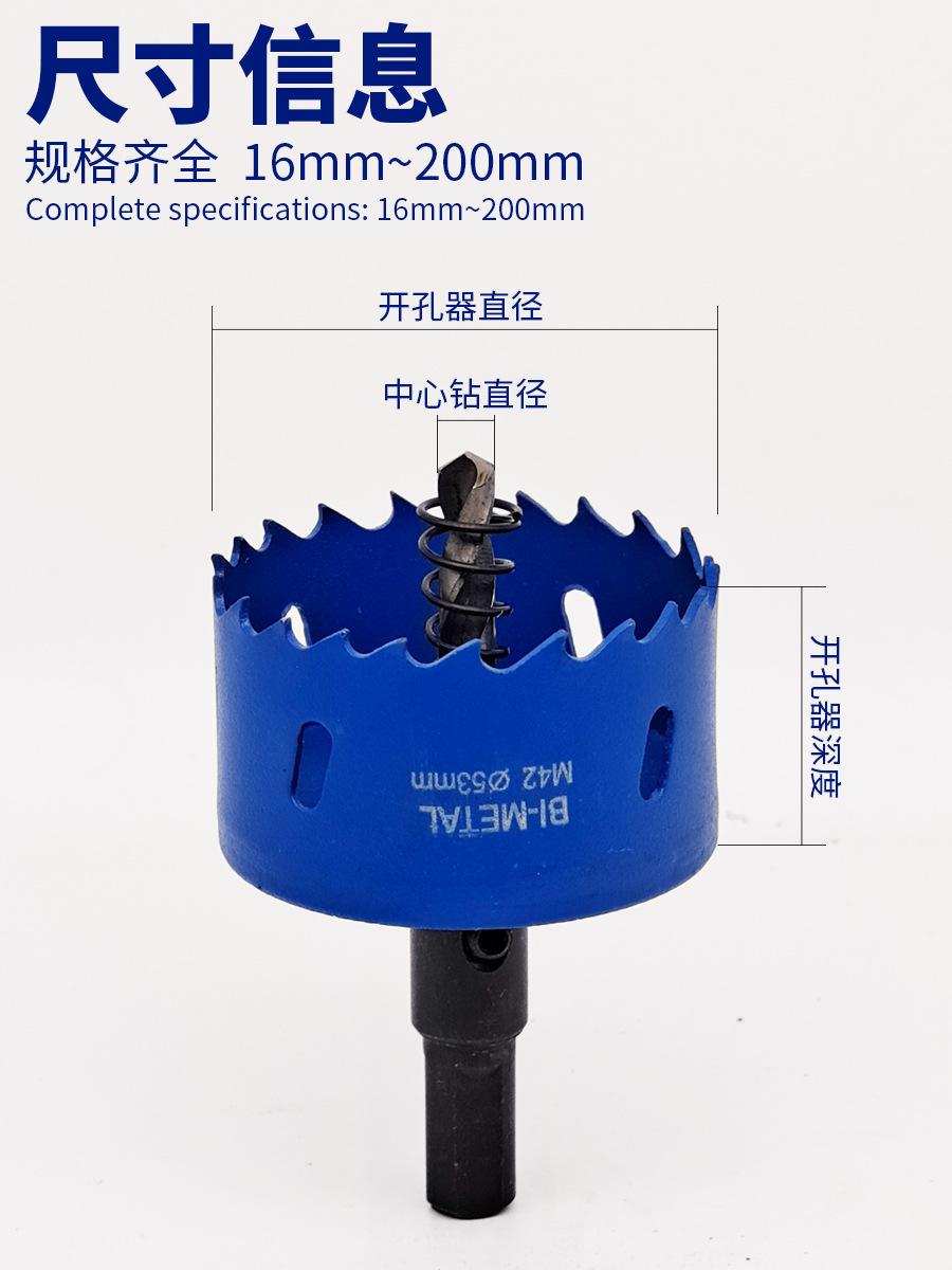 Abridor de agujeros bimetálico para carpintería, taladro para agujeros, luz descendente, PVC, plástico, placa de yeso, chapa de hierro gruesa, apertura redonda, azul