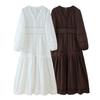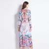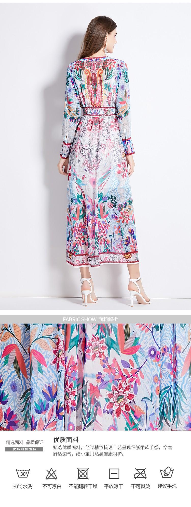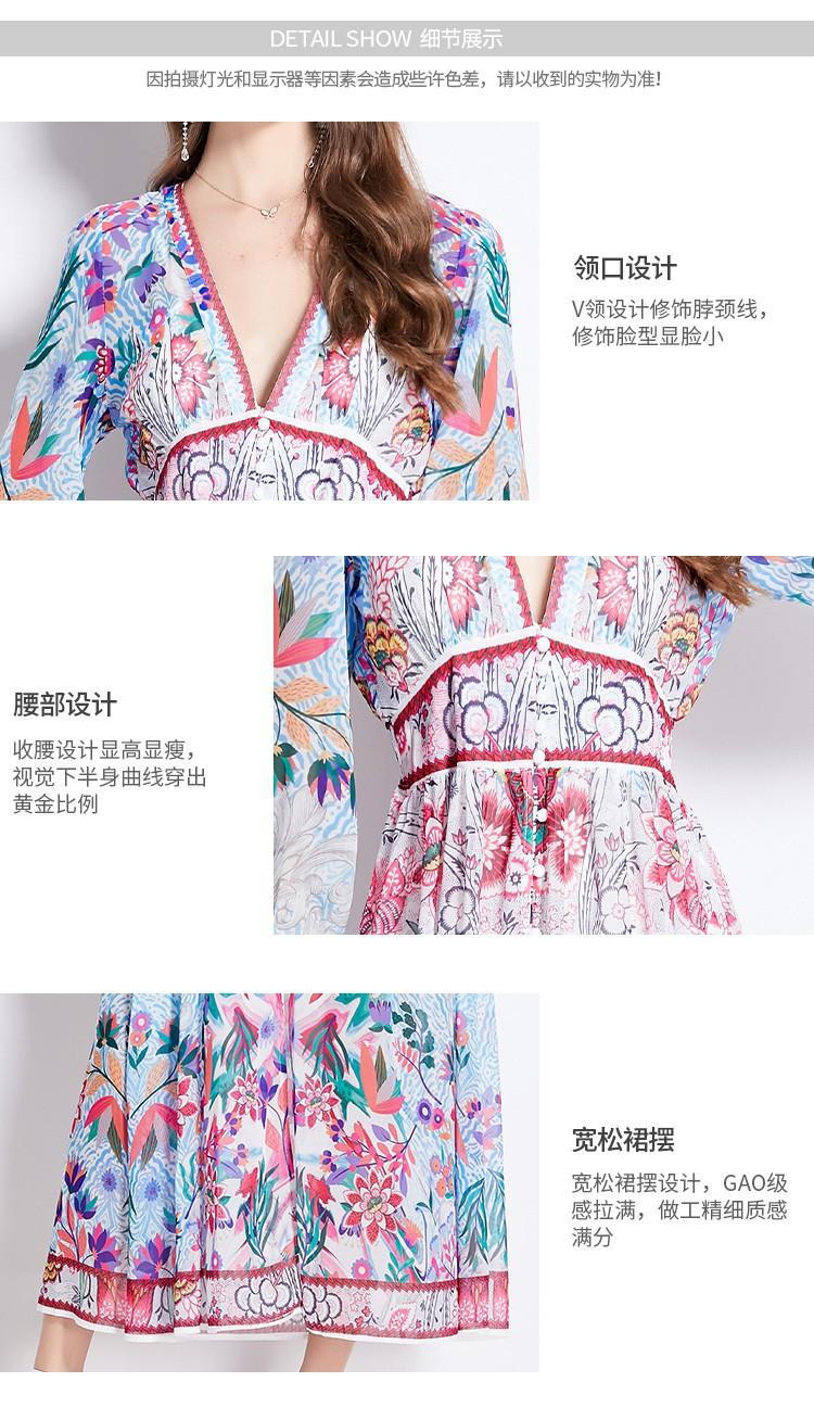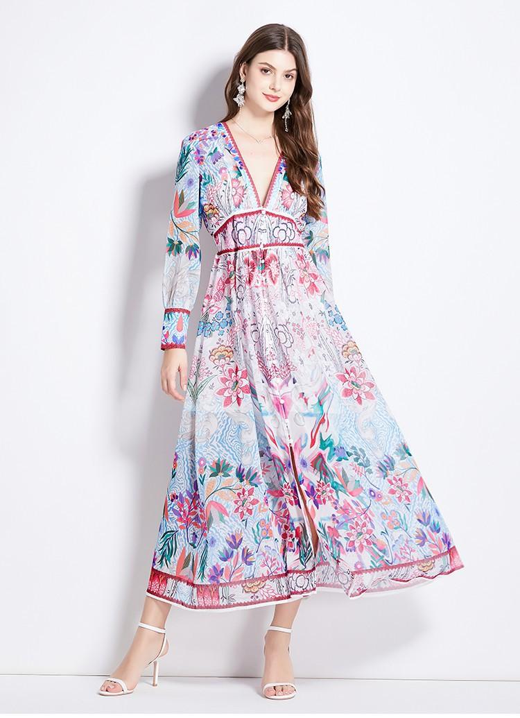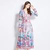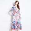 Vestido de mujer con cuello en V, manga larga, estampado y elegante, estilo festivo 2024
