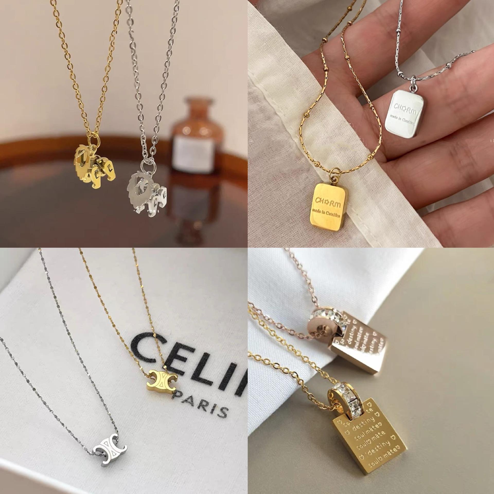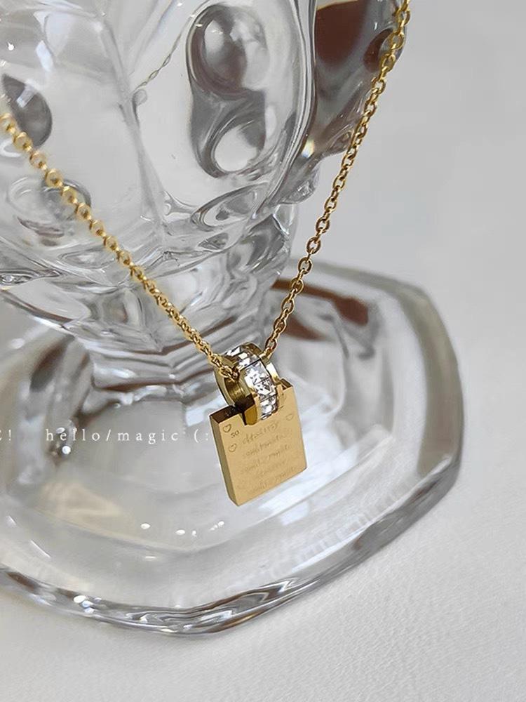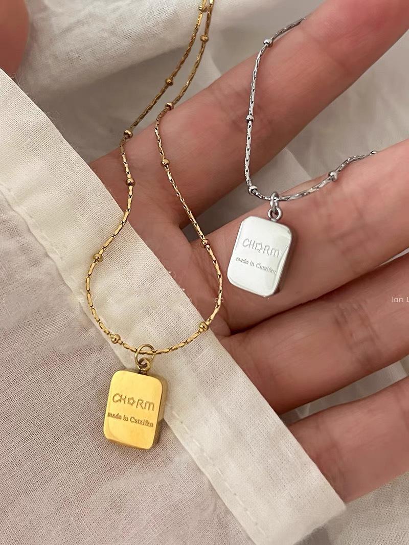 Collar de Alta Gama que No se Desvanece Acero de Titanio Letra Colgante Cuadrado Diseño Nicho Lujo Accesible Simple Cadena Clavícula