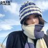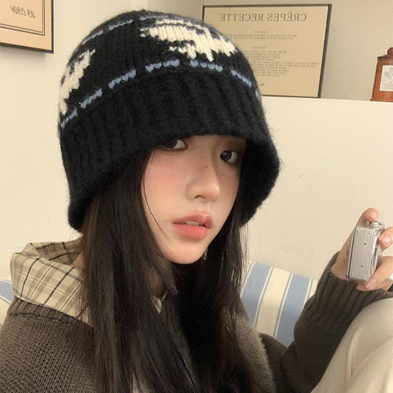 Gorro de punto vintage de otoño e invierno para hombre y mujer, de jacquard, de crochet, con cabeza grande, pequeño, cálido y grueso, con protección para las orejas.