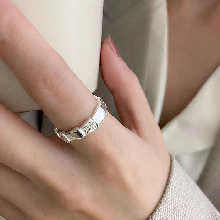Anillo de plata de ley S925 con diseño de nicho para mujer, anillo abierto personalizado de moda, anillo de dedo con sentido avanzado.