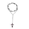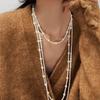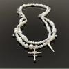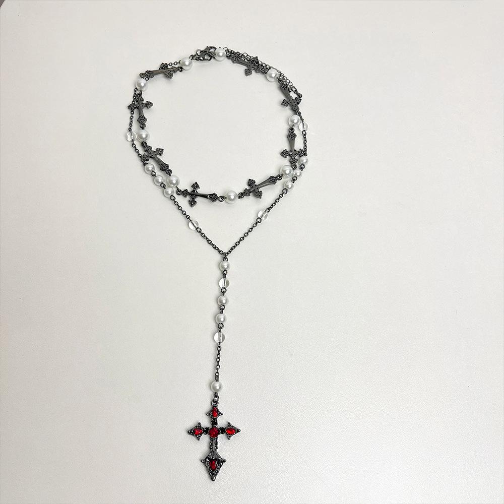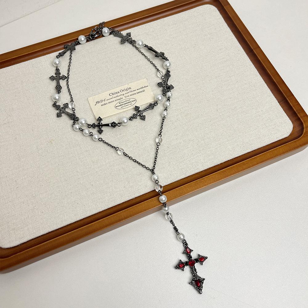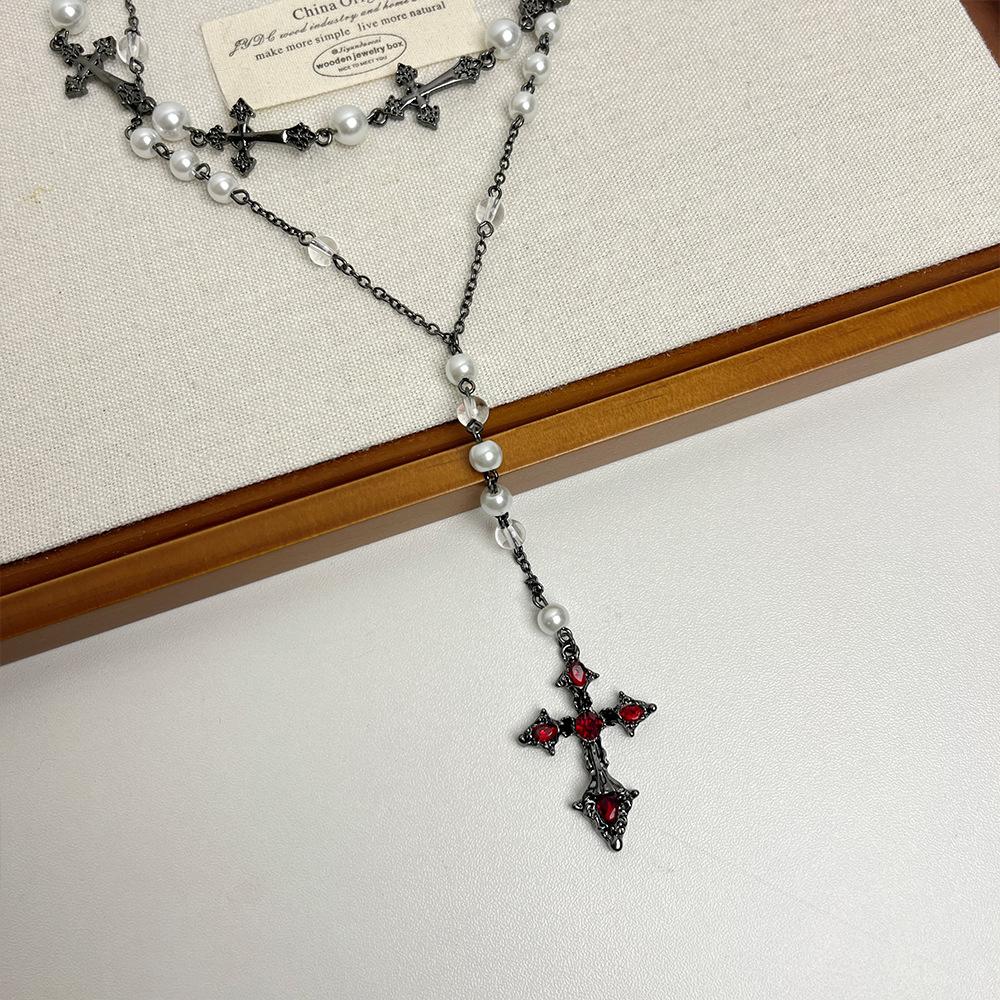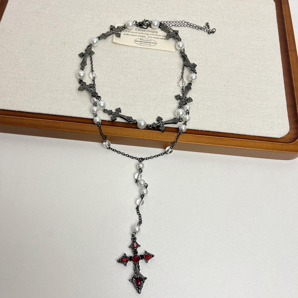 Collar de Cruz de Perlas Apiladas de Doble Capa para Mujer Otoño e Invierno Cadena Larga de Lana Diseño Retro Nicho Cadena Clavicular