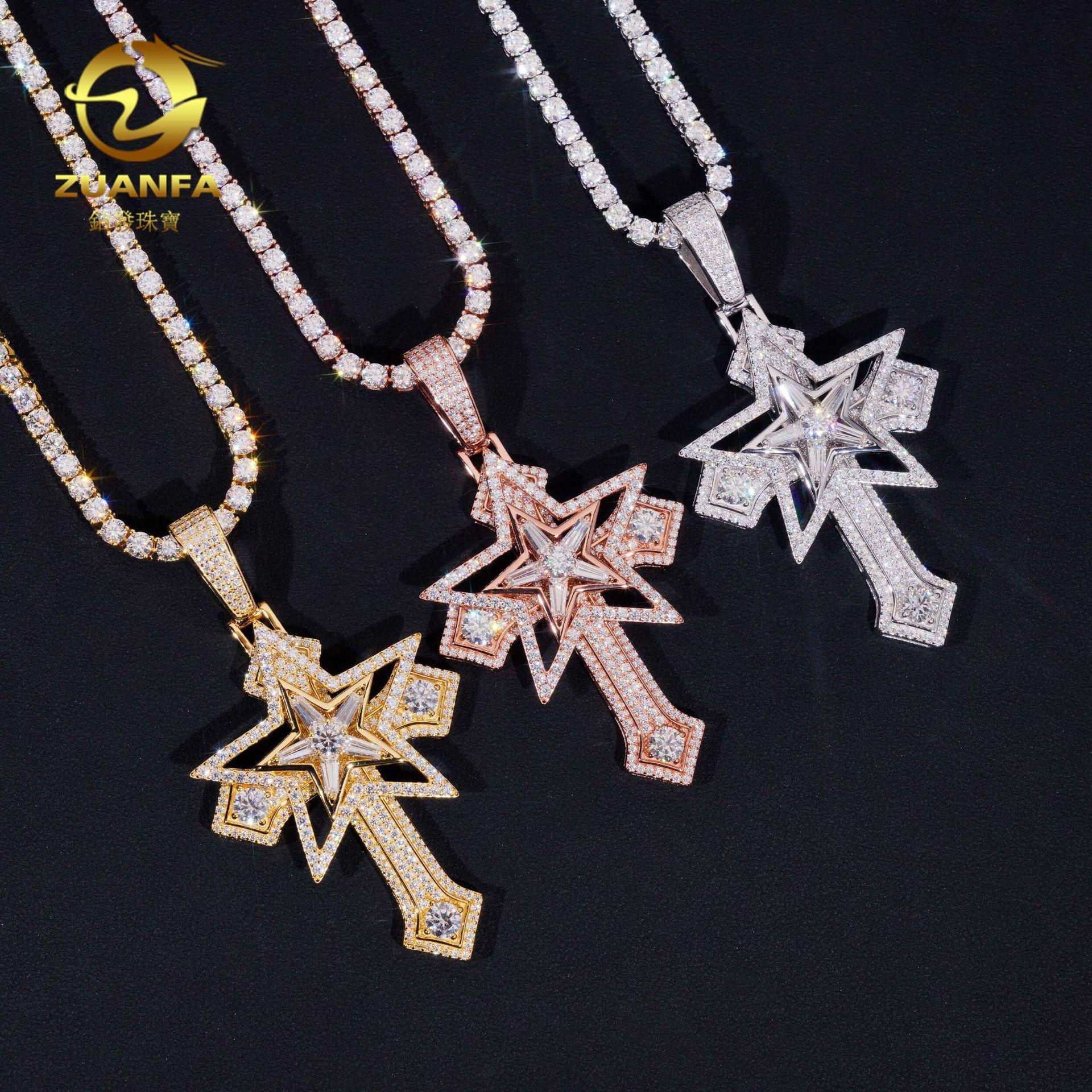 Conjunto de plata S925 con colgante de cruz de moissanita y moissanita, disponible en Europa y Estados Unidos.