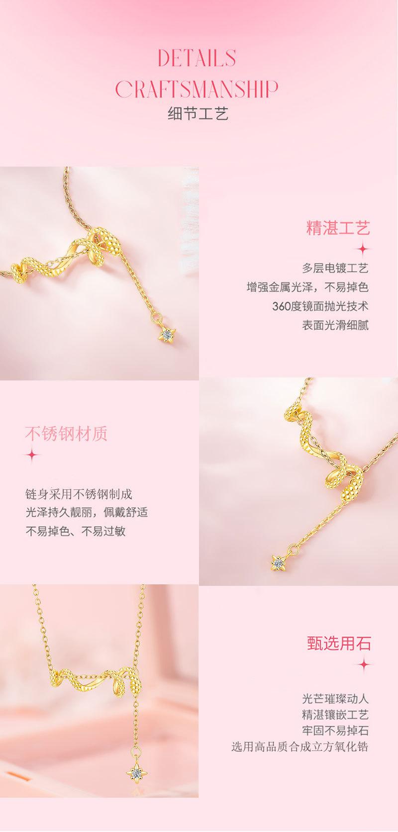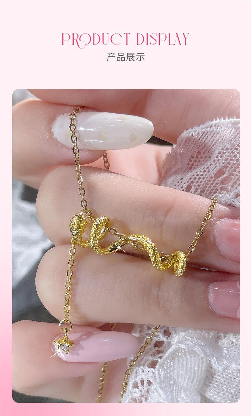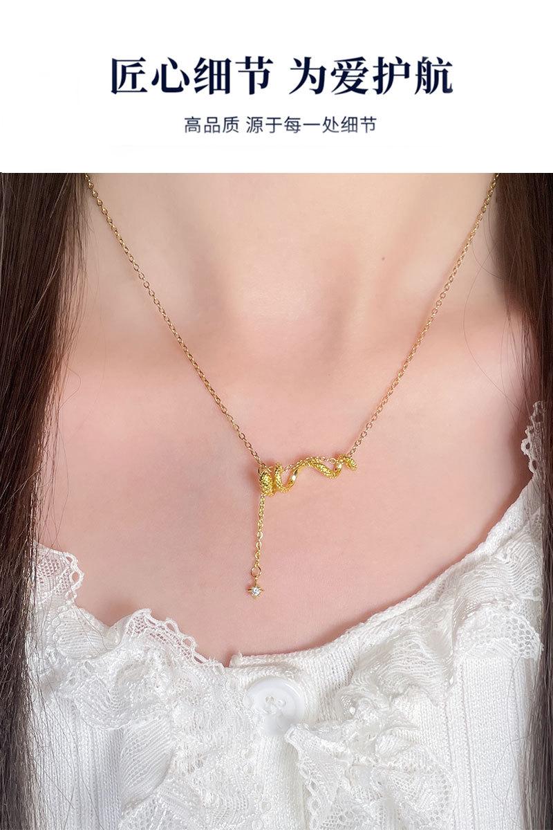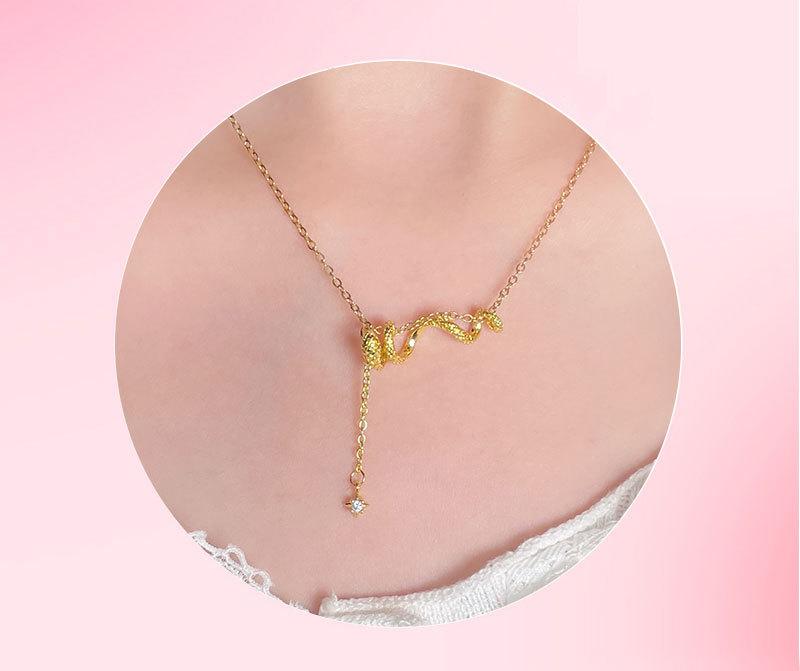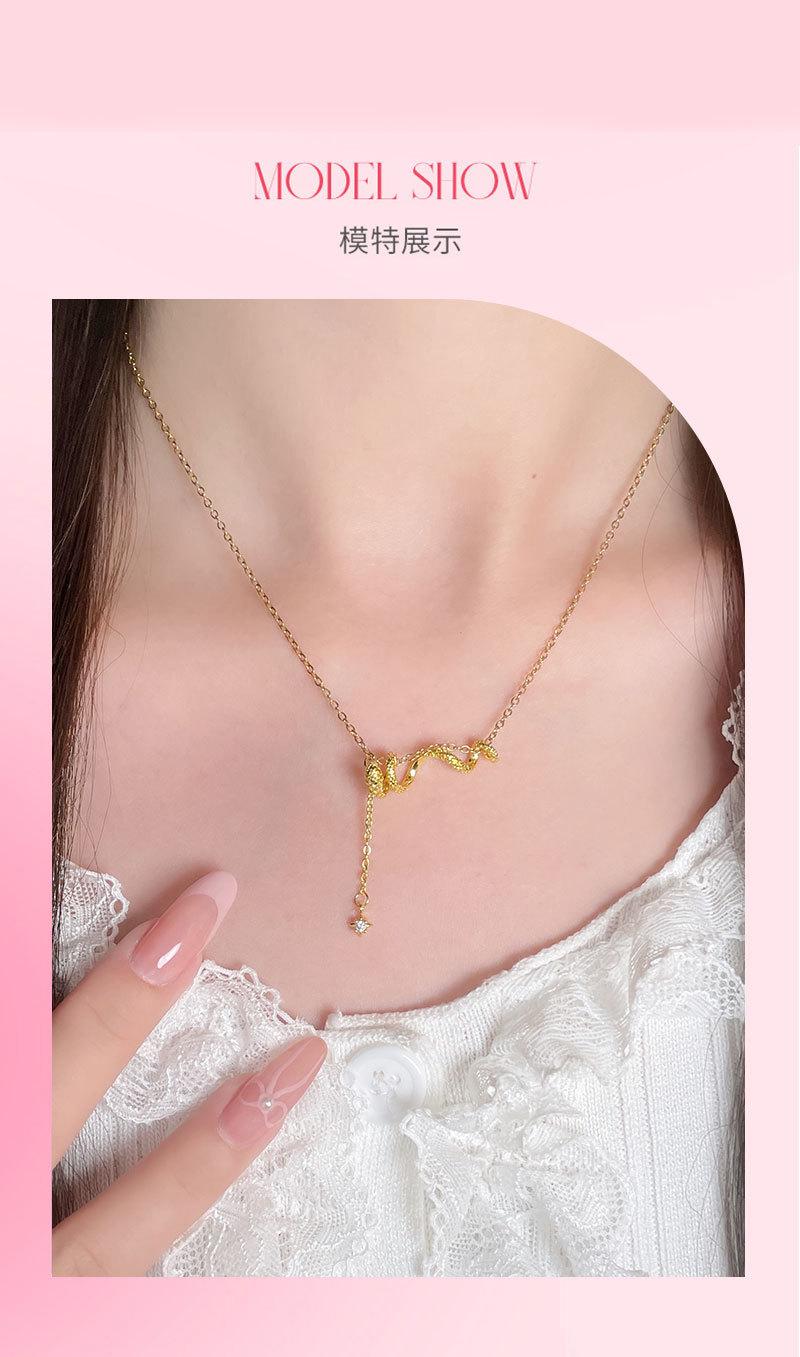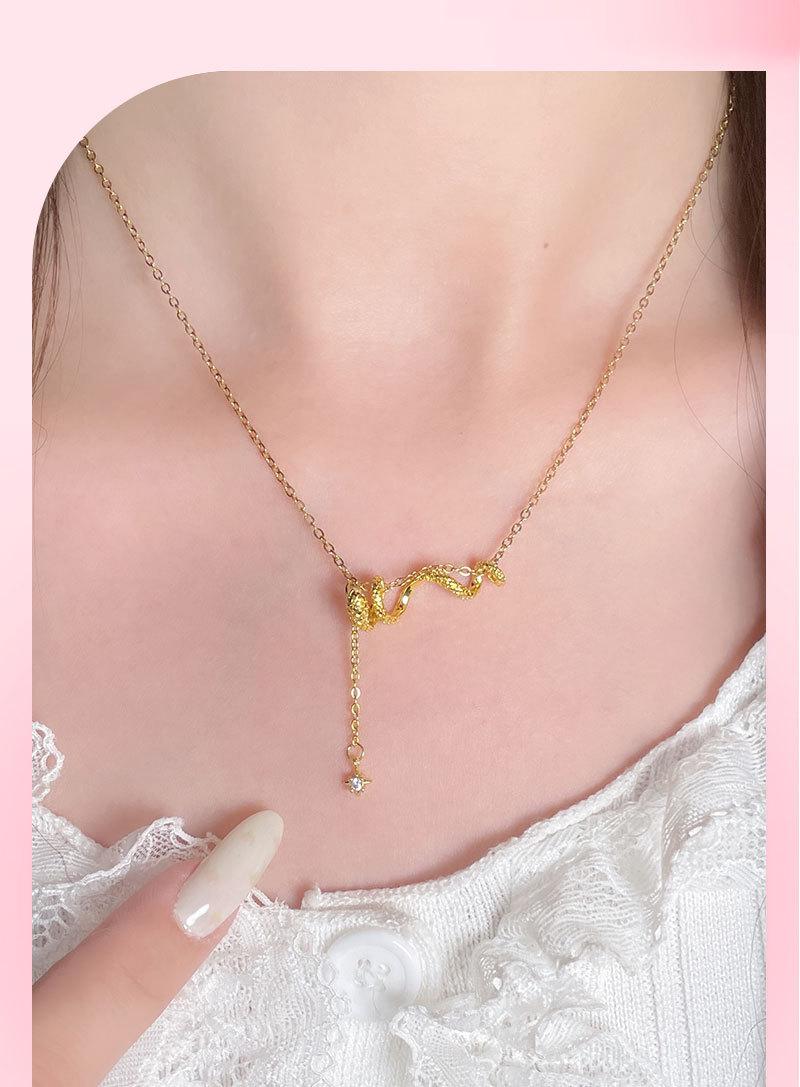 Collar con colgante de serpiente dorada para mujer, diseño original de la serie Zodiac Snake, cadena de clavícula de acero inoxidable con borlas.