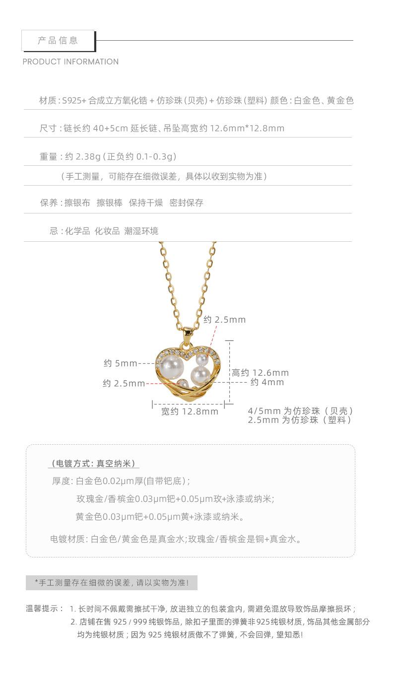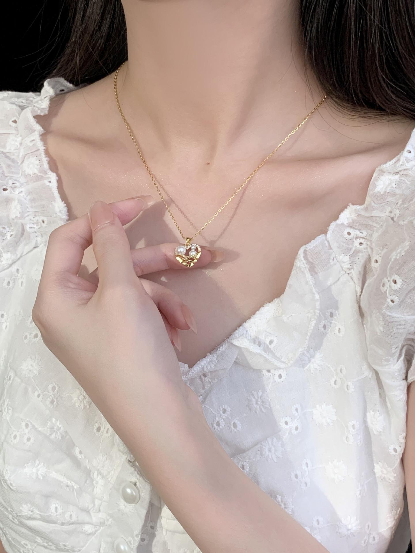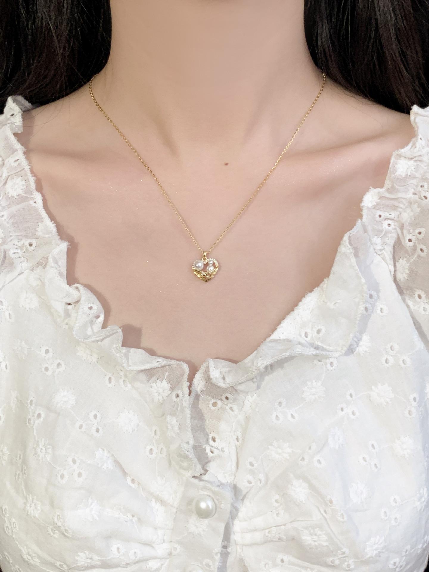 Collar de plata de ley S925 con diseño de corazón de melocotón y perla de imitación, estilo japonés y coreano, con diseño de amor hueco, estilo Tiki, a la moda para mujer