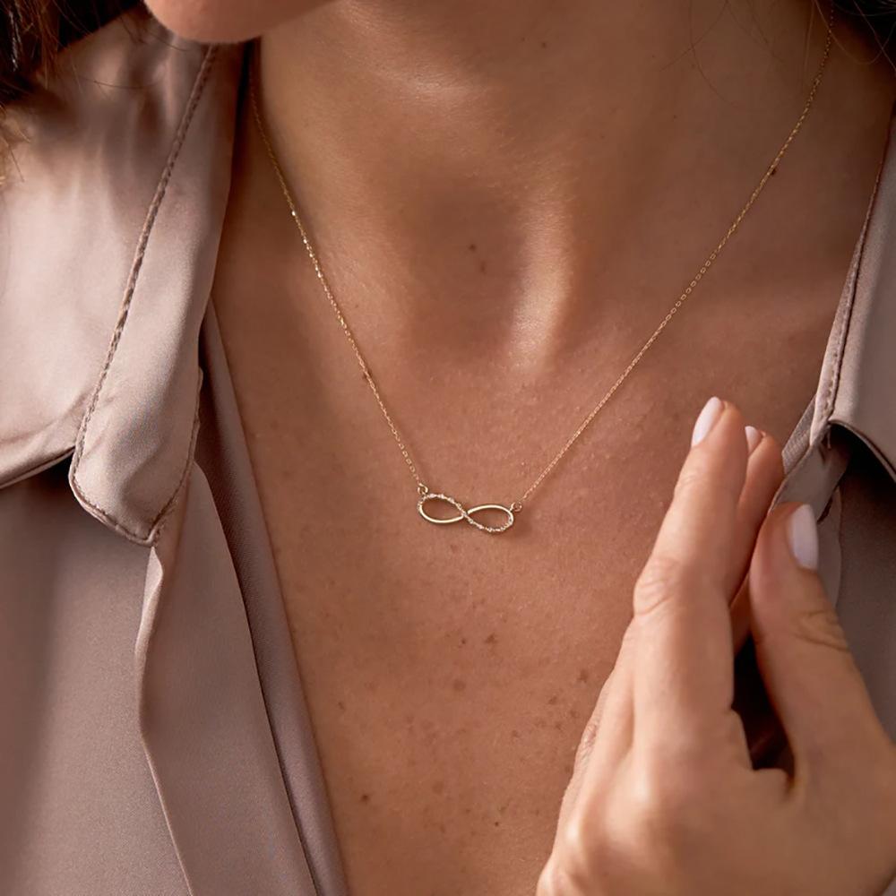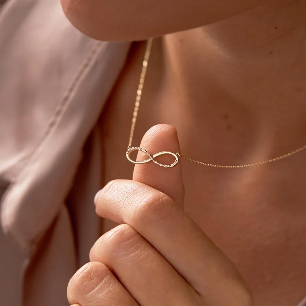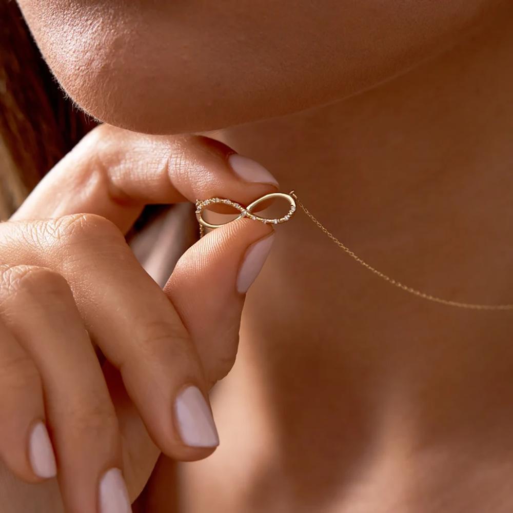 Símbolo Infinito Diseño Creativo Colgante de Zirconia Microincrustada Amor Sagrado Corazón Duradero Estilo Europeo y Americano Joyería de Oro para Mujer