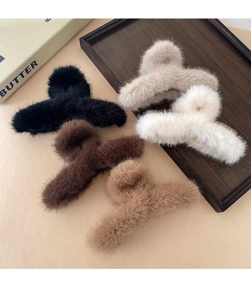 Clip de agarre de felpa de moda de otoño e invierno para mujer, accesorios grandes para el cabello, clip de tiburón de disco para el cabello, horquilla de sentido avanzado, clip para la cabeza en la parte posterior, tocados