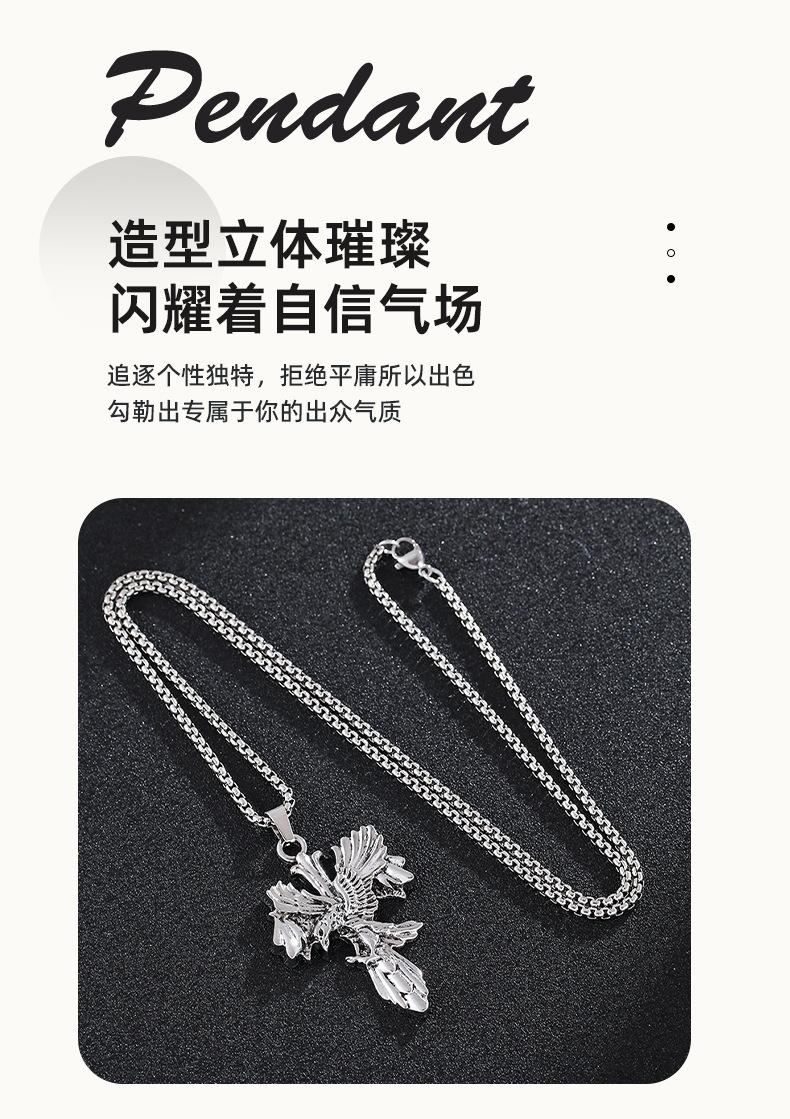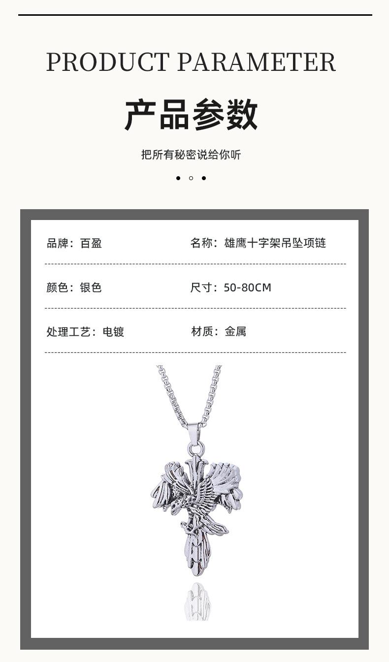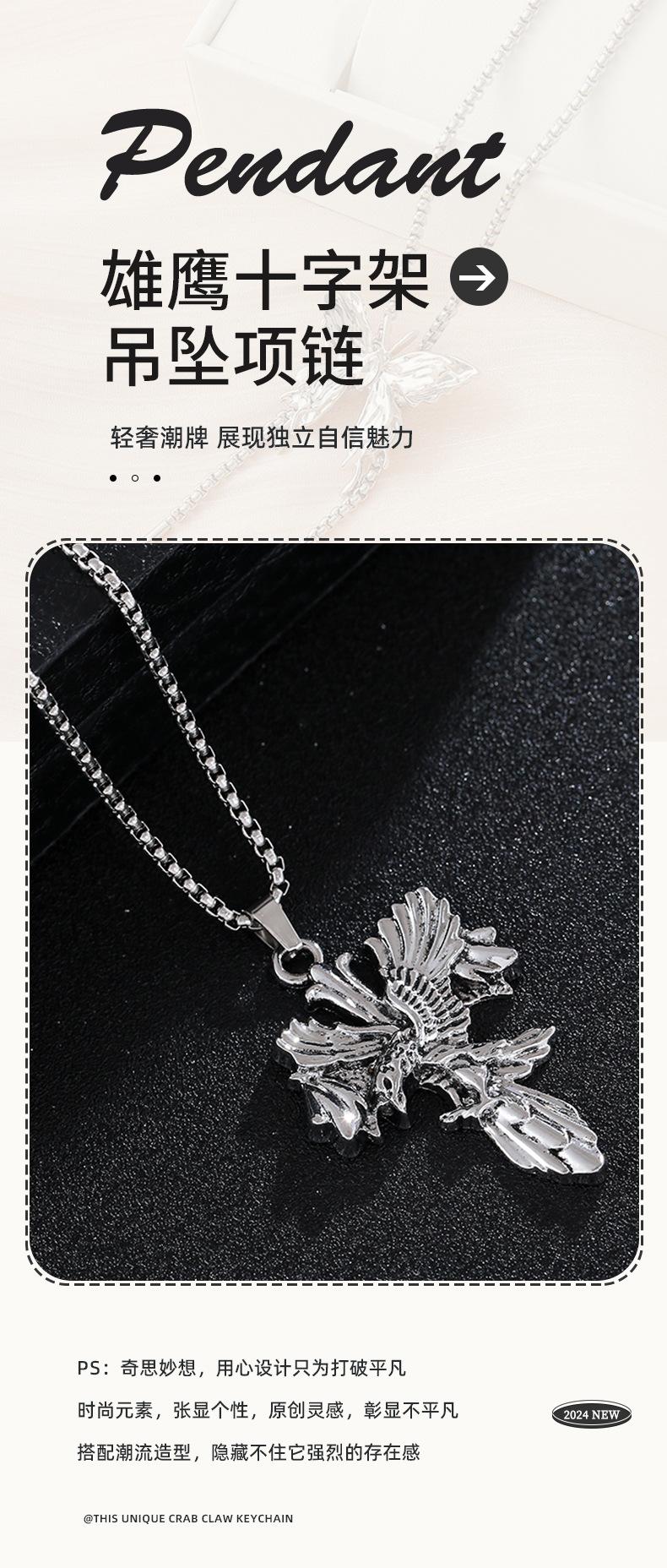 Colgante de cruz de águila de aleación de calle distintiva de estilo americano, collar y pendientes hechos a mano, estilo hip hop retro.