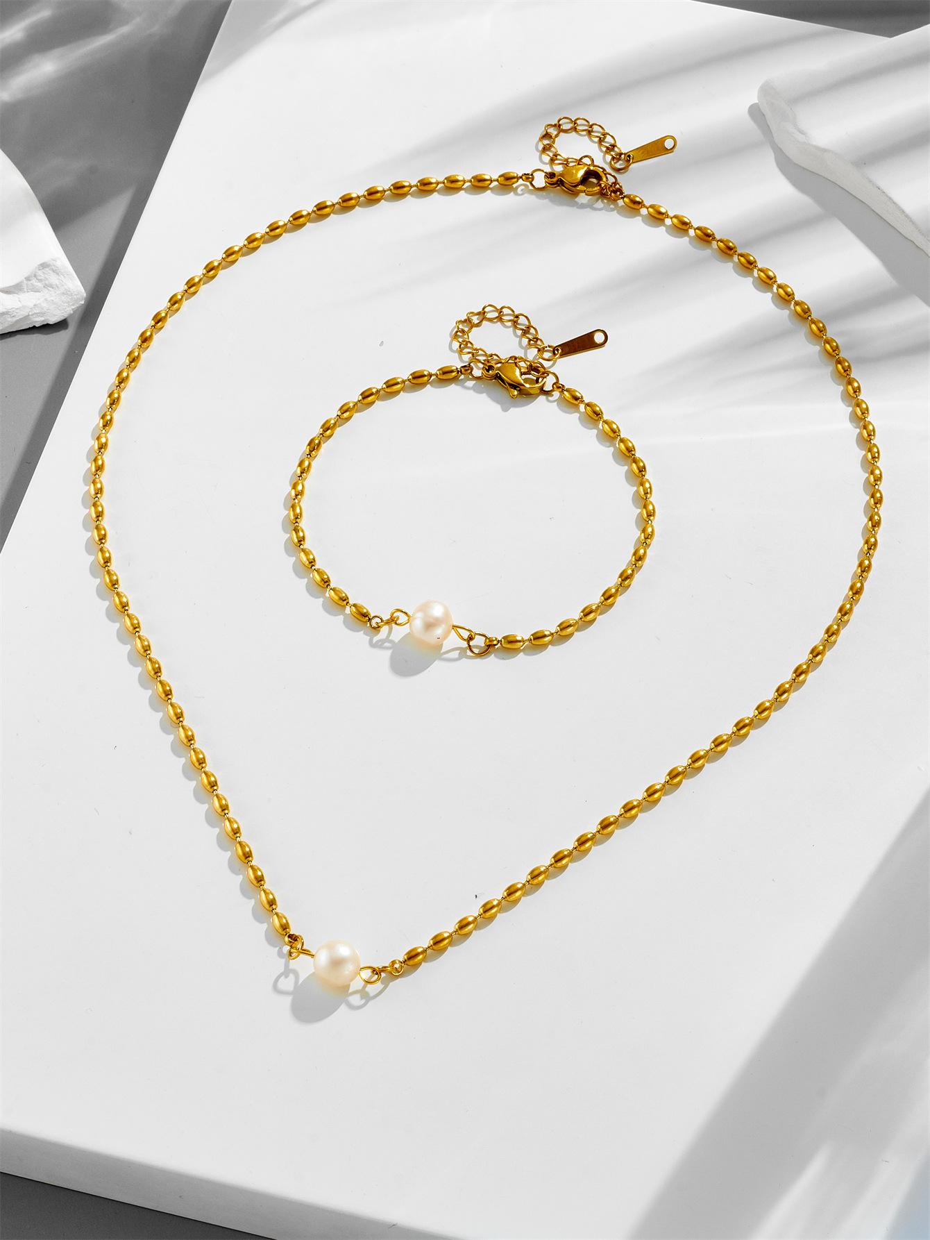 X687 pearl necklace gold, S568 pearl bracelet gold