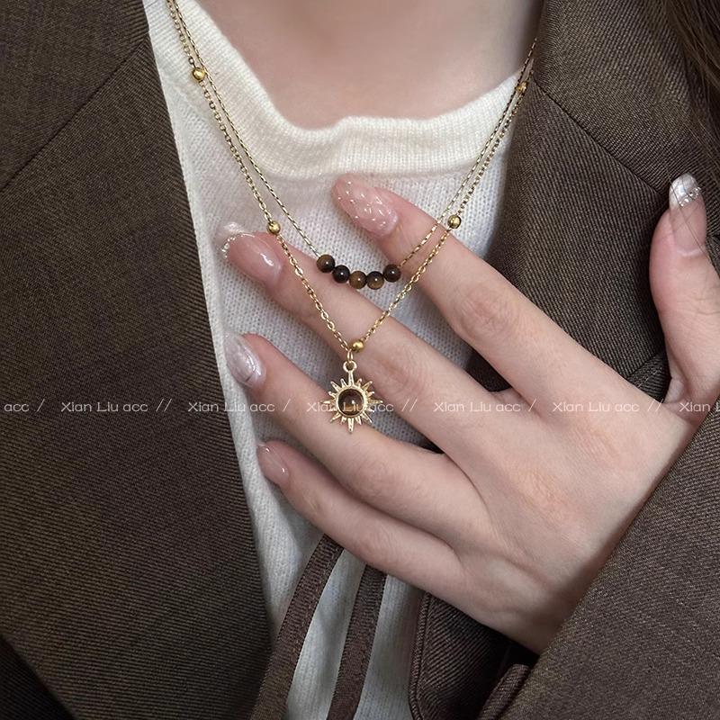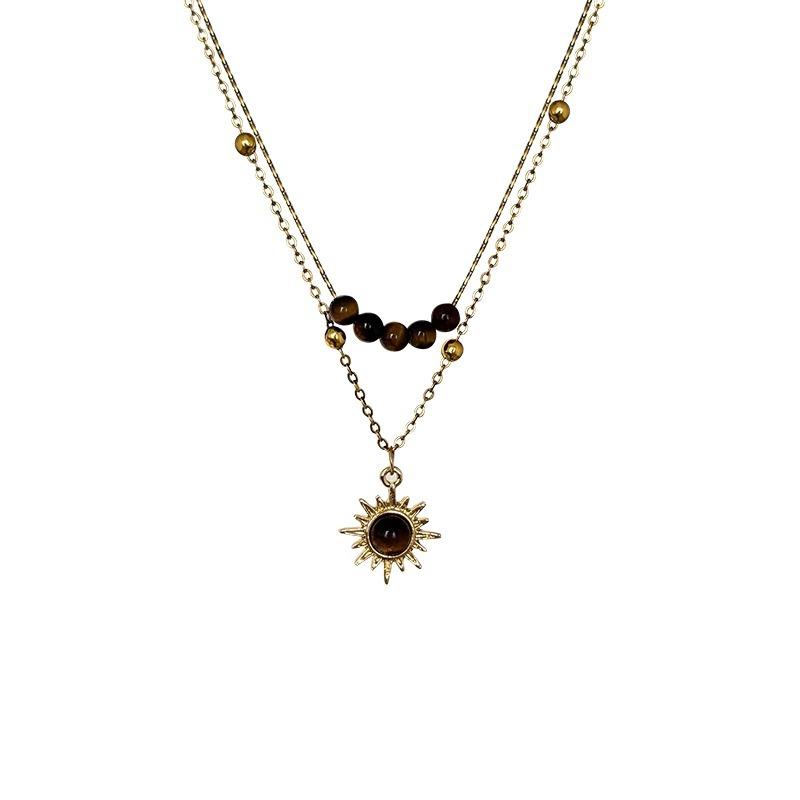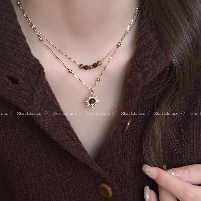Collar vintage de girasol dorado con ojo de tigre para mujer, diseño de nicho, cadena de lana plegable, accesorios de cadena para clavícula de otoño e invierno.