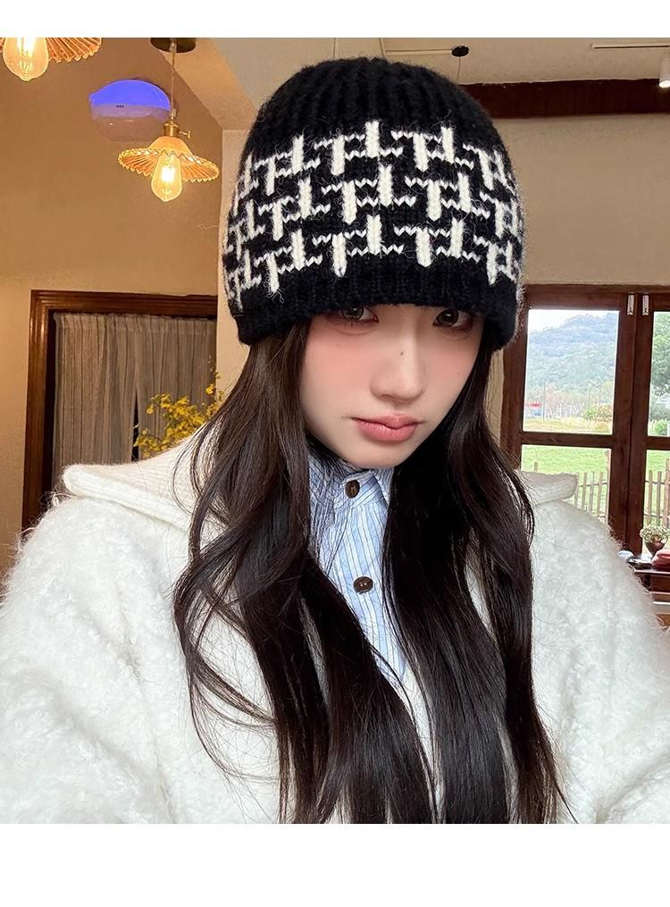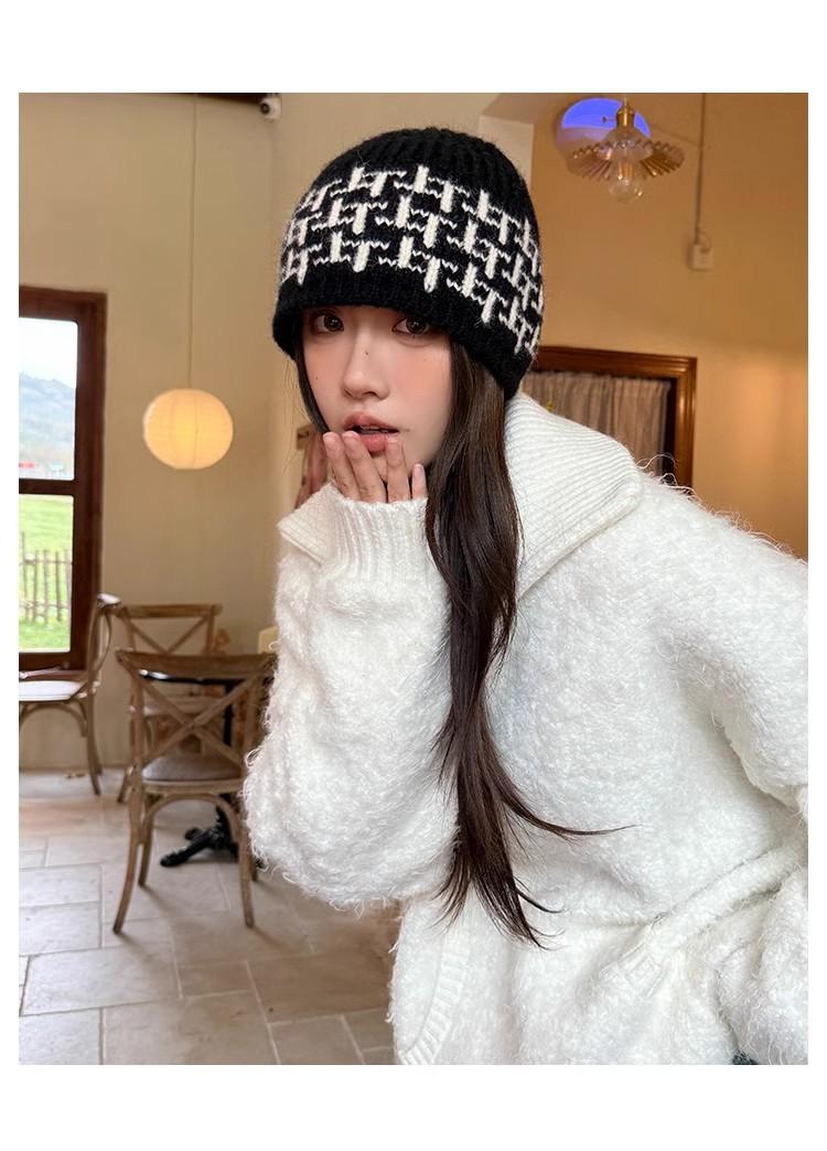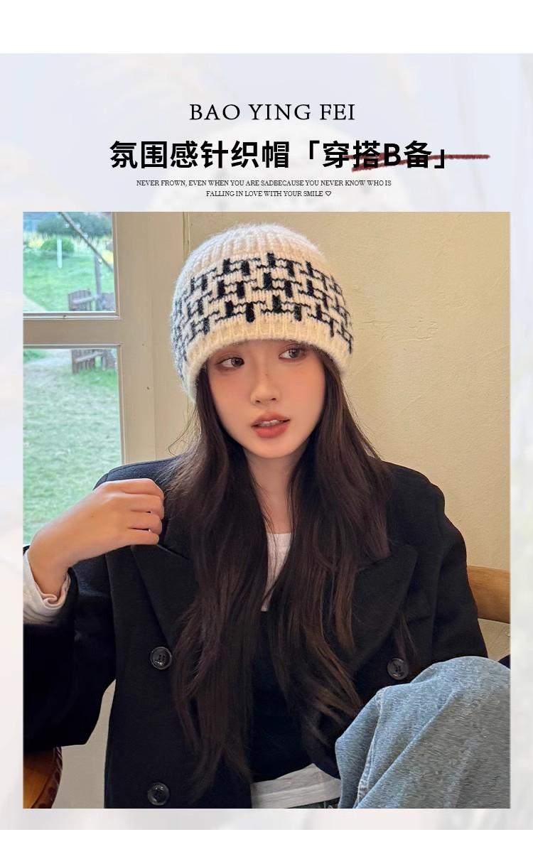 Gorro de lana jacquard vintage para niños, diseño de nicho para otoño e invierno, cálido y resistente al frío, gorro Baotou de punto pequeño que deja ver la cara.