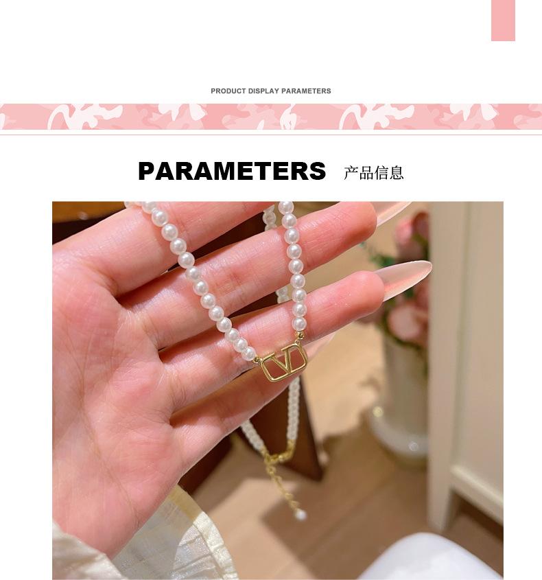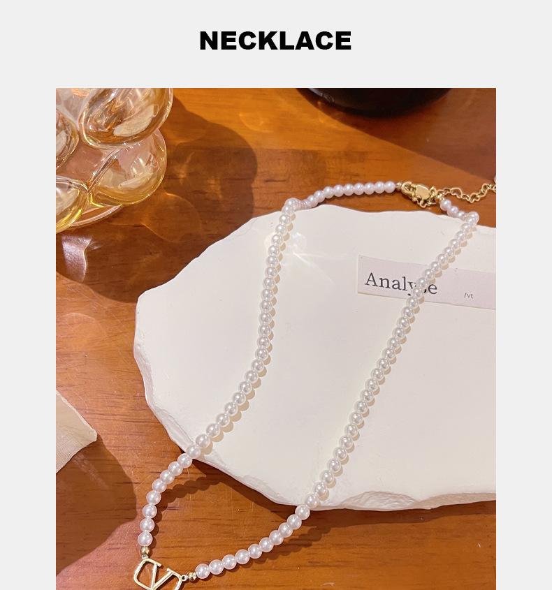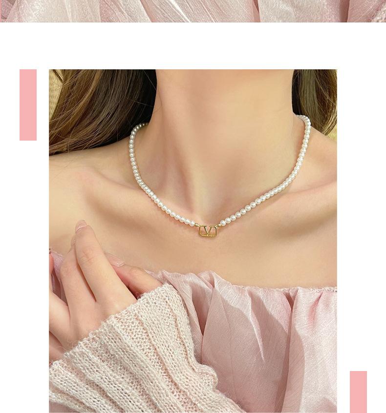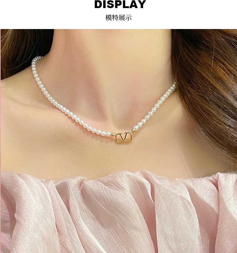 Collar de perlas, rima emocional de las cuatro estaciones, letra simple V, cadena de clavícula de nicho de lujo ligero, collar de cielo con sensación avanzada, joyería