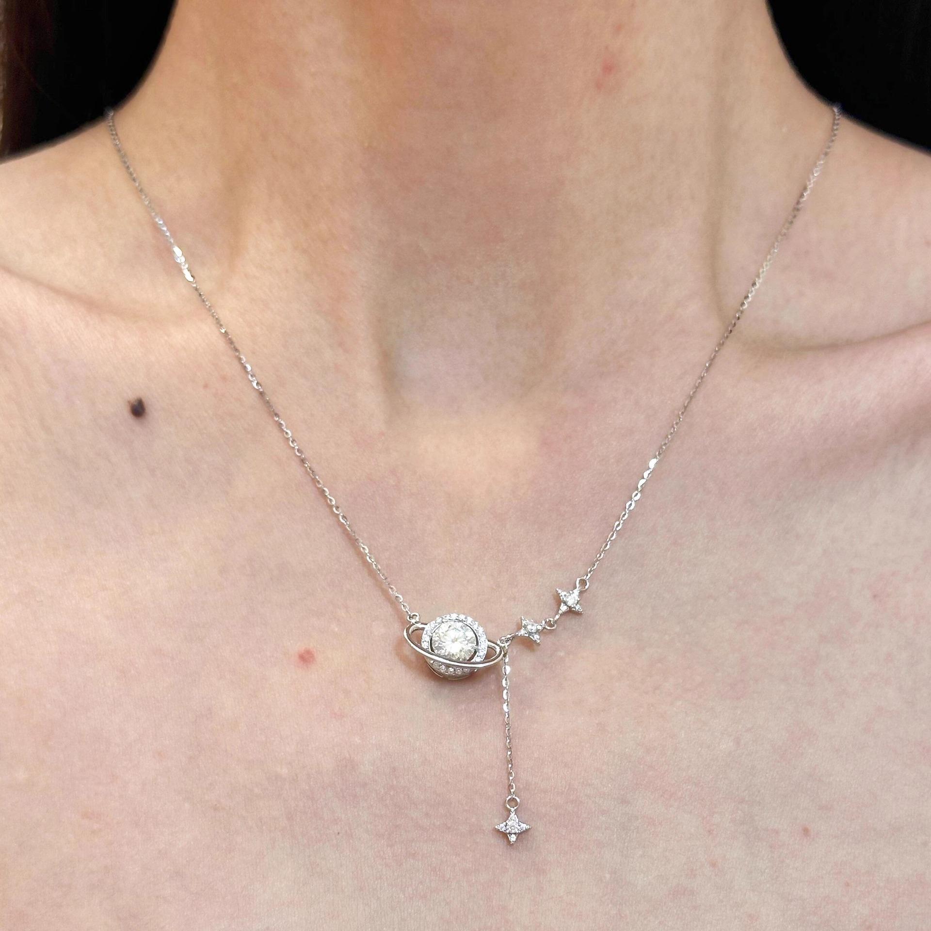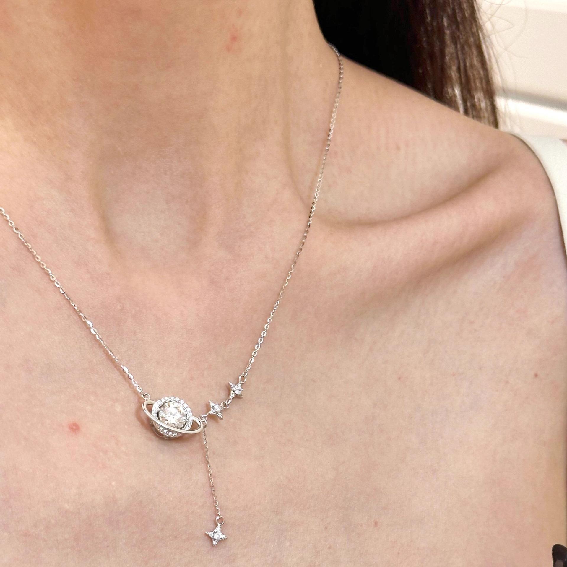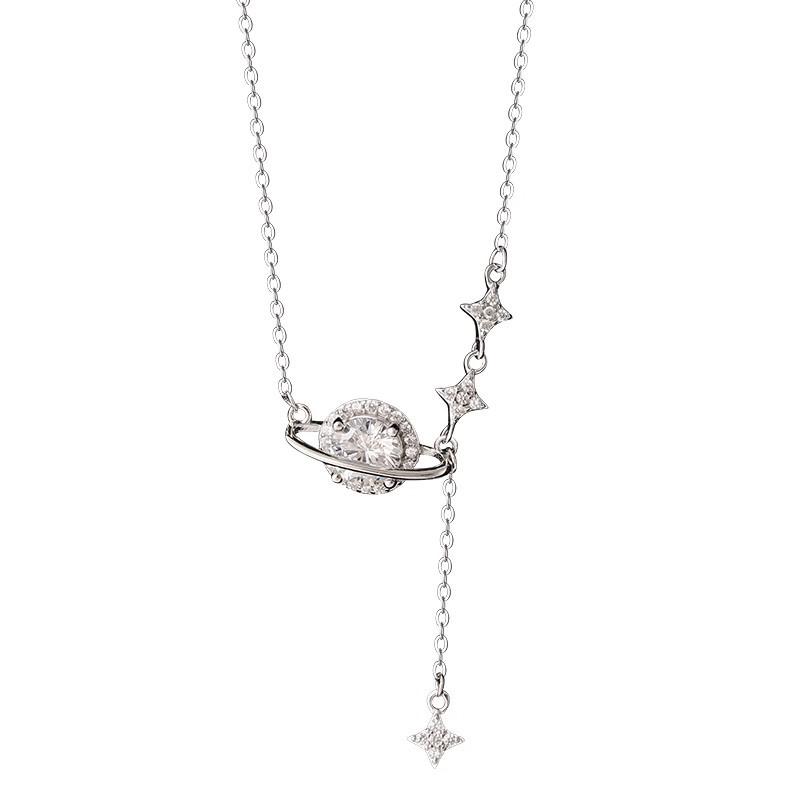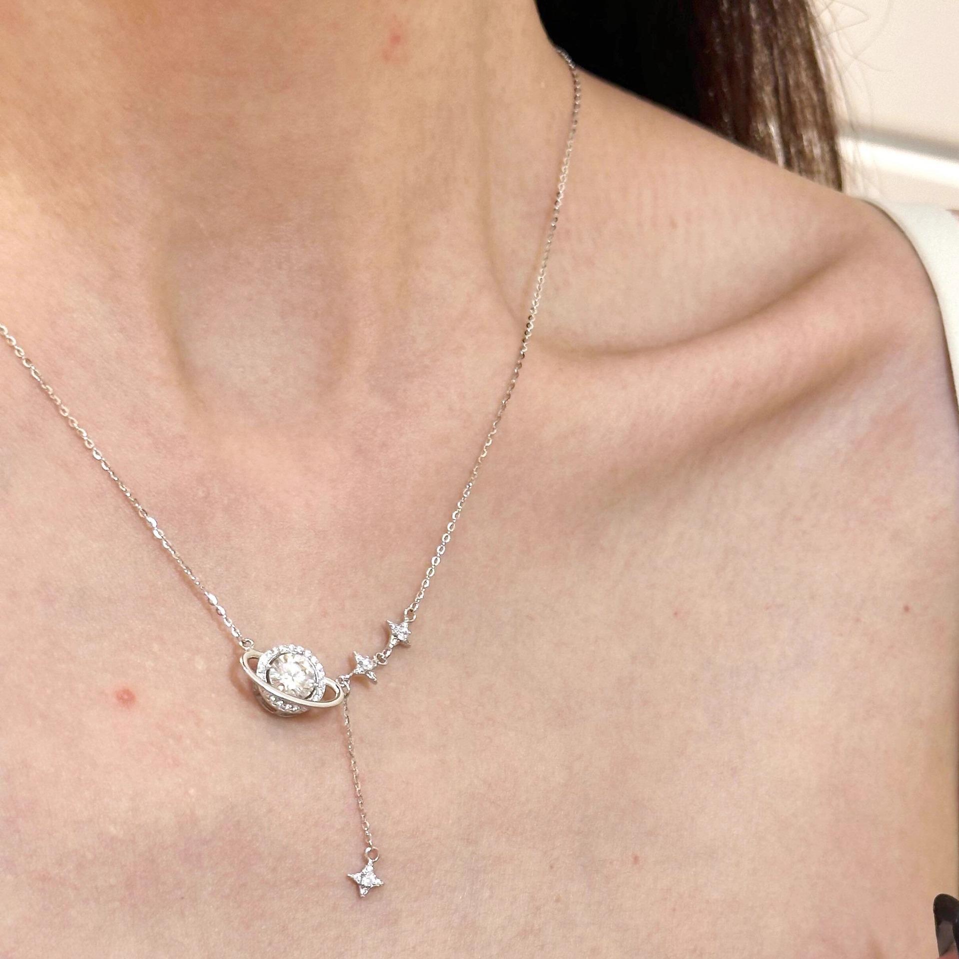 Collar de Borla Universo Galaxia Plateado para Mujer 2025 Nuevo Lujo Ligero de Alta Gama Sencillo Acero de Titanio Inoxidable Cadena Clavicular