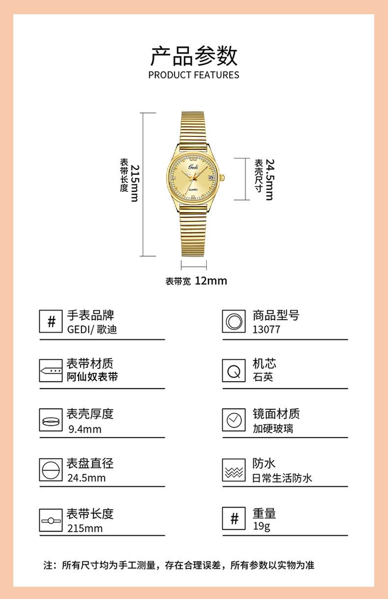 Reloj de cuarzo Goldie Niche de alta gama para mujer, con calendario, pequeño, exquisito, ligero, de lujo, resistente al agua y de alta calidad.