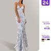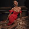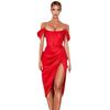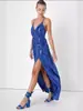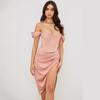 Amazon Europeo y Americano Transfronterizo Nuevo Color Sólido Fiesta Color Sólido Sexy Abertura Vestido Delgado con Tirantes Ropa de Mujer
