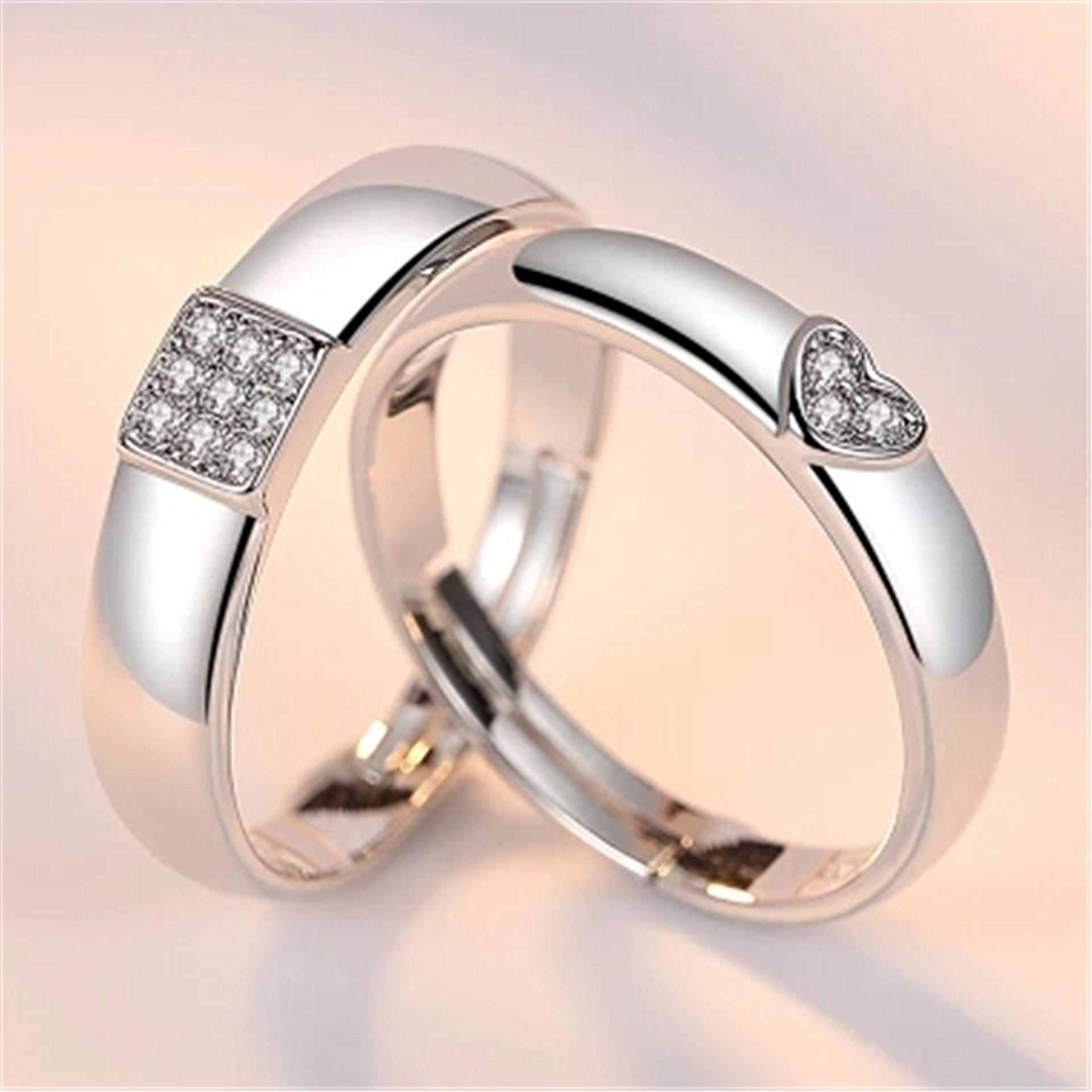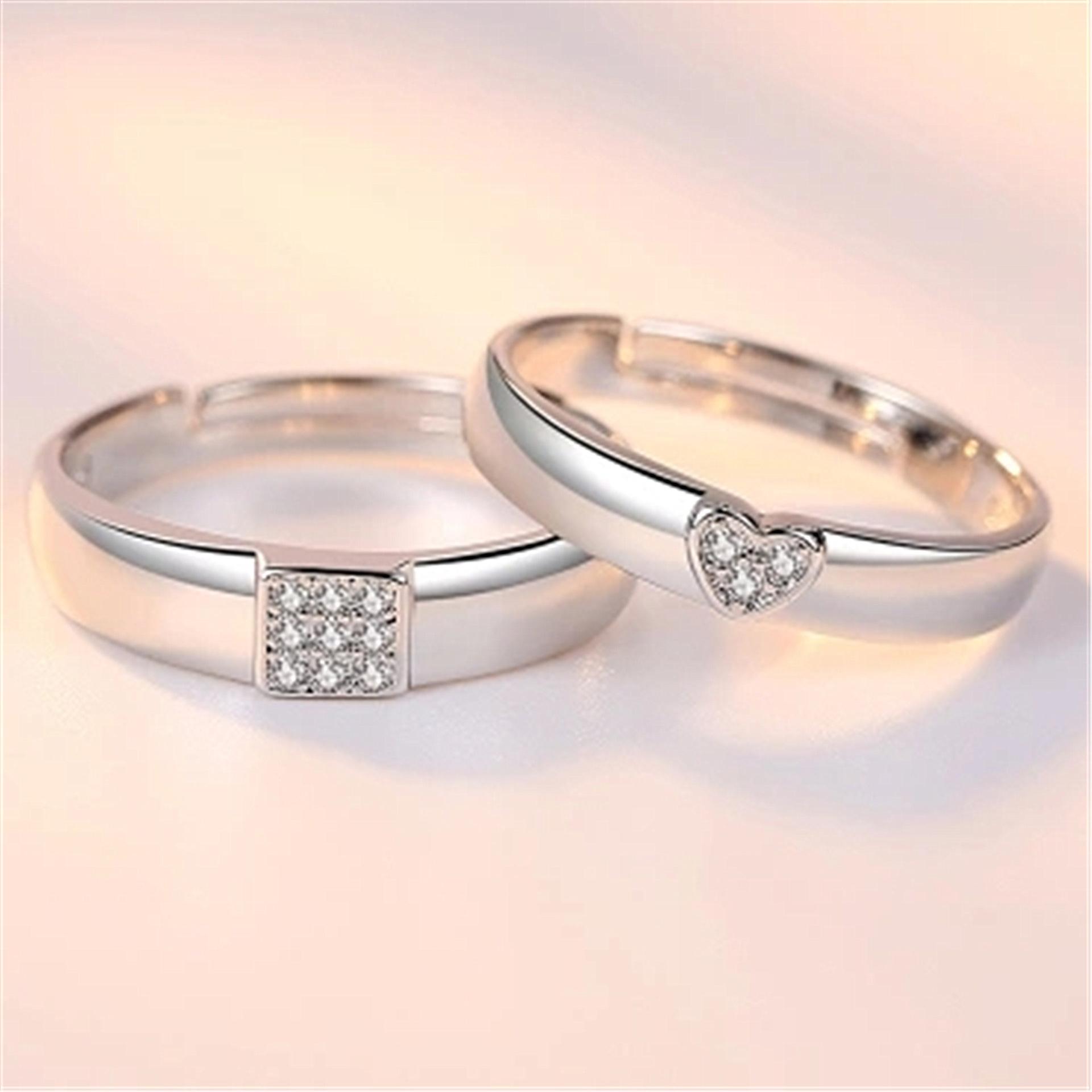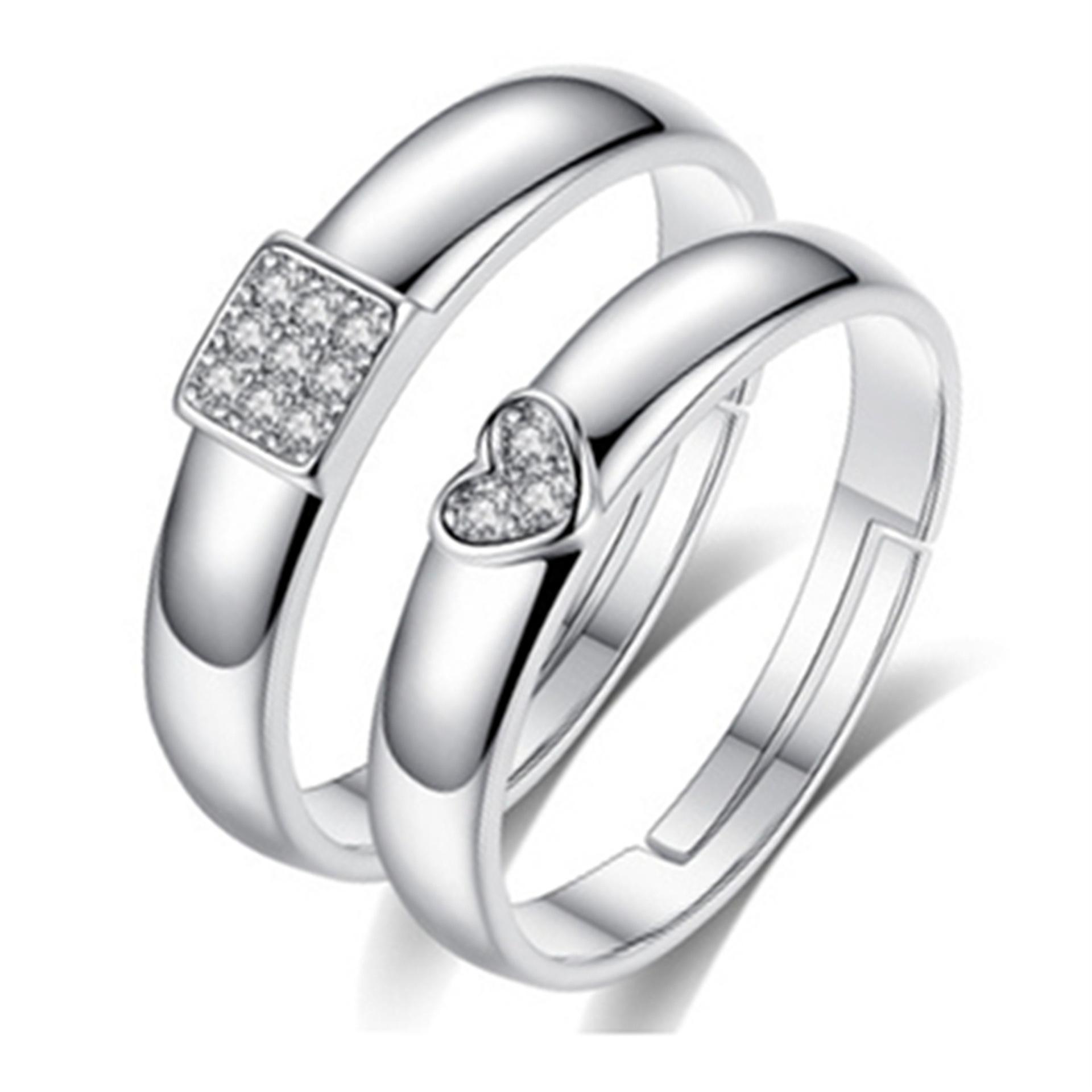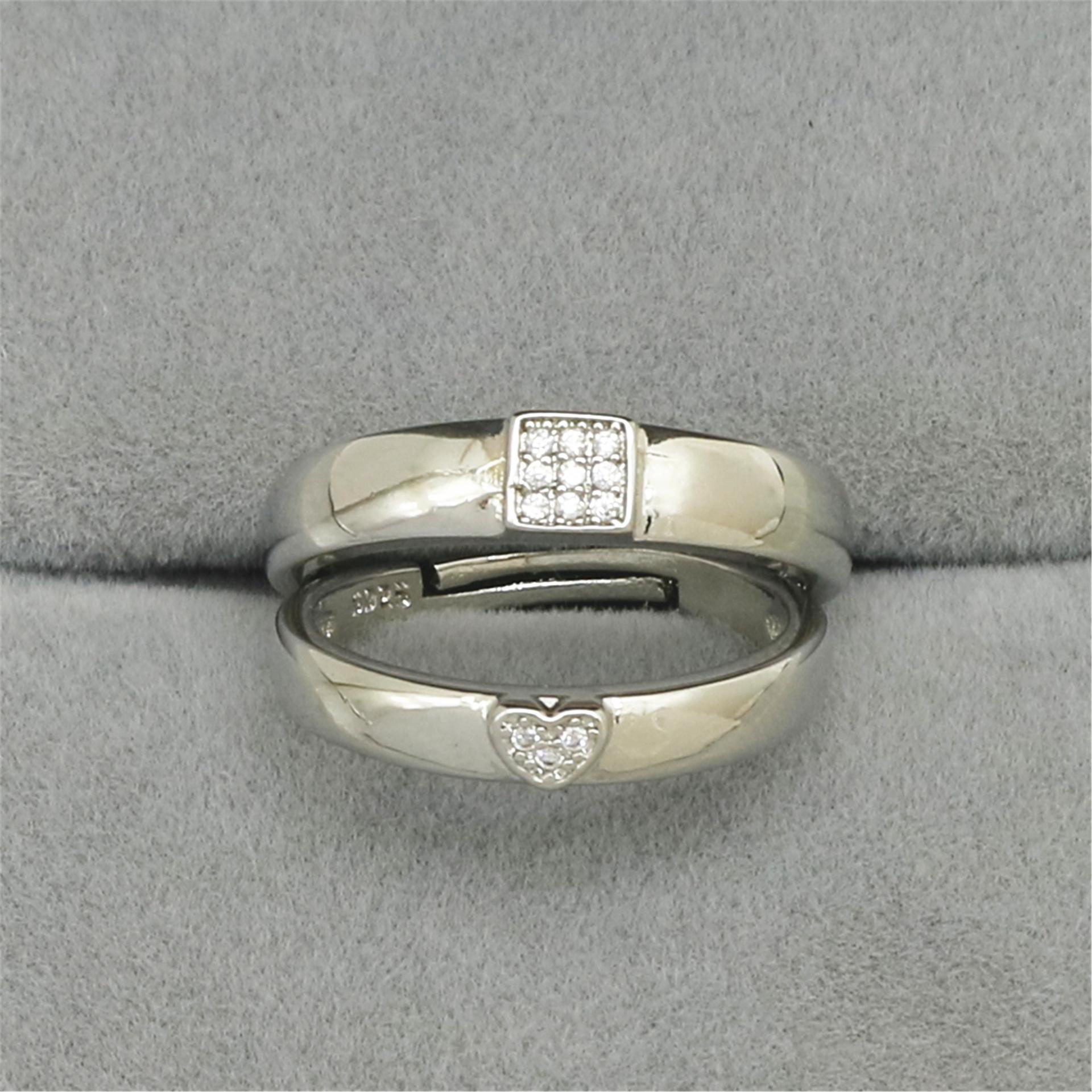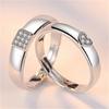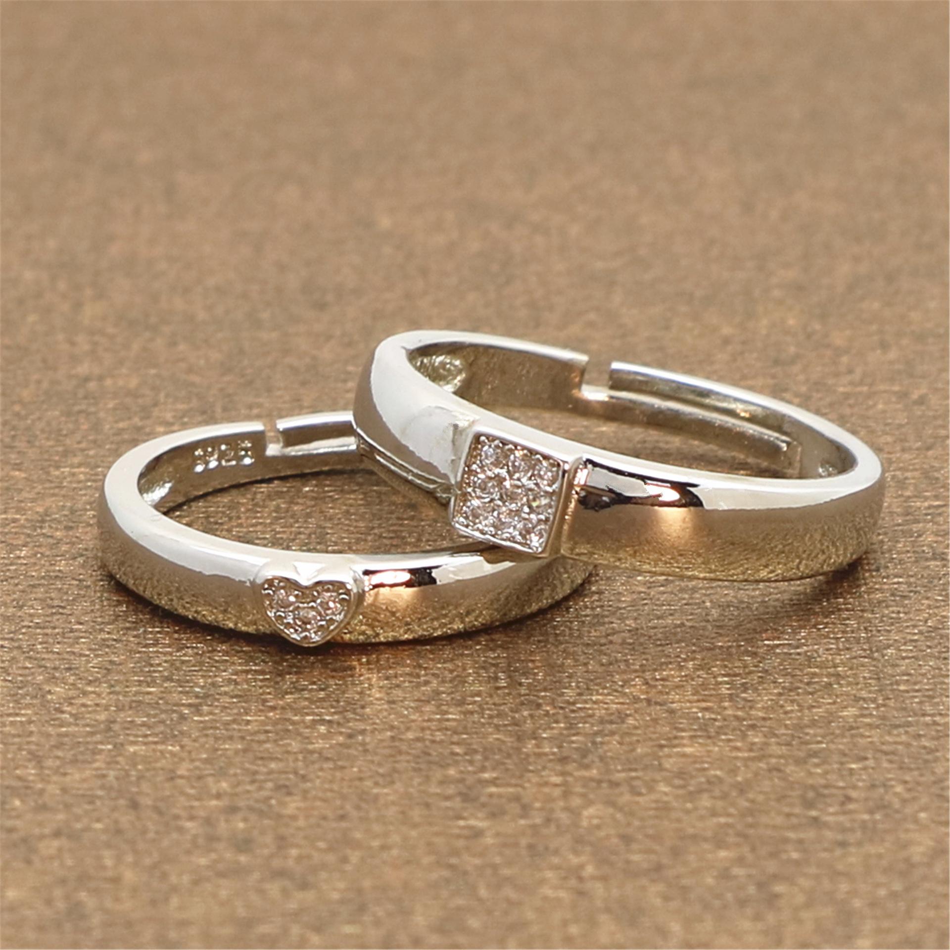 Anillo Anillo de pareja con forma de corazón plateado coreano Anillo de pareja cuadrado creativo Venta al por mayor de puntos abiertos