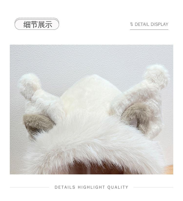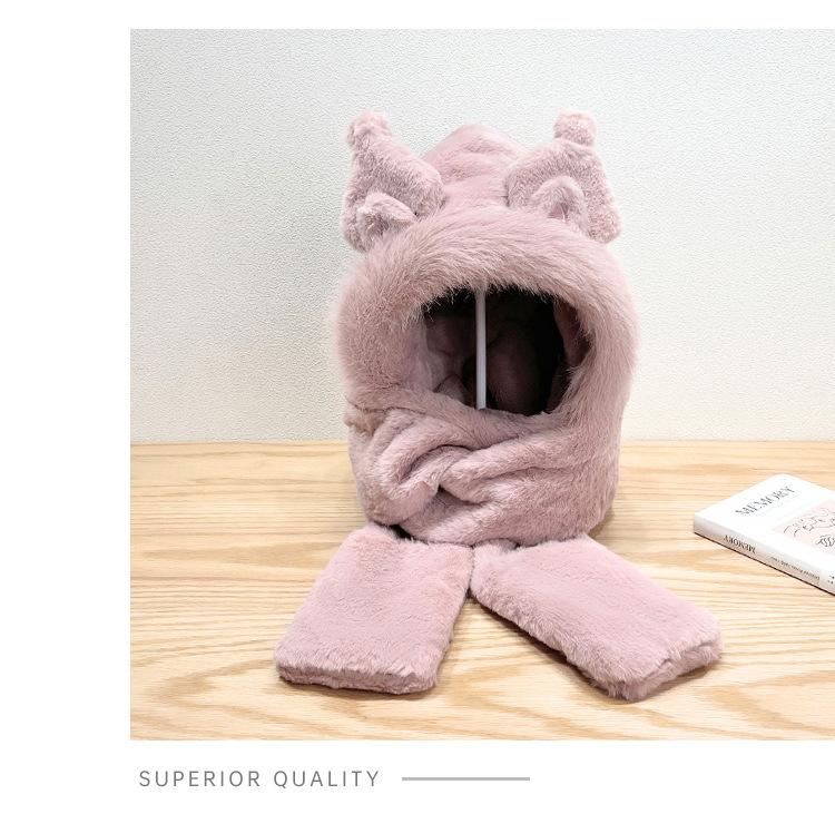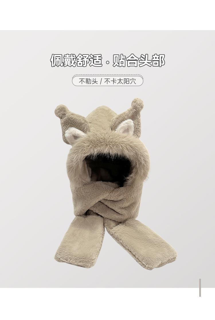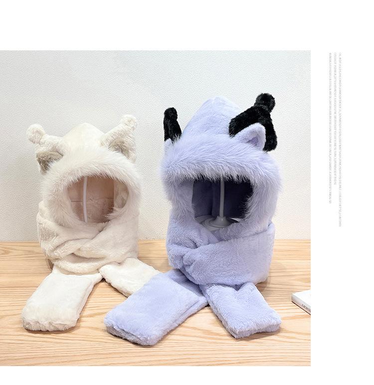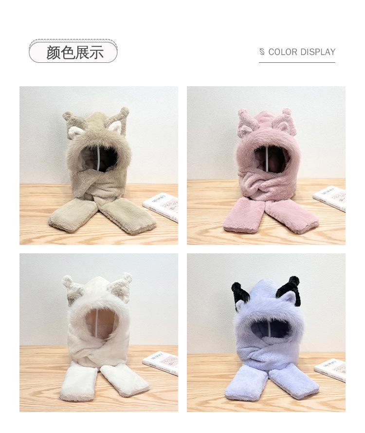 Gorro de invierno con orejas de zorro para mujer, bufanda, guantes y cuello grueso y cálido de una pieza, gorro Lei Feng.