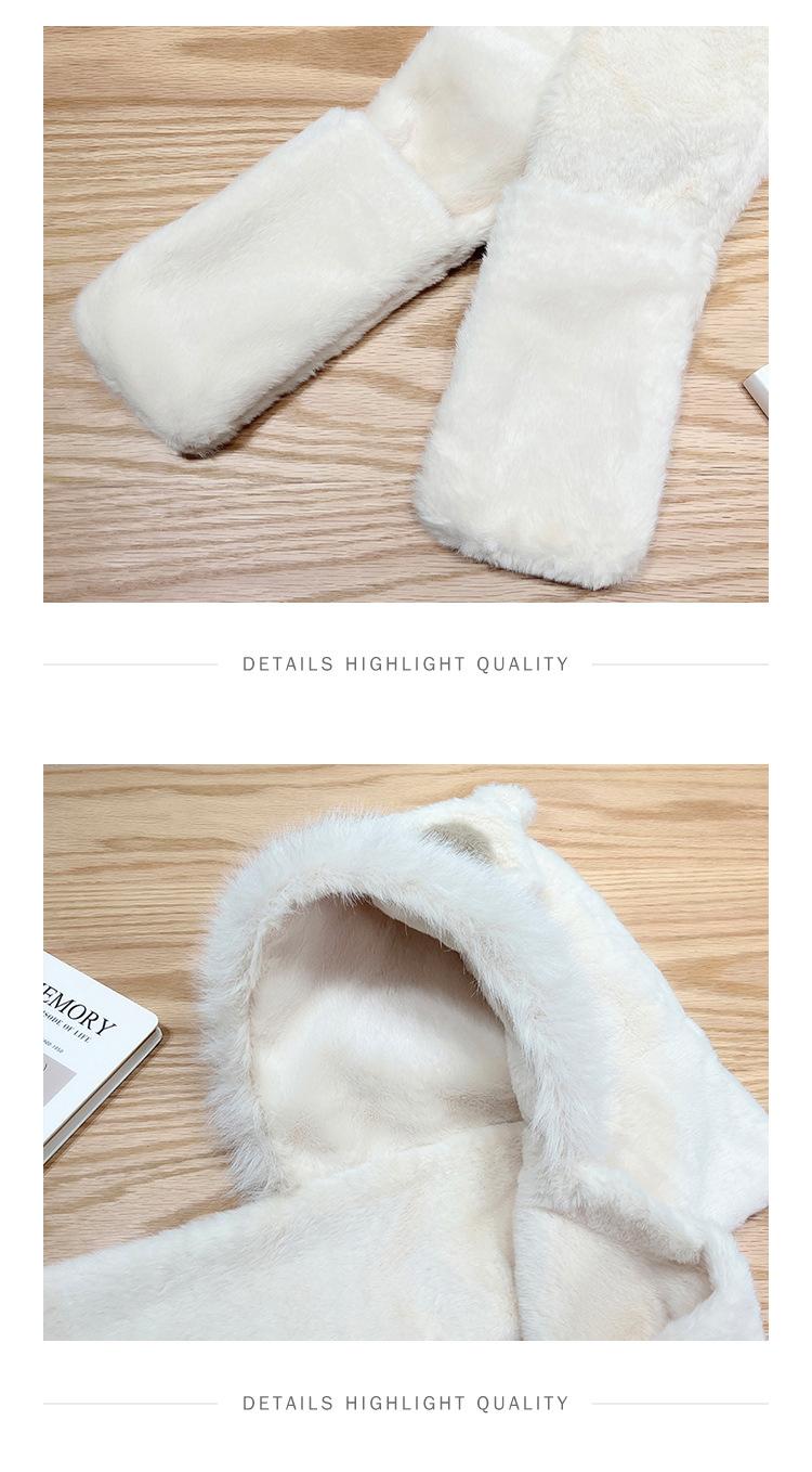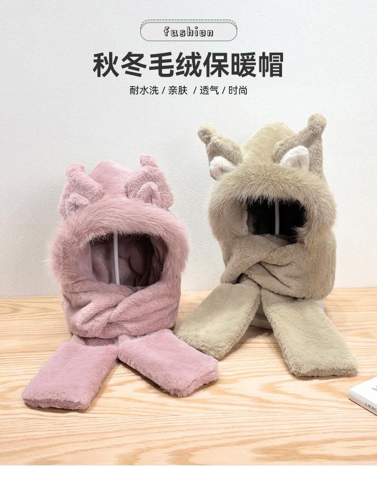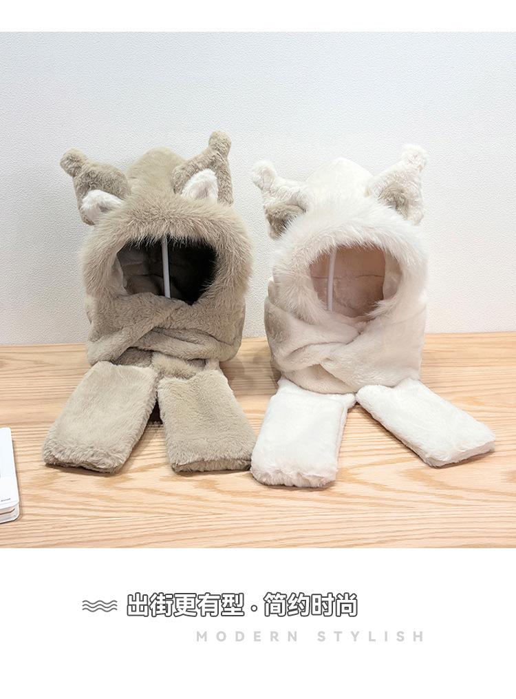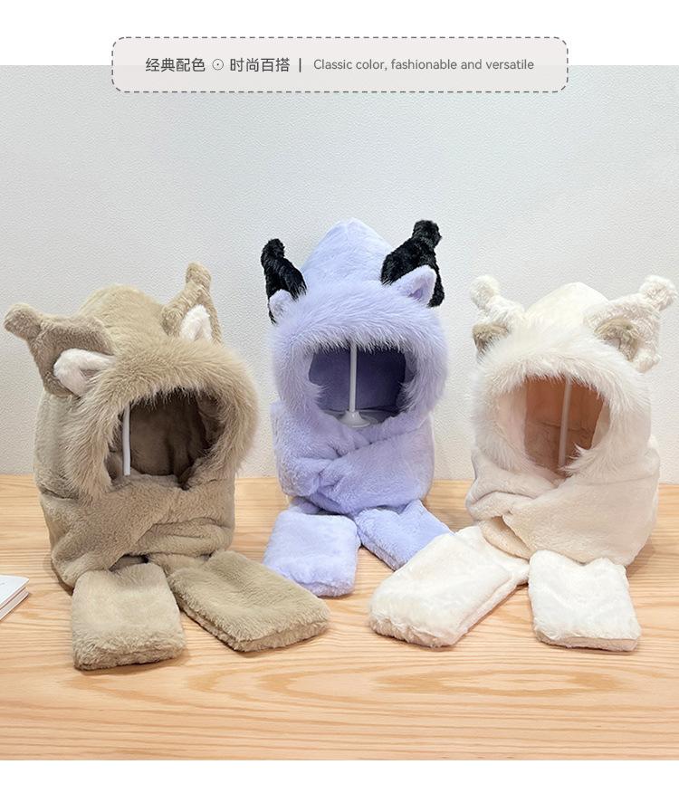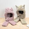 Gorro de invierno con orejas de zorro para mujer, bufanda, guantes y cuello grueso y cálido de una pieza, gorro Lei Feng.