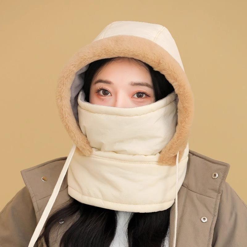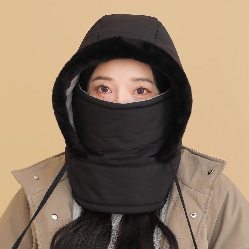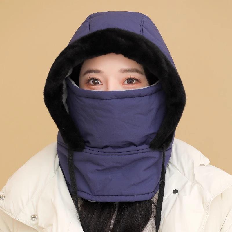 Gorro de invierno cálido Lei Feng con forro polar, grueso, resistente al frío, con máscara integrada para el cuello, para exteriores, resistente al viento, para montar a caballo, gorro para la cabeza