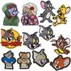 Pegatinas de tela bordadas al por mayor, accesorios de ropa para niños, parches adhesivos para chaqueta de plumas con diseño de ratón y gato, apliques adhesivos, animación de dibujos animados en stock