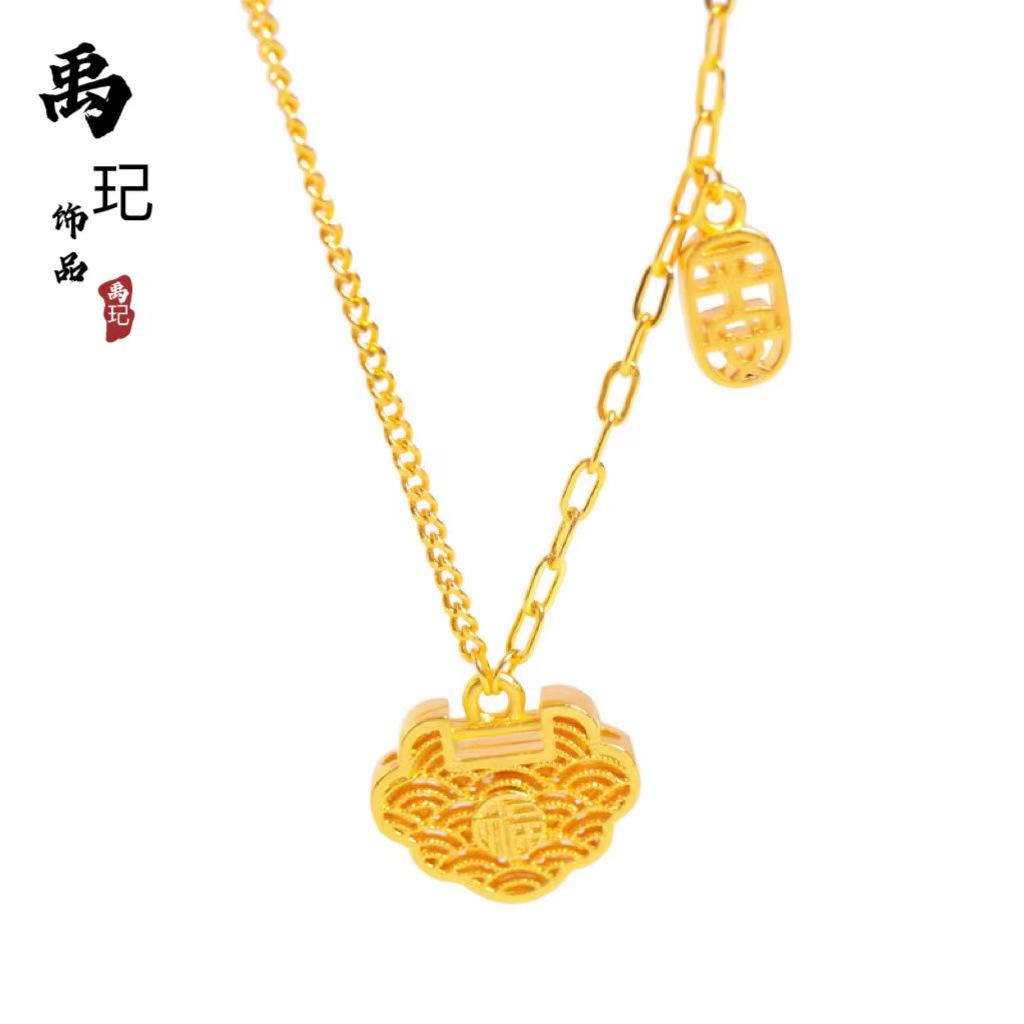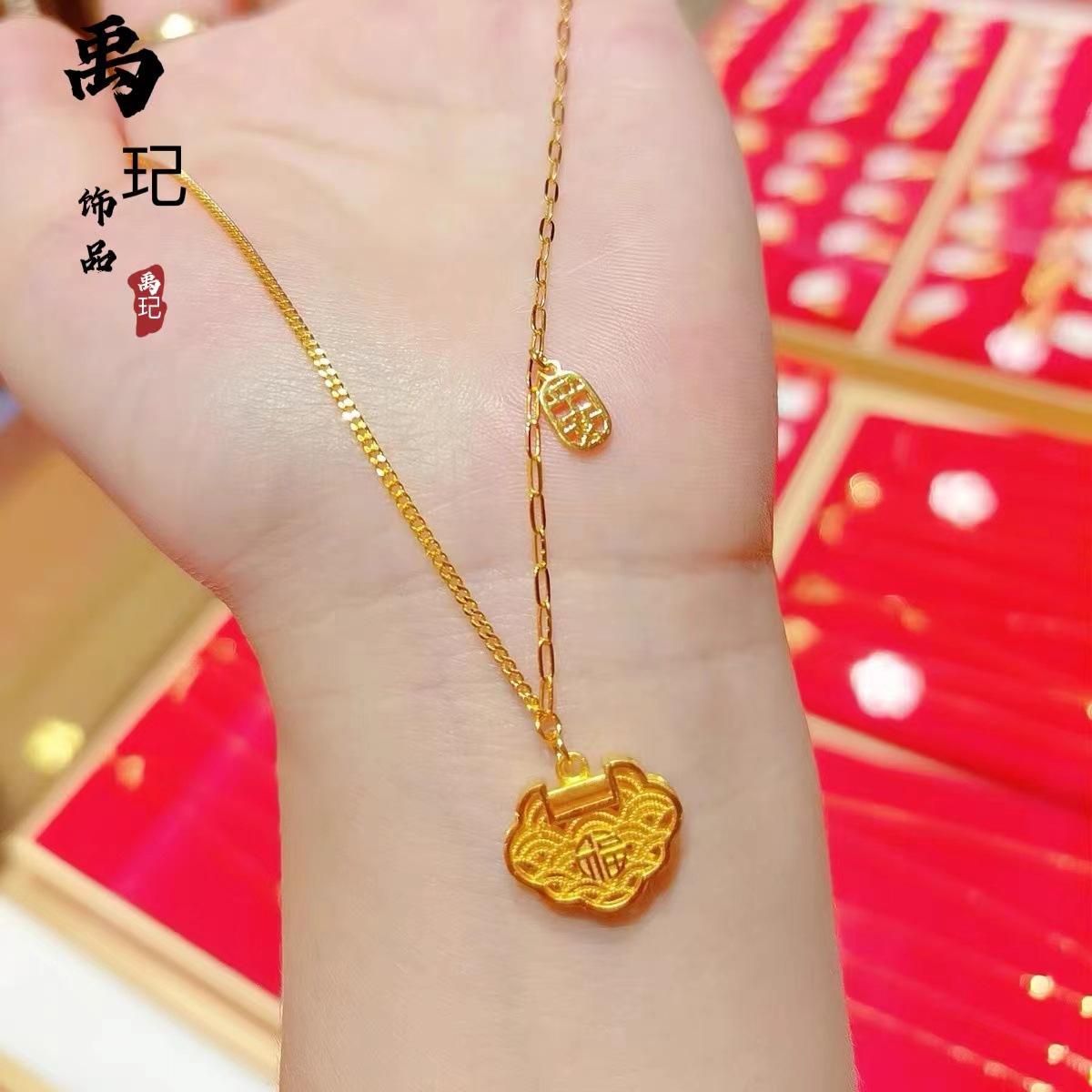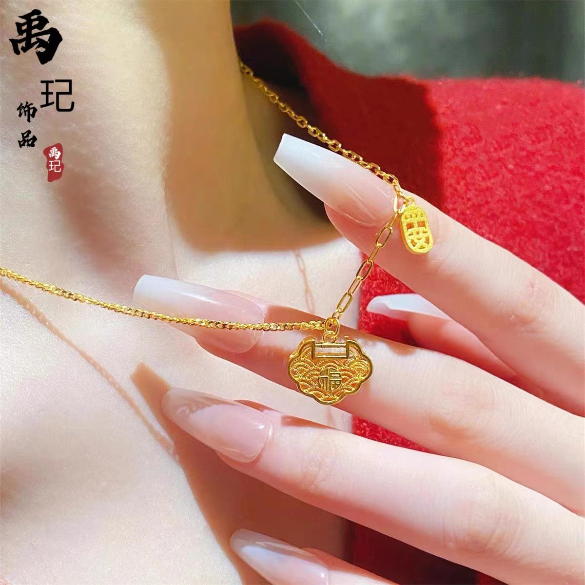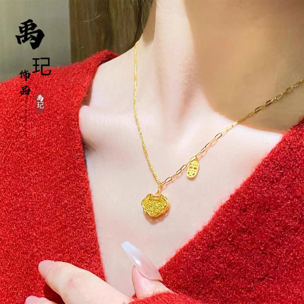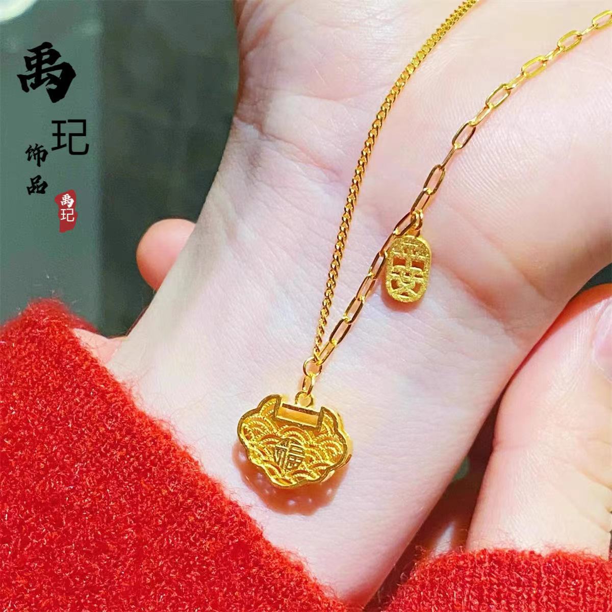 Nuevo collar con candado de paz de seda dorada antigua que no se decolora de larga duración, nuevo colgante Ruyi para mujer, cadena de clavícula al por mayor