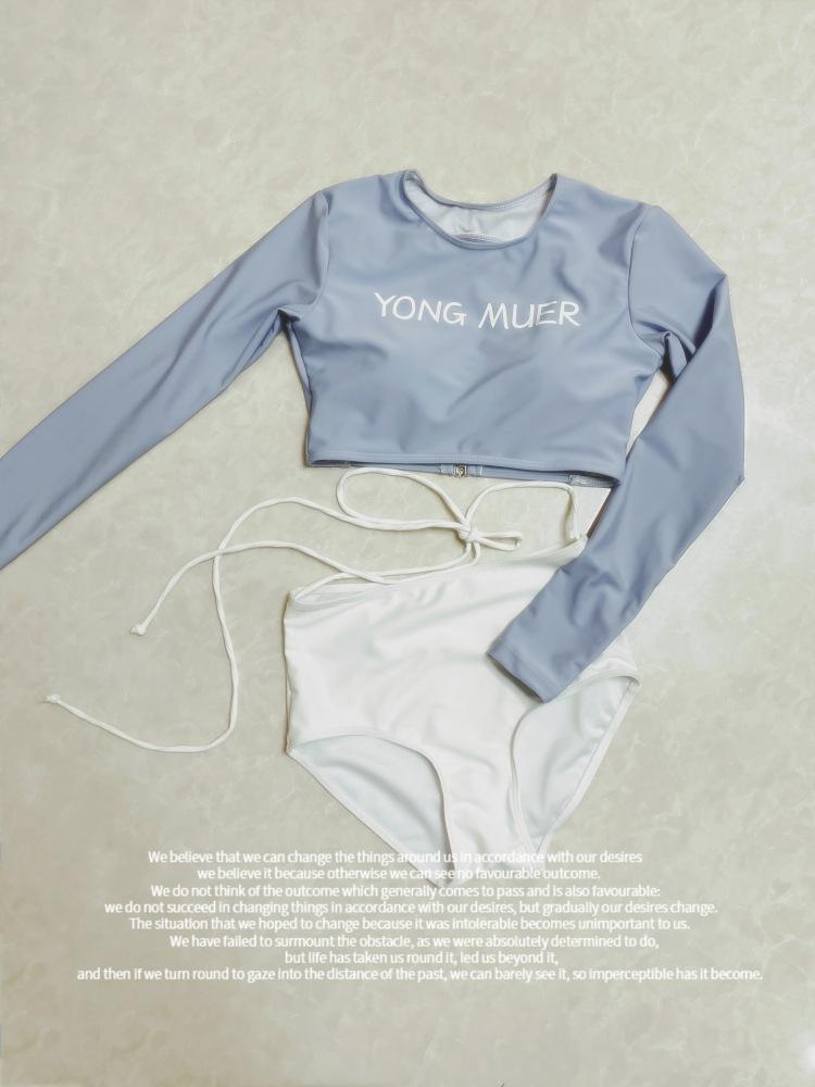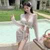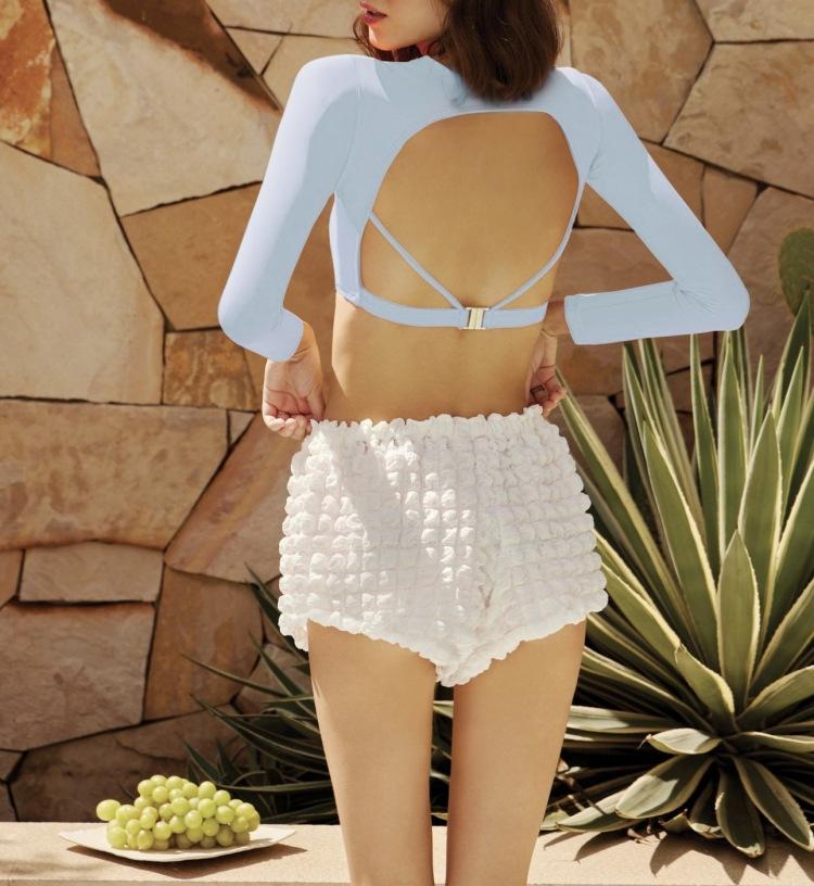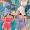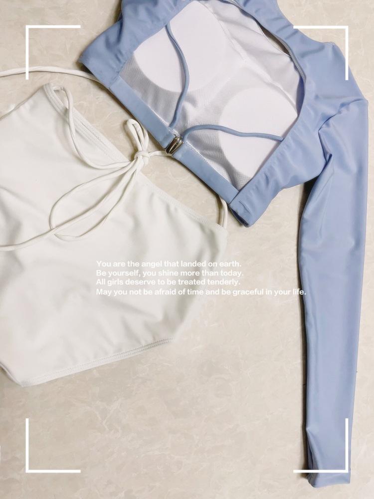 Nuevo Bikini Dulce de Color Sólido para Mujer Estilo Coreano Adelgazante Dividido de Tres Piezas Manga Larga Pecho Pequeño Dividido Traje de Baño Multicolor