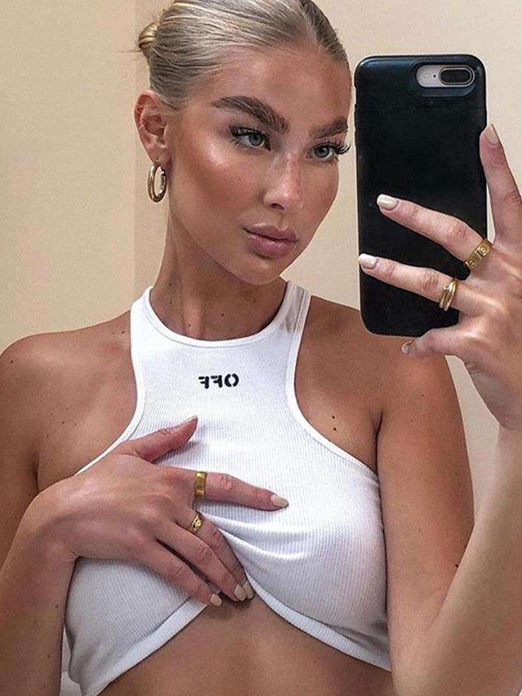 Top de verano con agujeros para mujer, con letras sexys bordadas en el ombligo, chaleco corto ajustado, venta al por mayor transfronteriza europea y americana