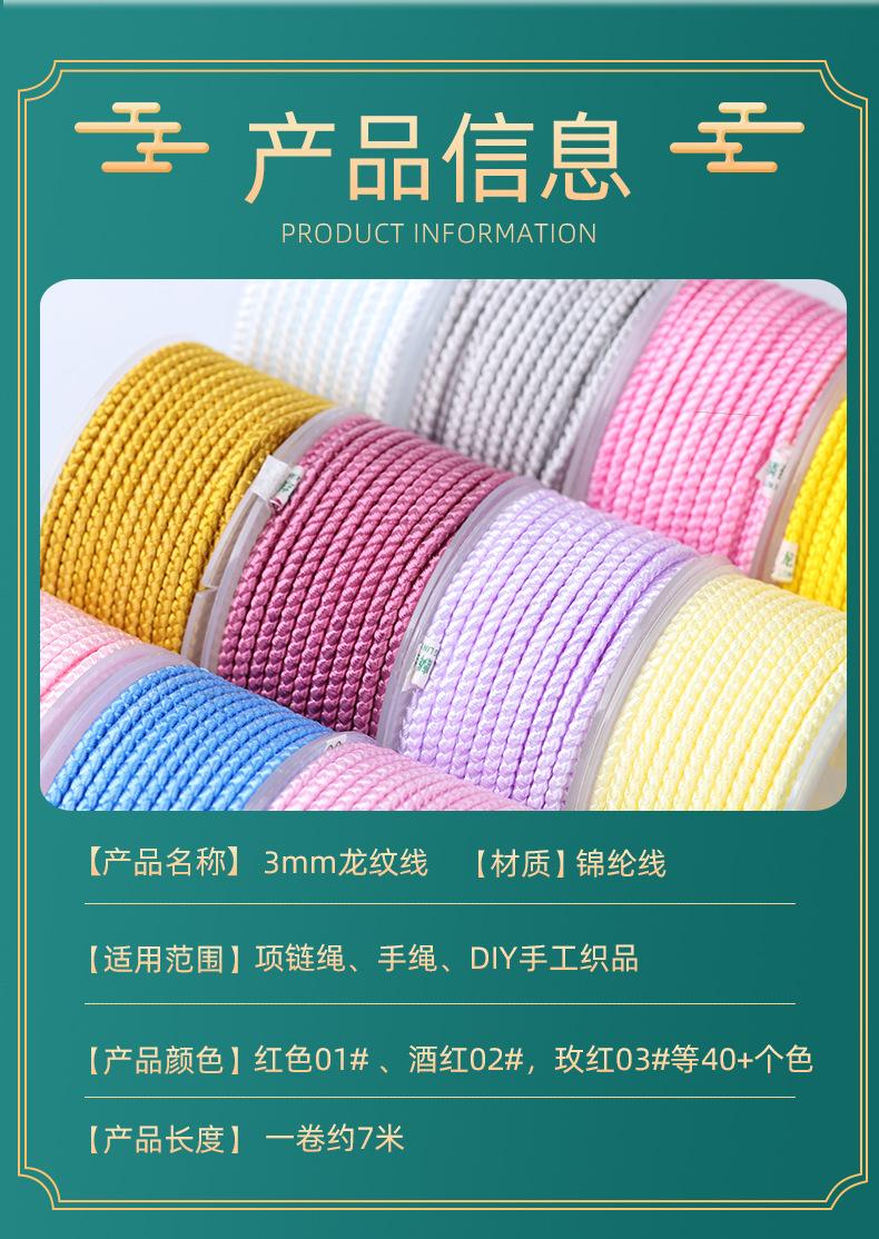 Pulsera de cuentas de dragón de 3 mm, resistente al desgaste, con texto, cuerda de jade, collar, cordón, material de asa, venta al por mayor