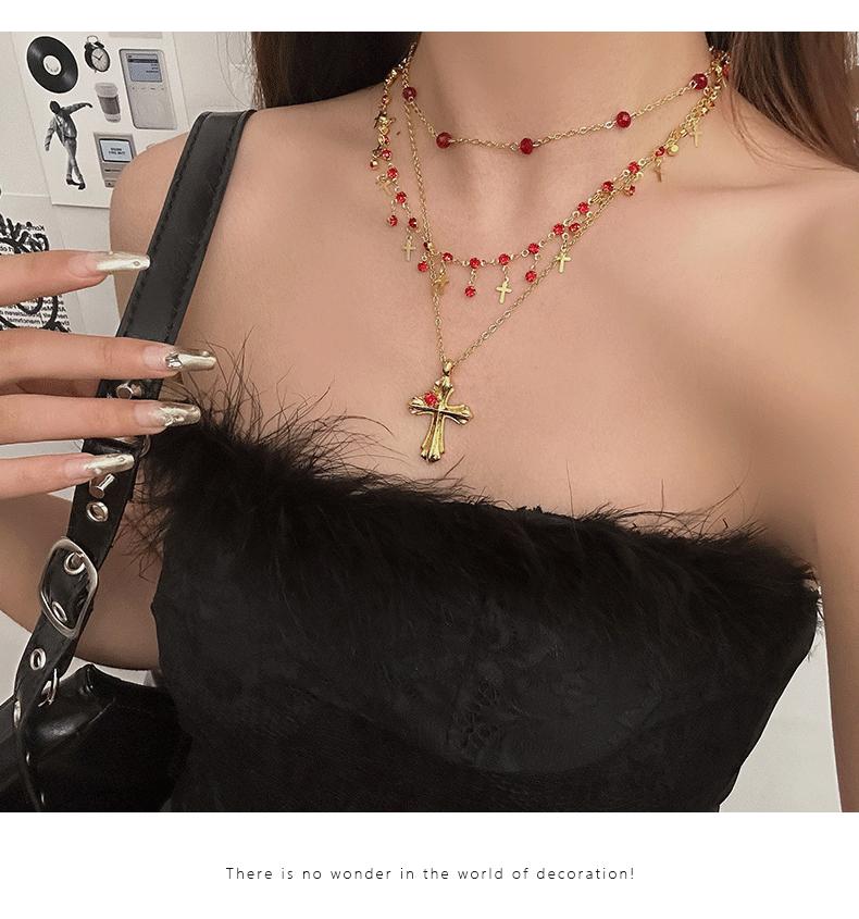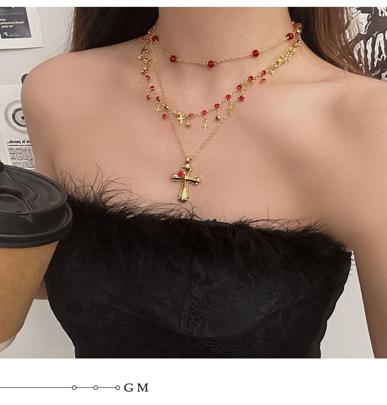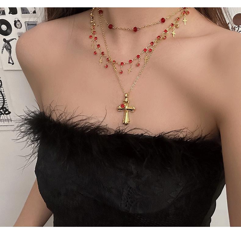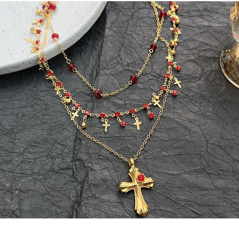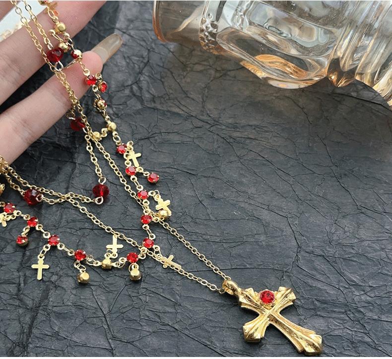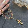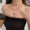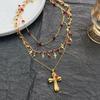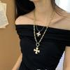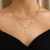 Collar de cruz dorada retro multicapa, accesorios para mujer, collar de lujo ligero de alta gama, cadena de clavícula, joyería