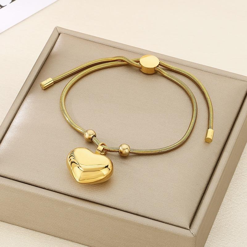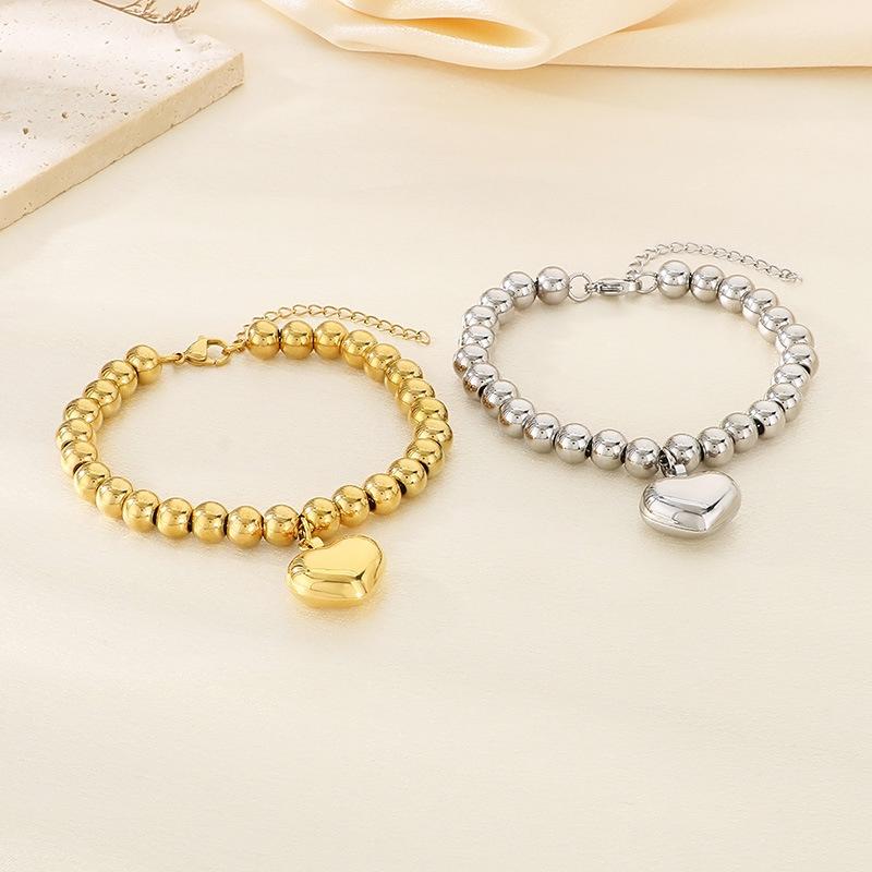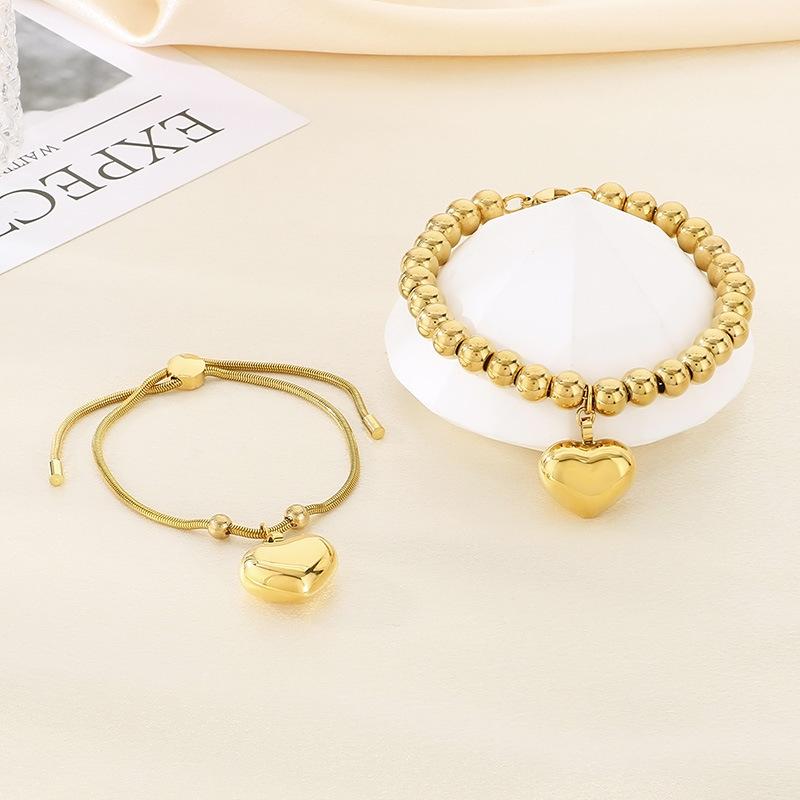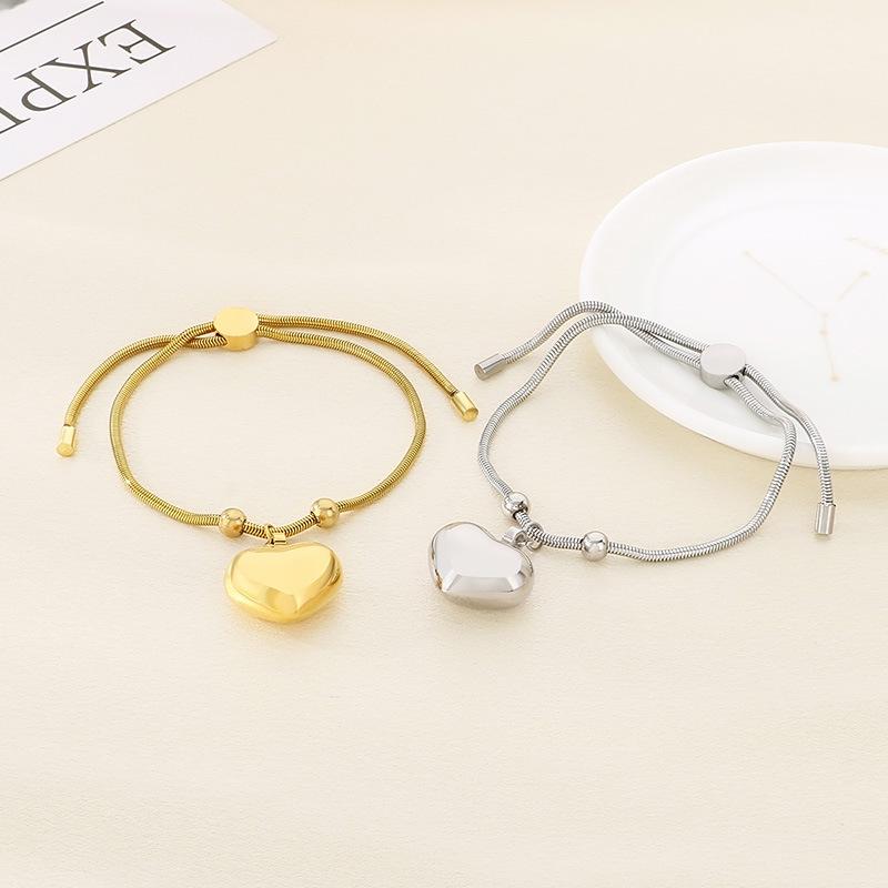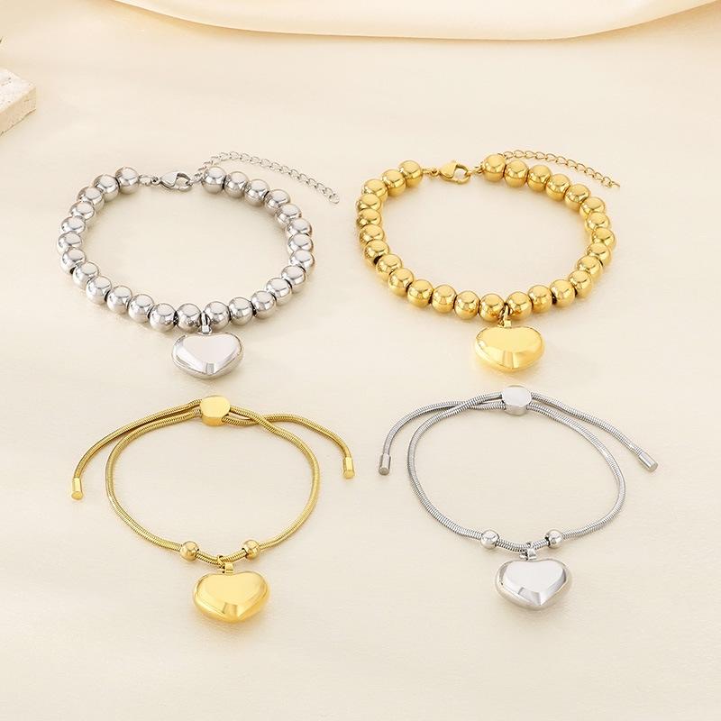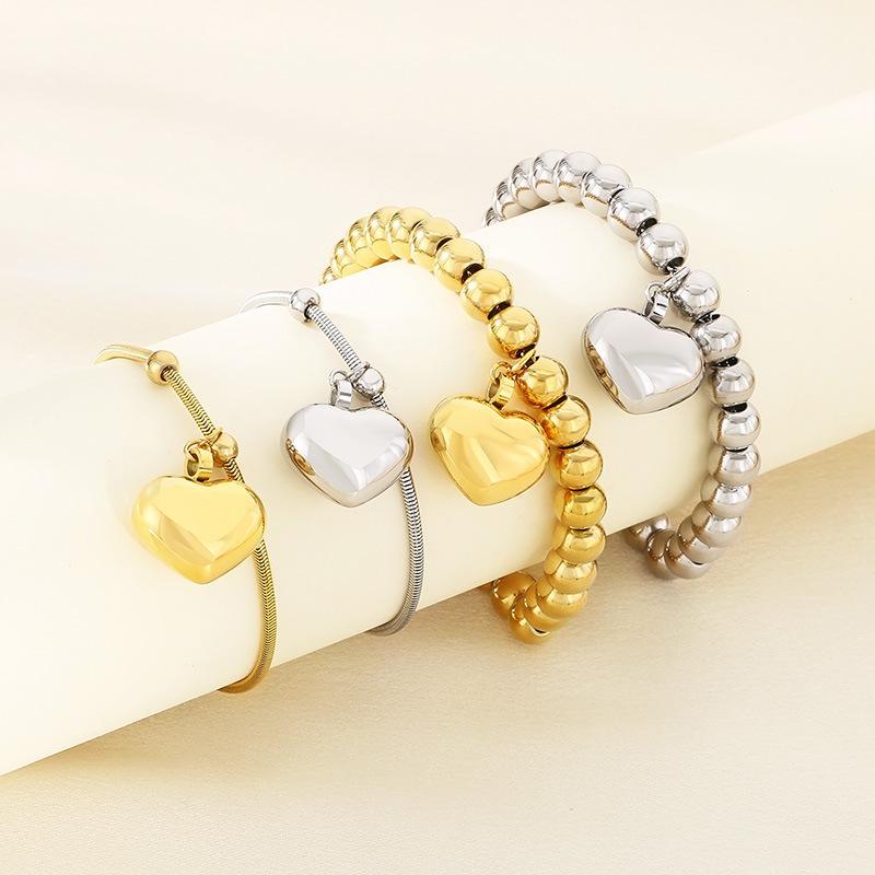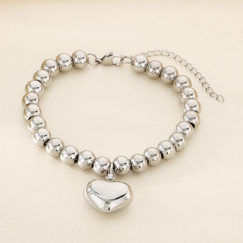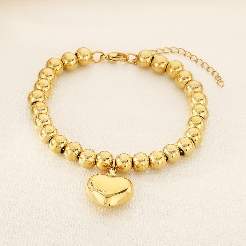 Temperamento Personalidad Simple Chapado en Oro de 18K Redondo con Cuentas Amor Hueco Pulsera de Acero de Titanio Sentido Avanzado Joyería Ajustable