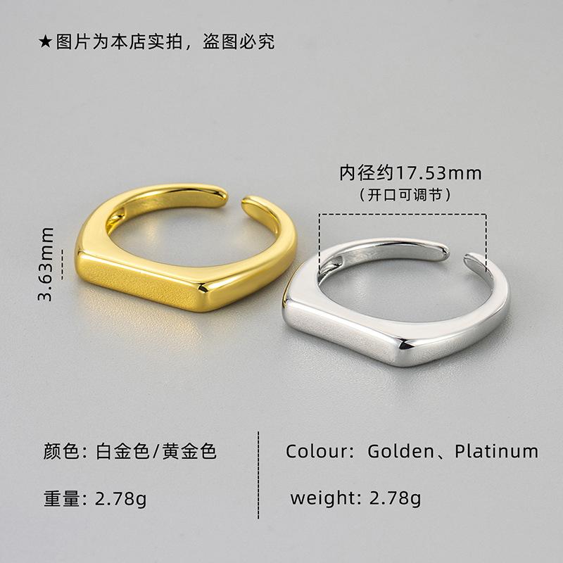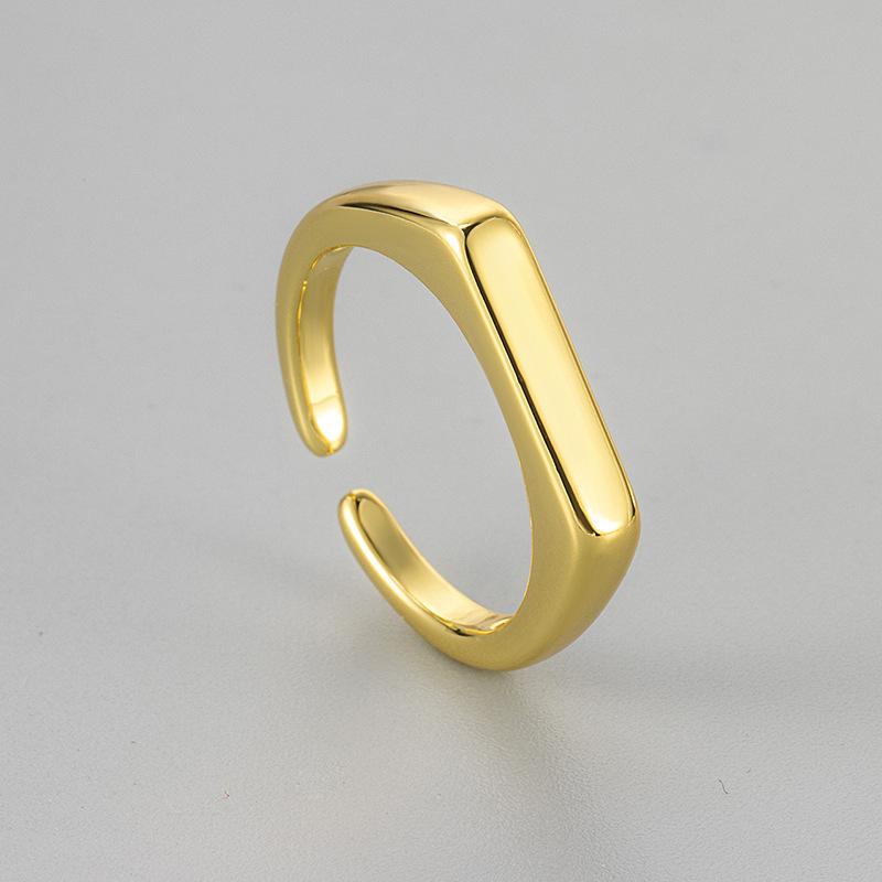 Nuevo diseño de nicho de anillo liso simple, de alta gama, ligero, de lujo, de moda para mujer, con ajuste de apertura de anillo liso geométrico