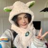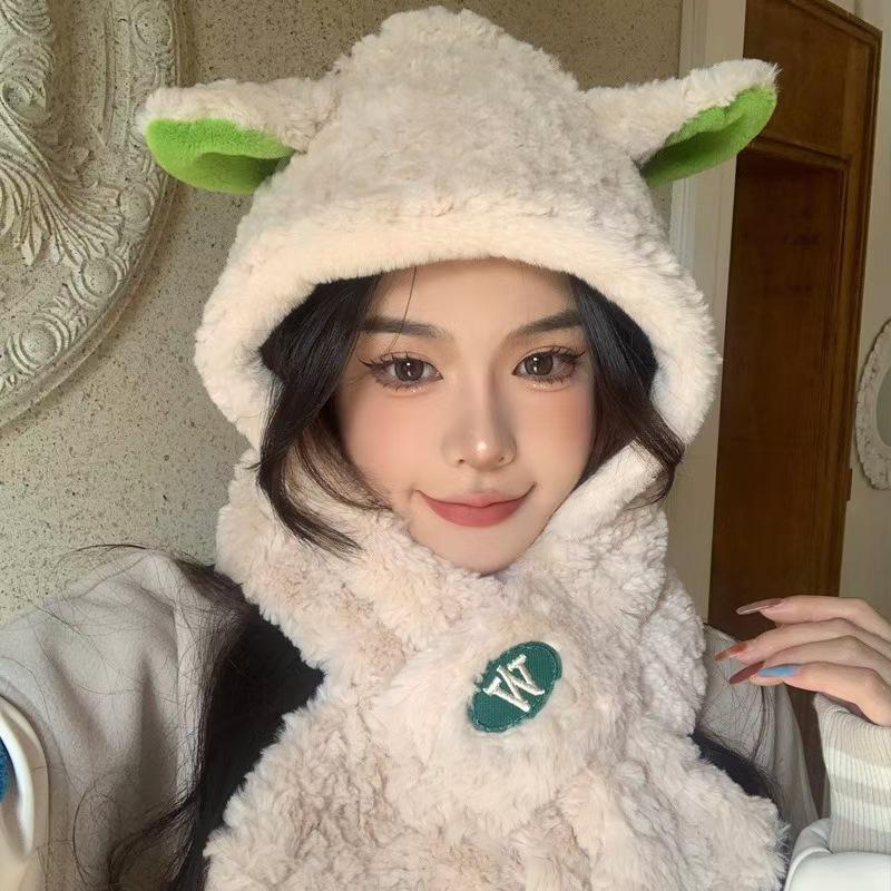 Lindo Gorro de Cordero y Bufanda Uno para Mujer Otoño e Invierno Peludo Cálido Protección para las Orejas Gorro Invierno Lei Feng