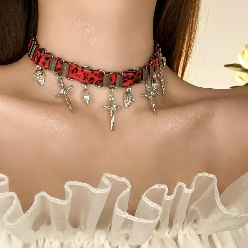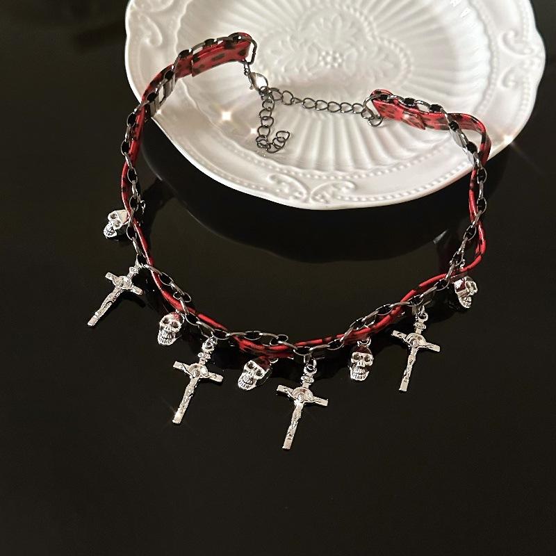 Collar de Cruz de Chica Caliente Estilo Ins de Celebridad de Internet Nicho Gargantilla Borla Distintivo Accesorios de Collar de Alta Gama