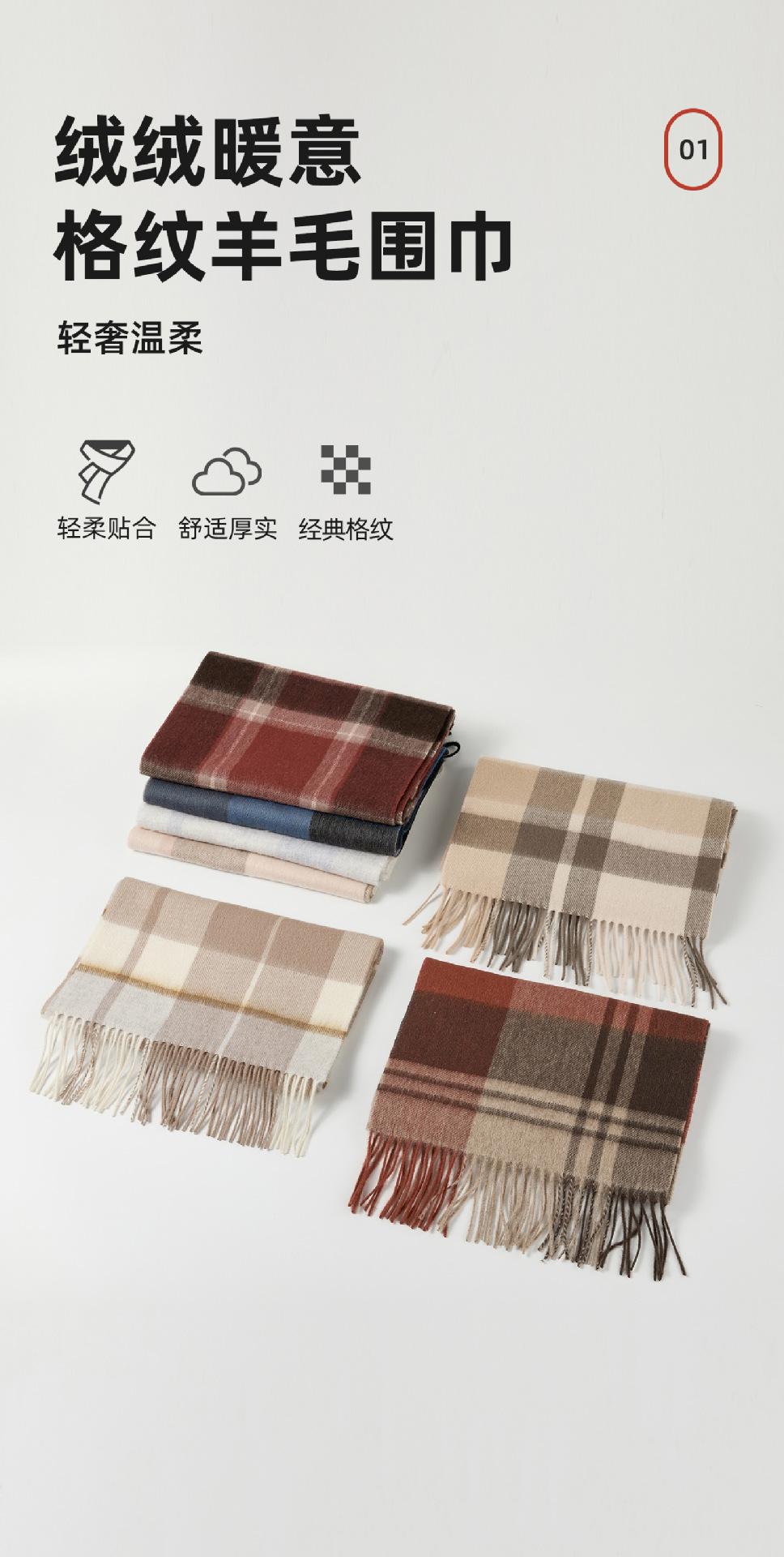 [En stock] Bufanda de lana 100% algodón puro cálida para otoño e invierno, estilo coreano, a la moda, a cuadros, de calidad.
