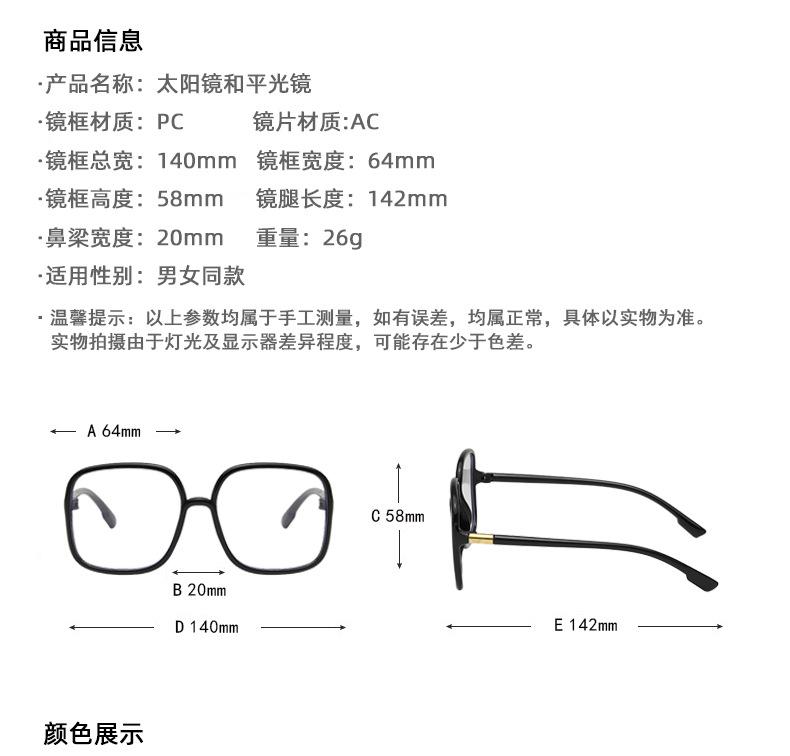 2024 Nuevas Gafas de Sol Retro Box Estampado de Leopardo Anti-UV Alto Sentido Montura Grande Estudiante Simple Espejo Plano