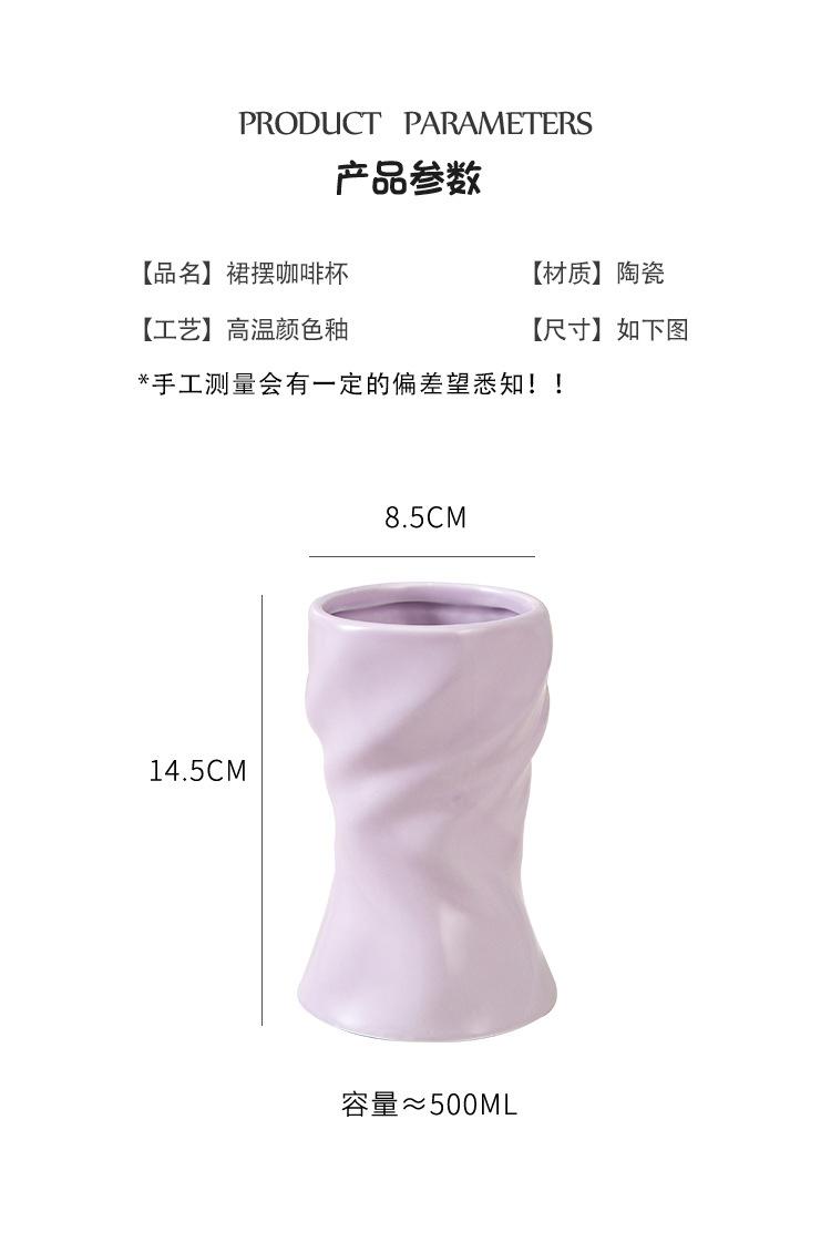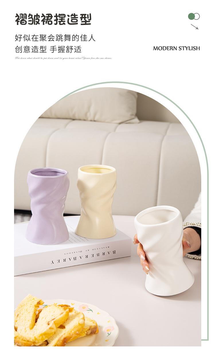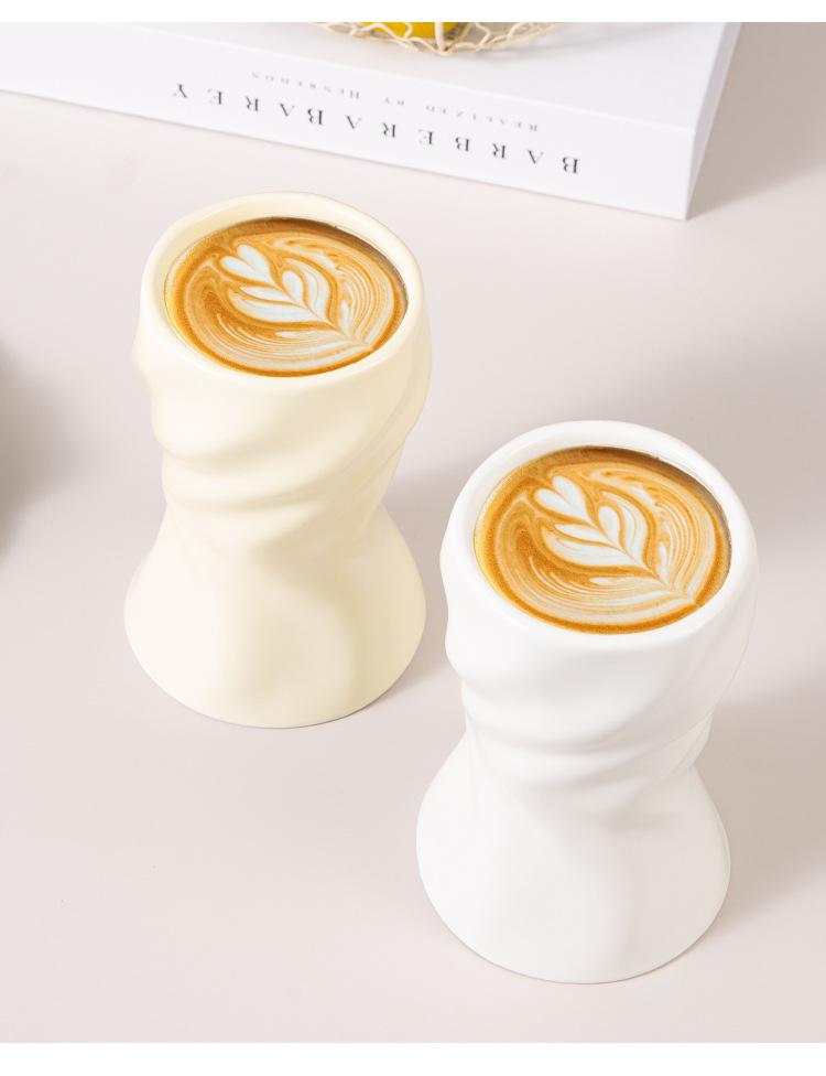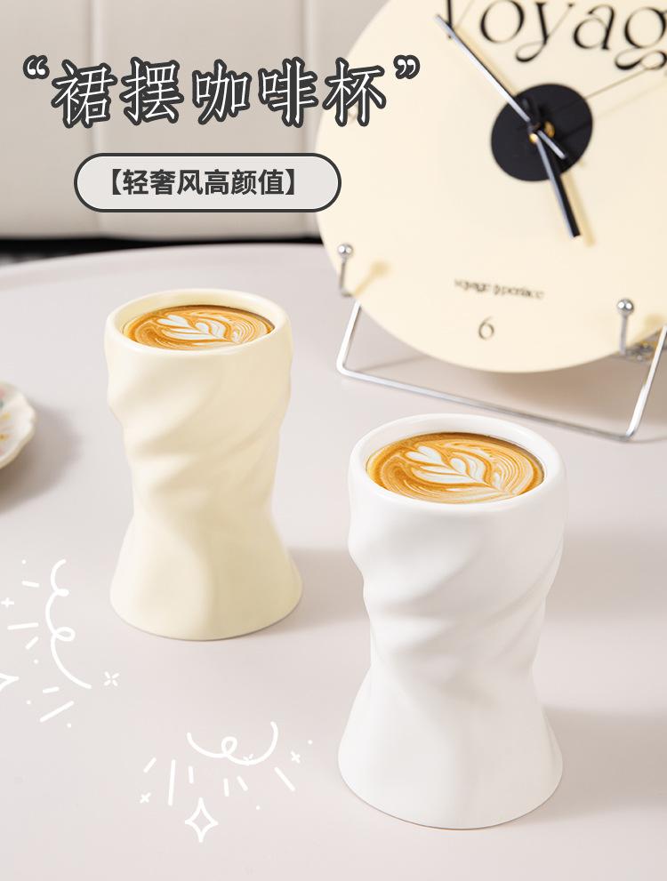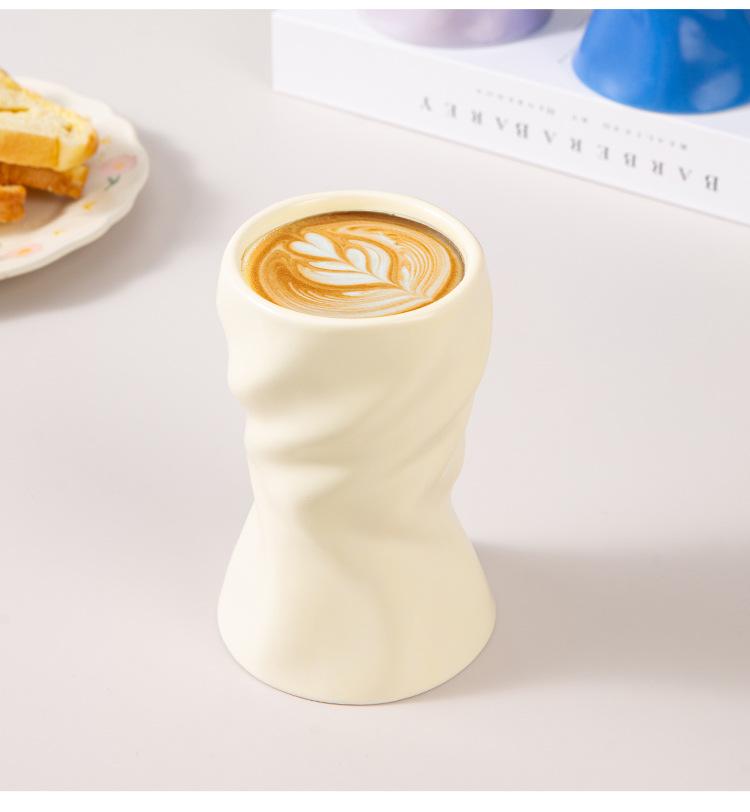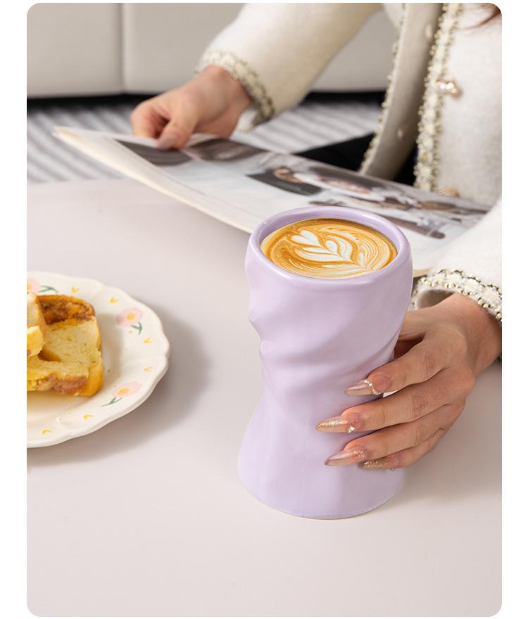Taza de café de alto valor, taza de café con leche, taza de cerámica creativa, taza de agua, diseño interior, taza plisada, taza de sujeción