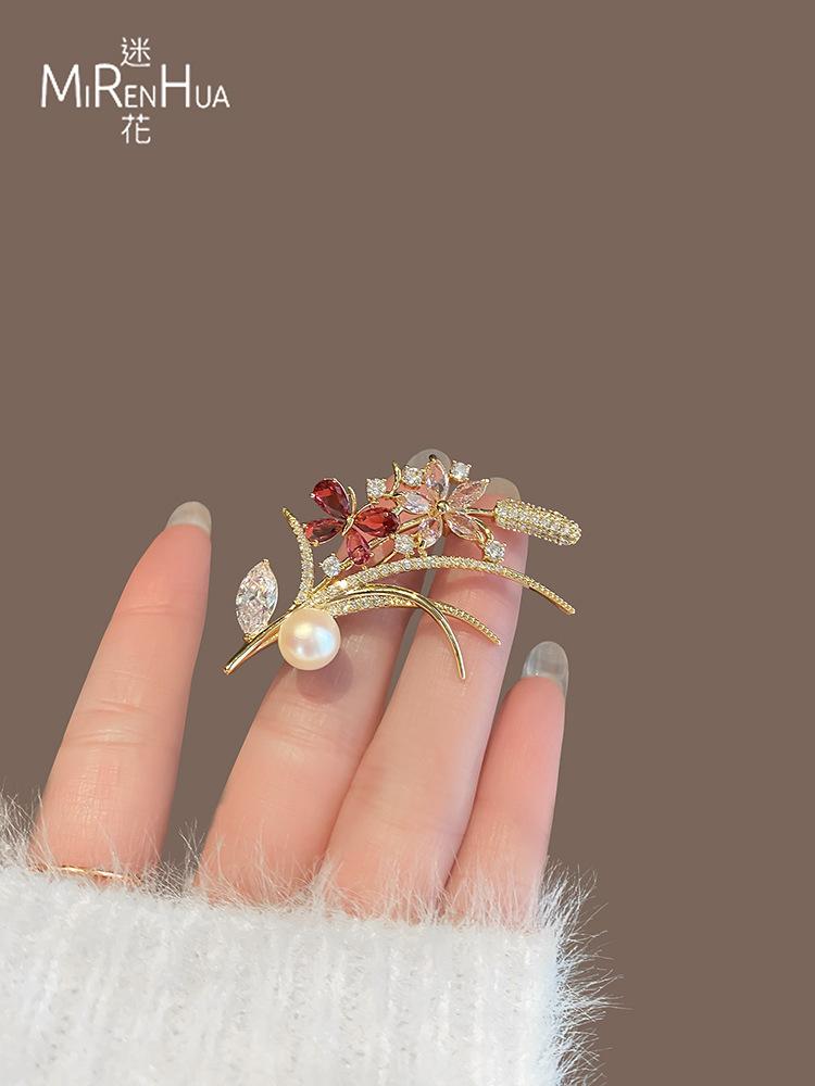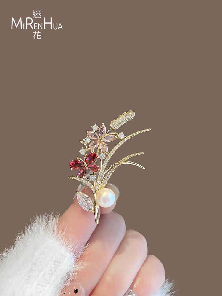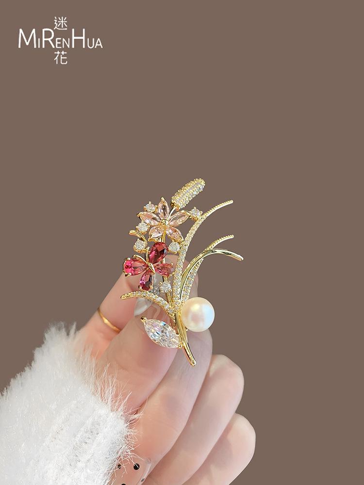 Broche pequeño de flor de perla fresca, de alta gama, para mujer, con diseño de nicho, ideal para traje, abrigo, ramillete, accesorios de regalo.