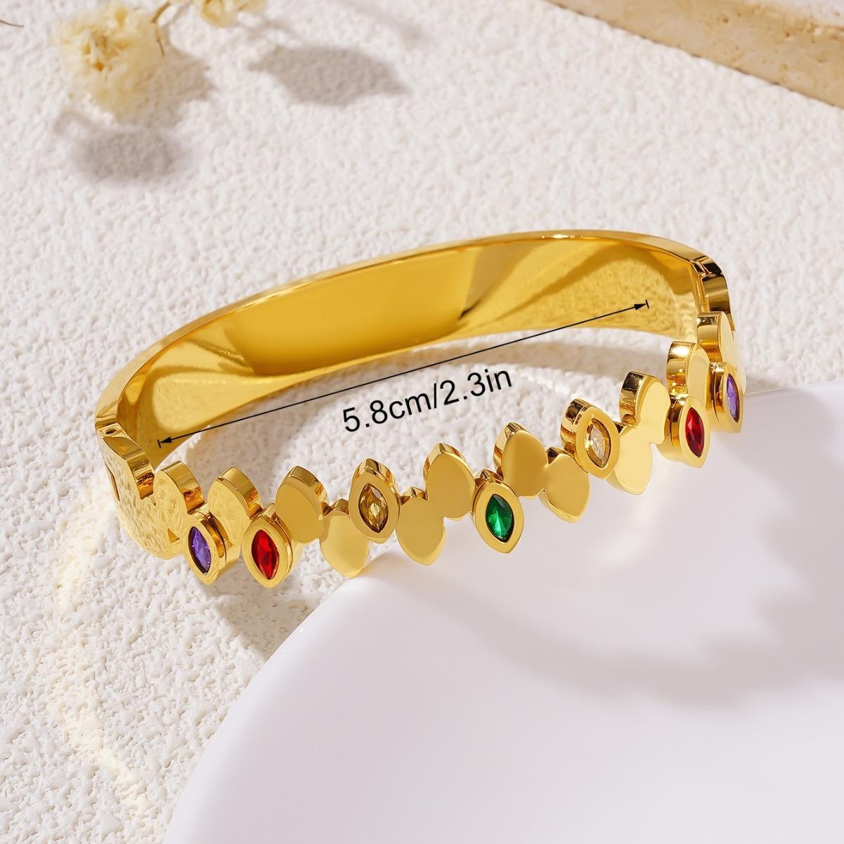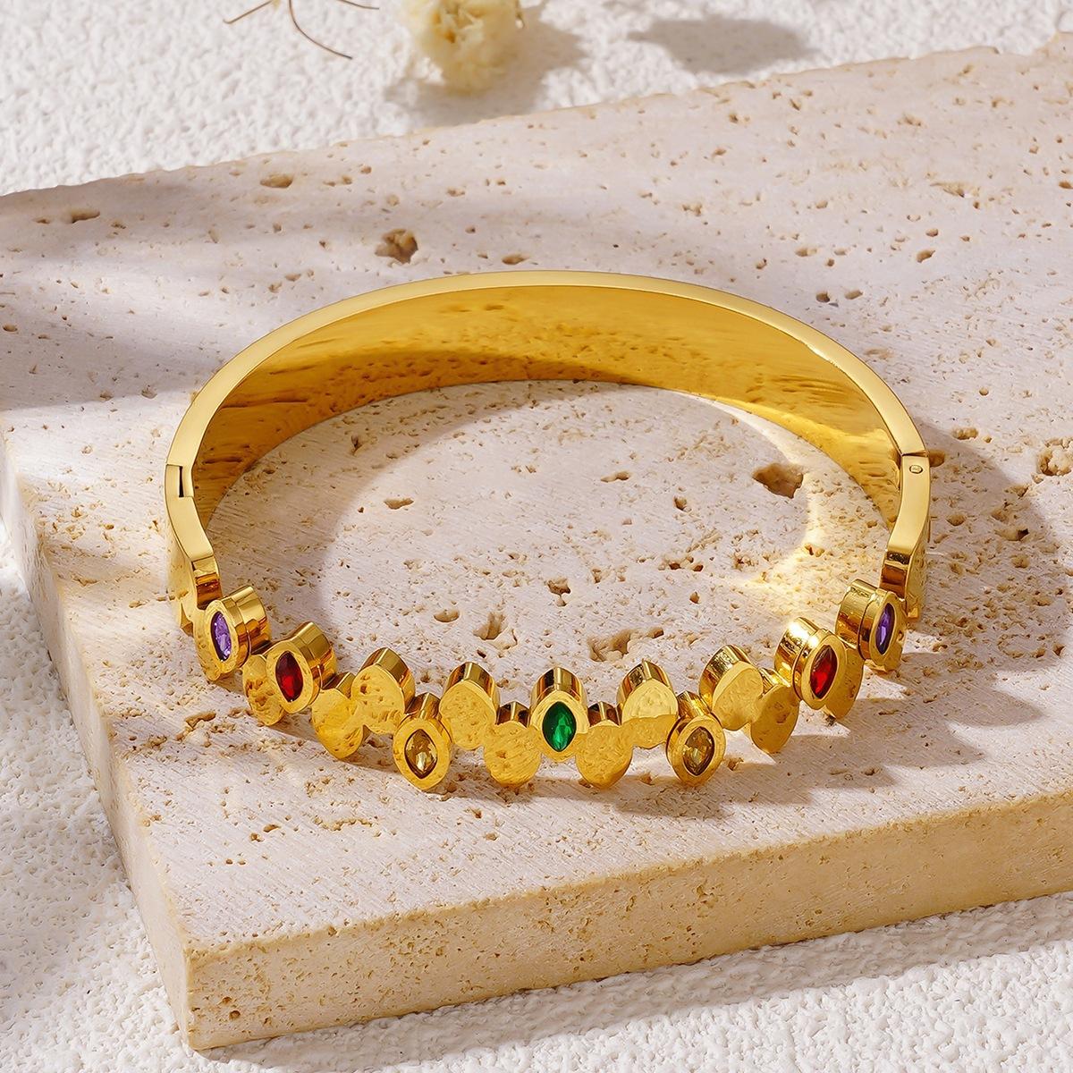 Pulsera Europea y Americana Simple de Acero de Titanio Chapada en Oro de 18K Personalidad Micro-incrustada Zircón Colorido Pulsera de Diamantes Completa Moda Ins Joya de Mano para Mujer
