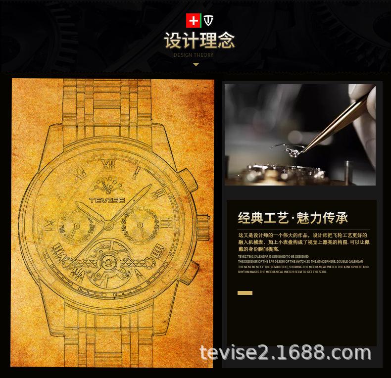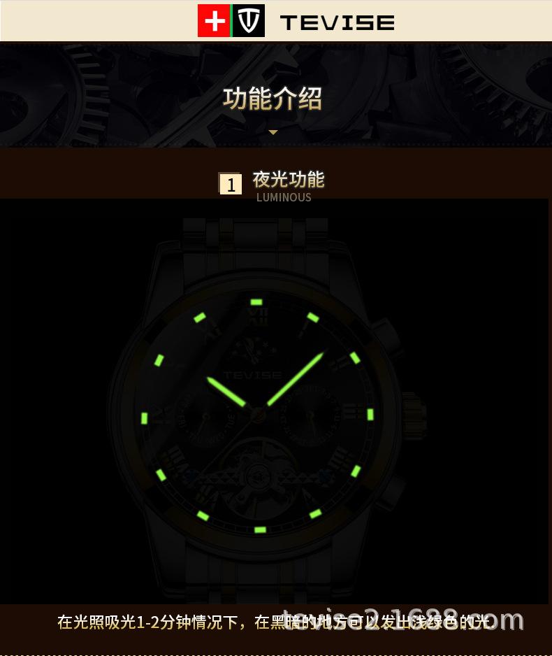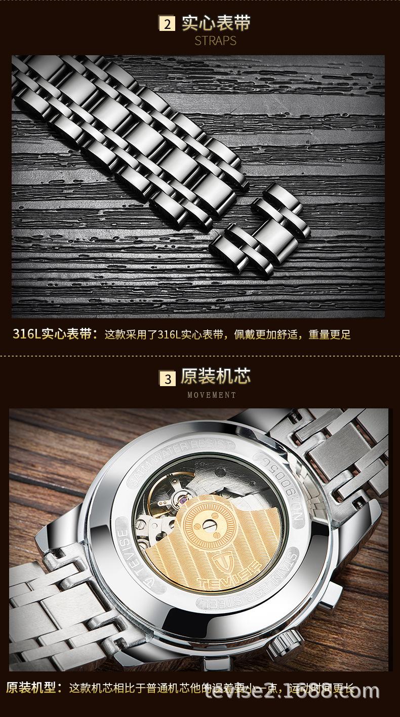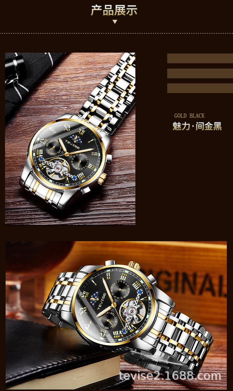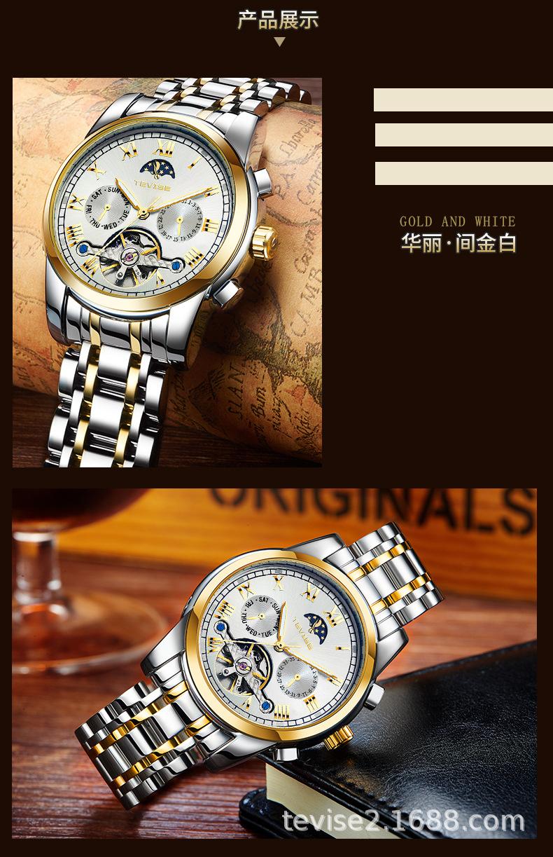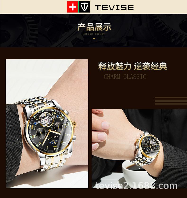 Reloj Nuevo para Hombre Tevise Celebridad de Internet Reloj Fase Lunar Estrella Impermeable Luminoso Reloj Tourbillon