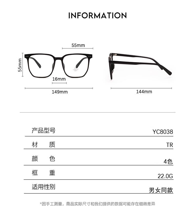 Yc-8012c1 bright black frame, Yc-8012c2 sand black frame, Yc-8012c3 transparent gray, Yc-8012c4 transparent wh...