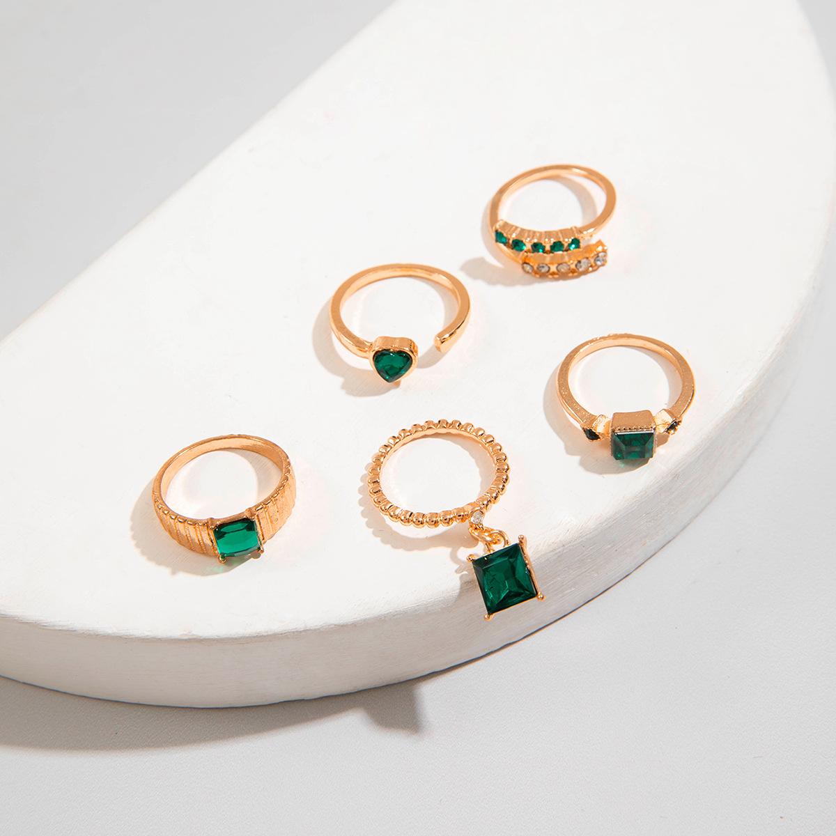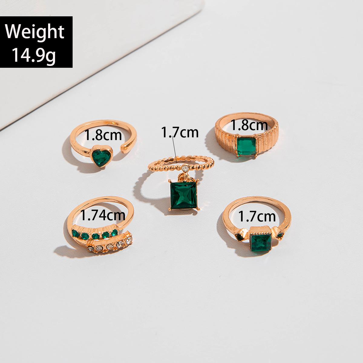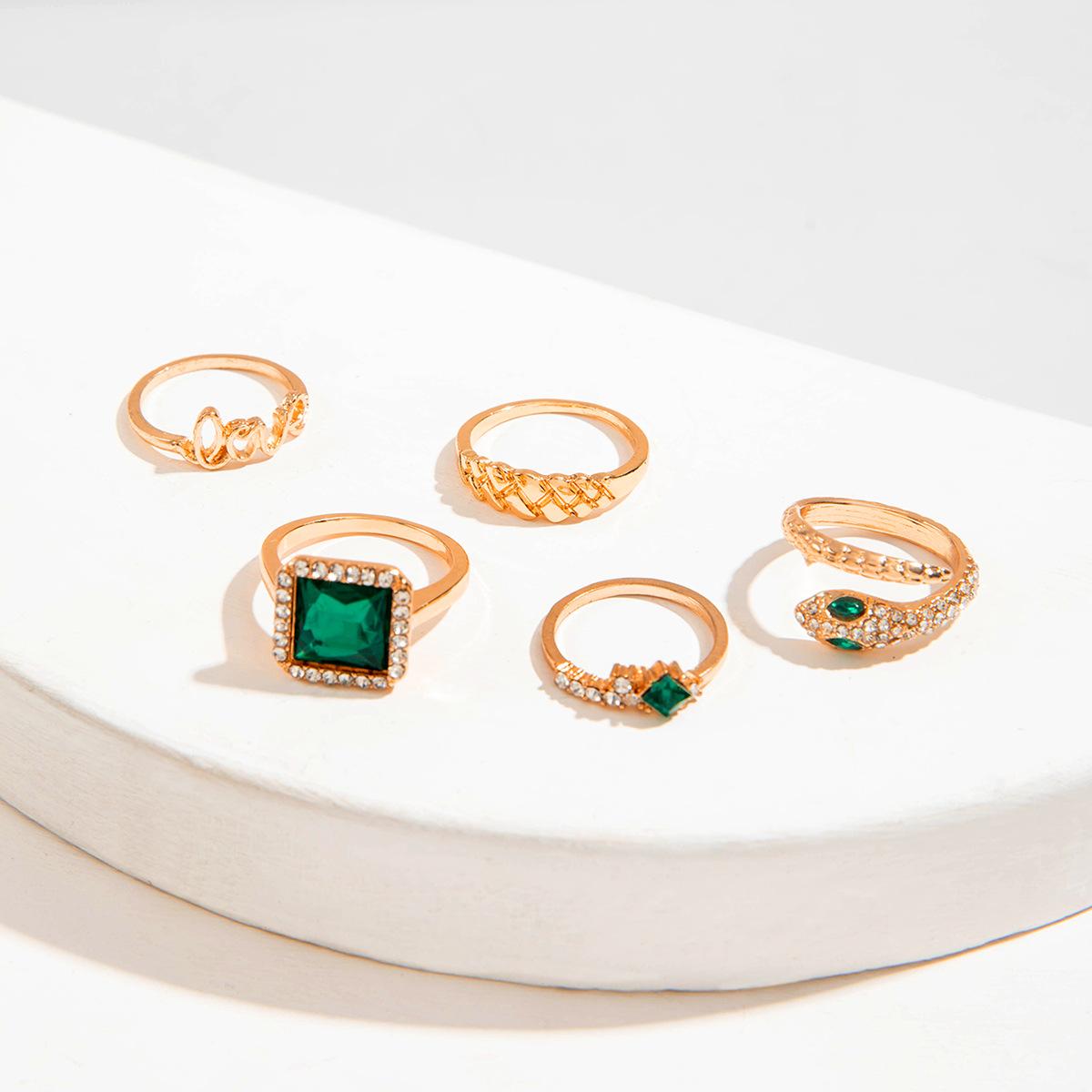 Juego de anillos europeos y americanos retro transfronterizos de metal con imitación de esmeralda y diseño de anillos de amor y con forma de serpiente