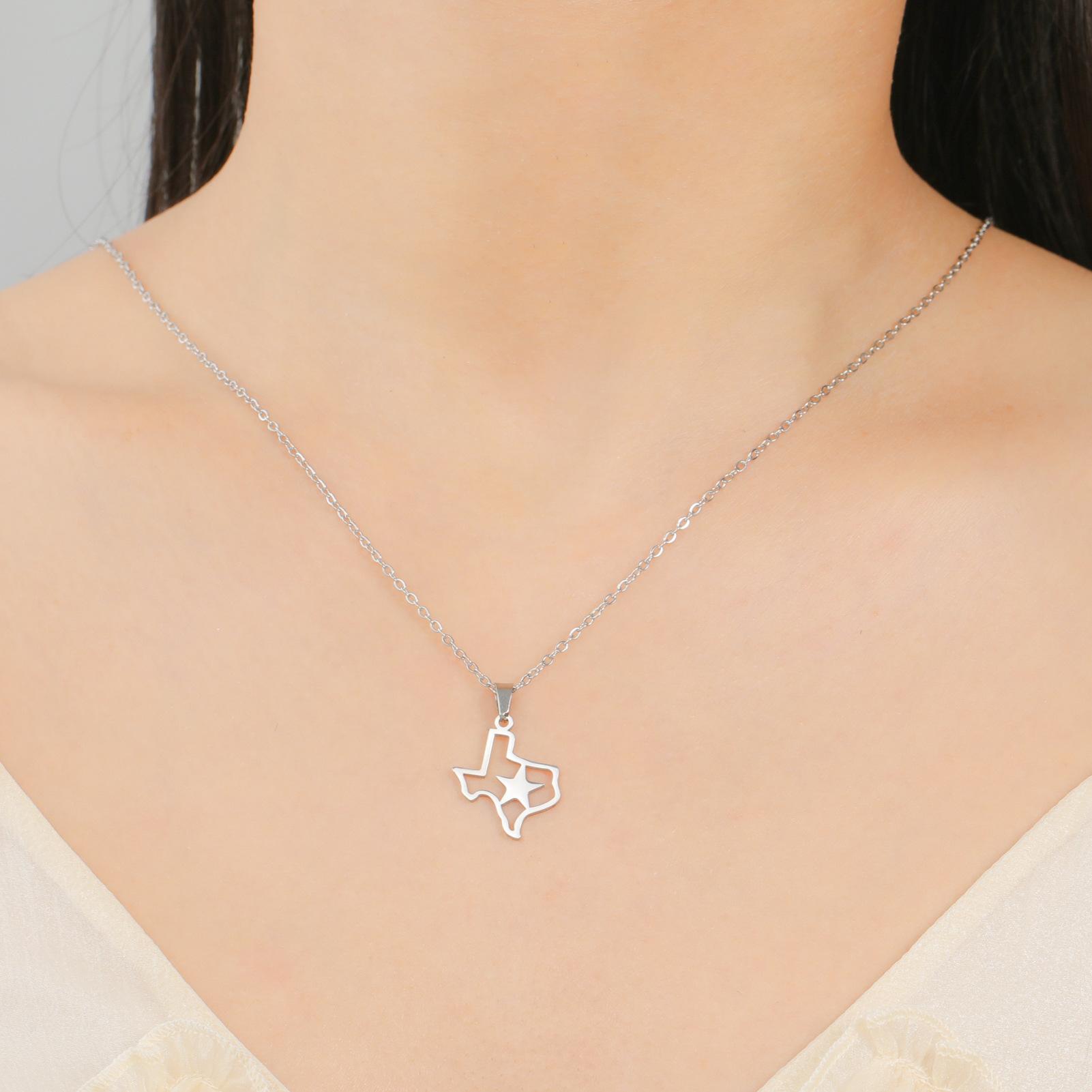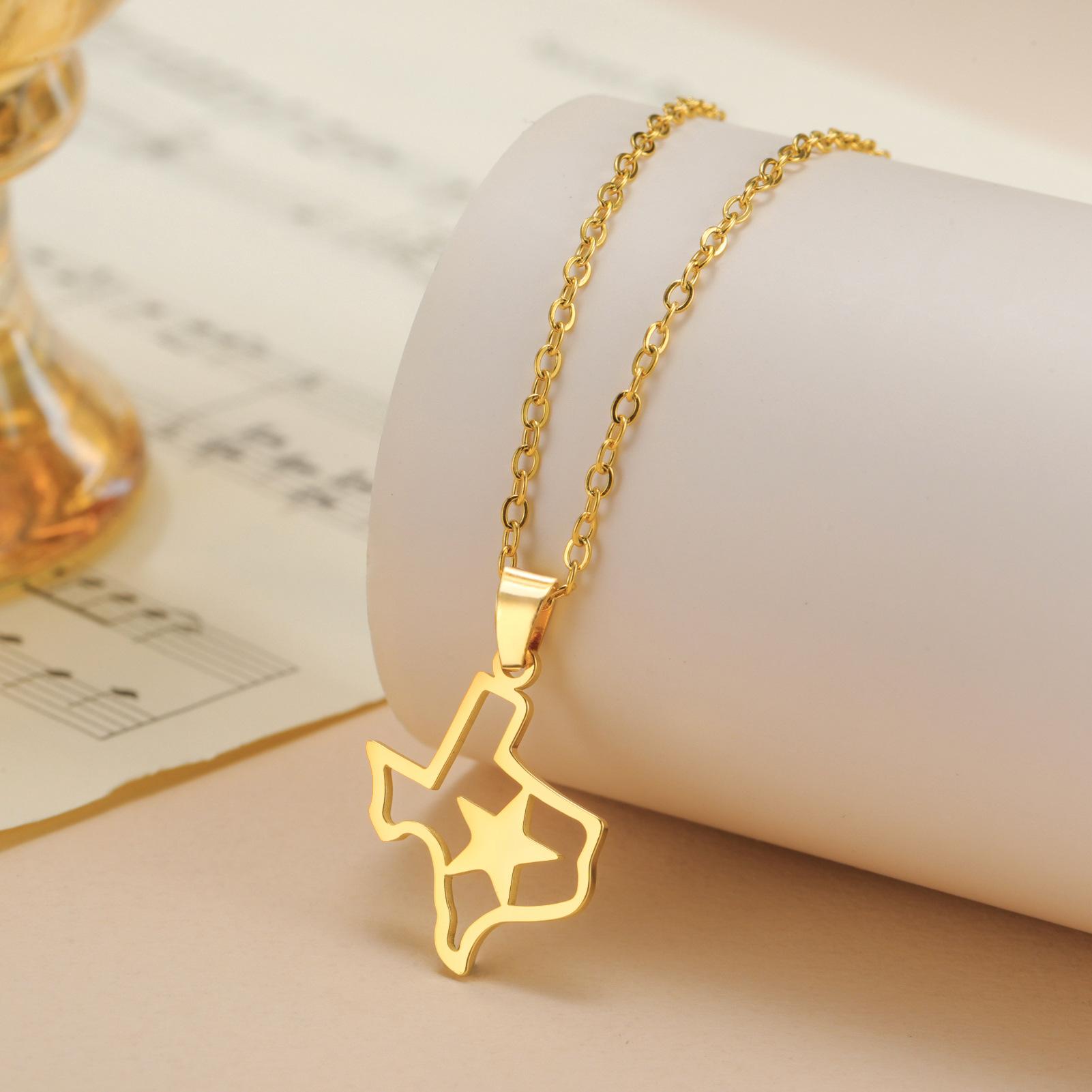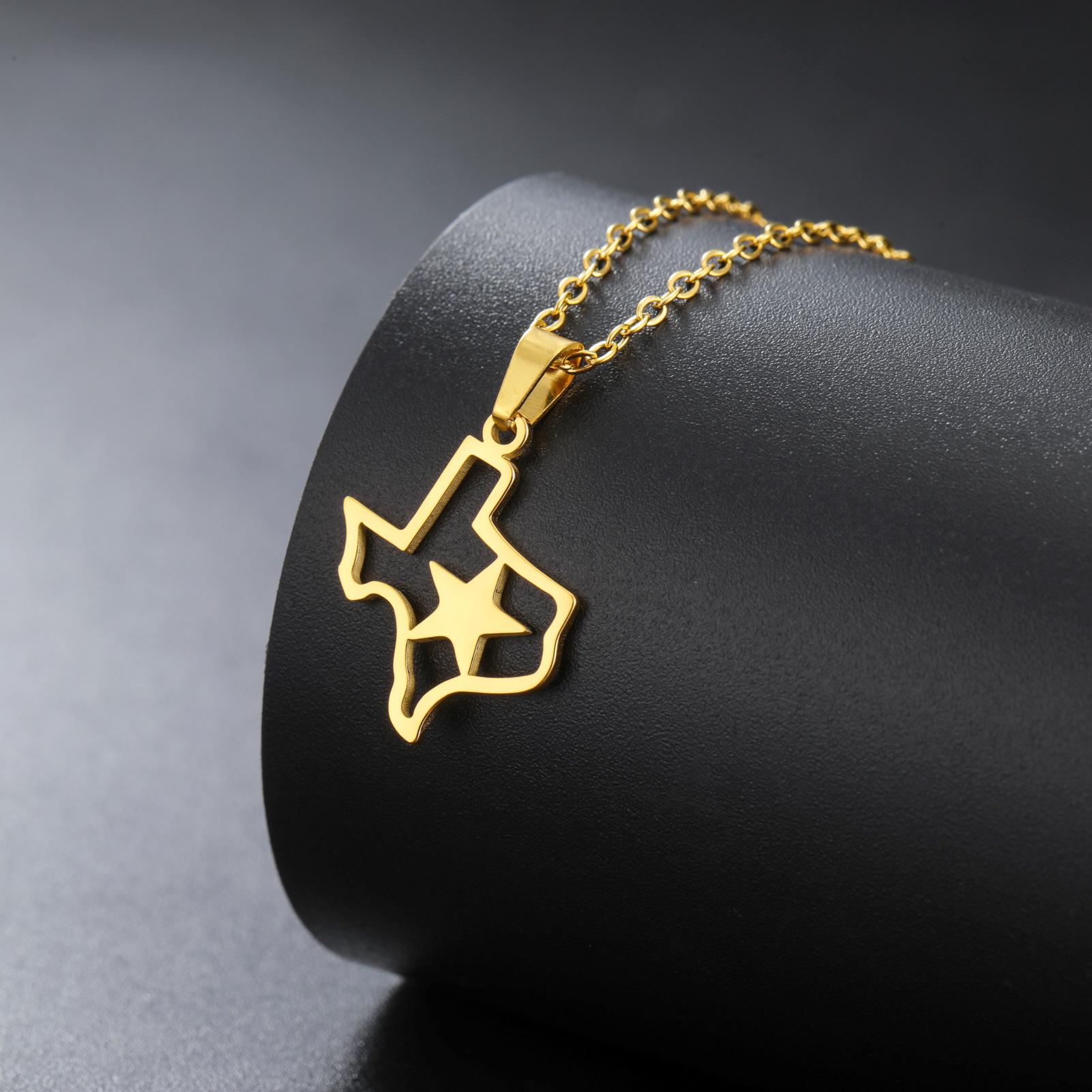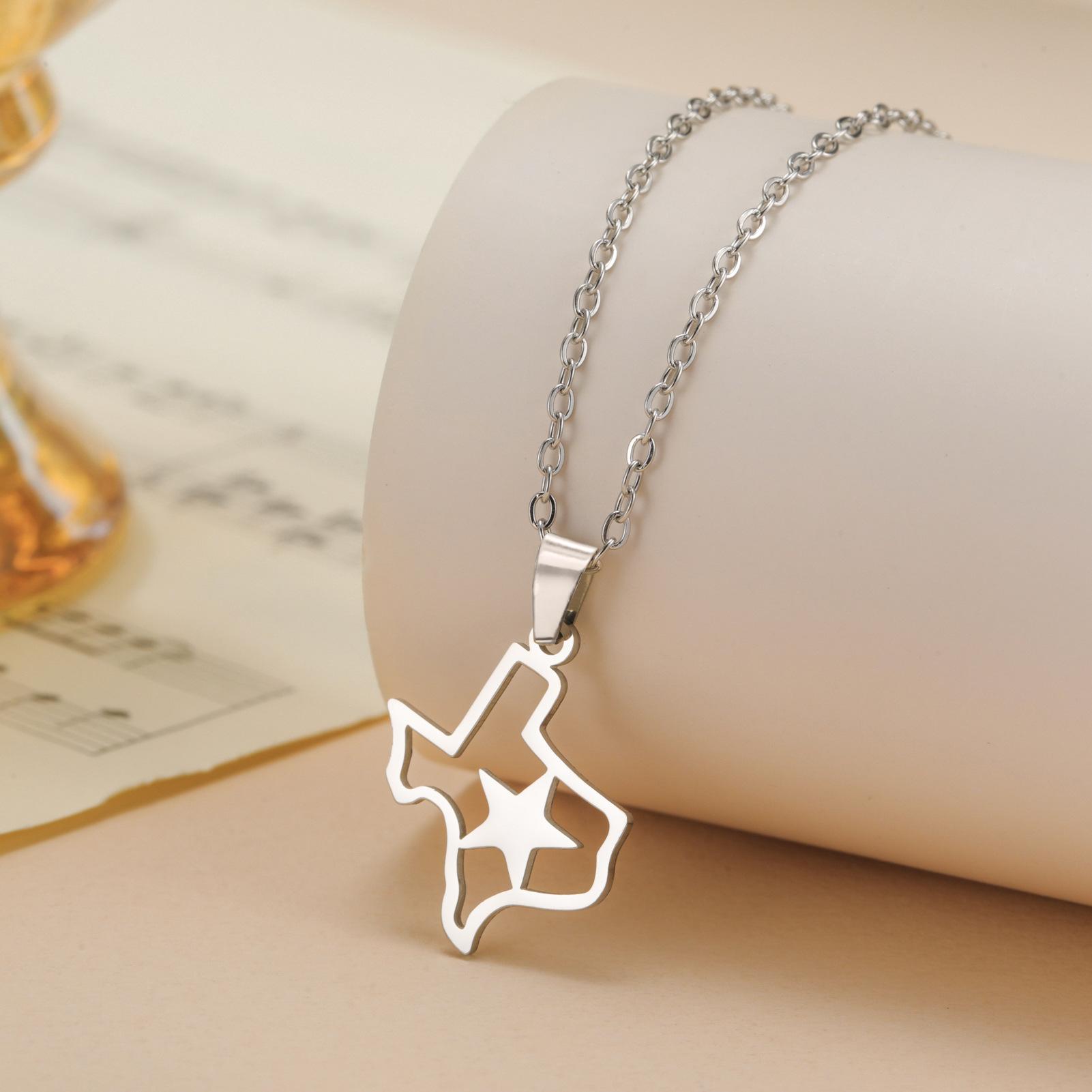 Collar de acero de titanio de corte transfronterizo de Europa y Estados Unidos con colgante de estrella de cinco puntas con mapa hueco, tendencia de moda, collar de acero inoxidable 304