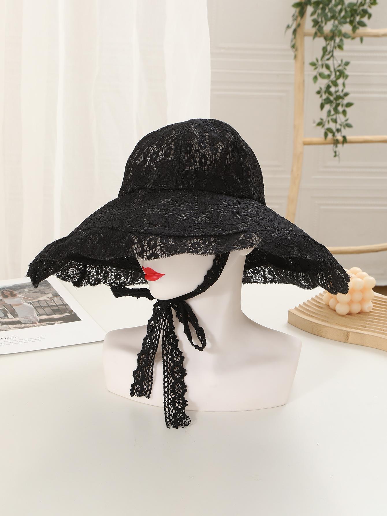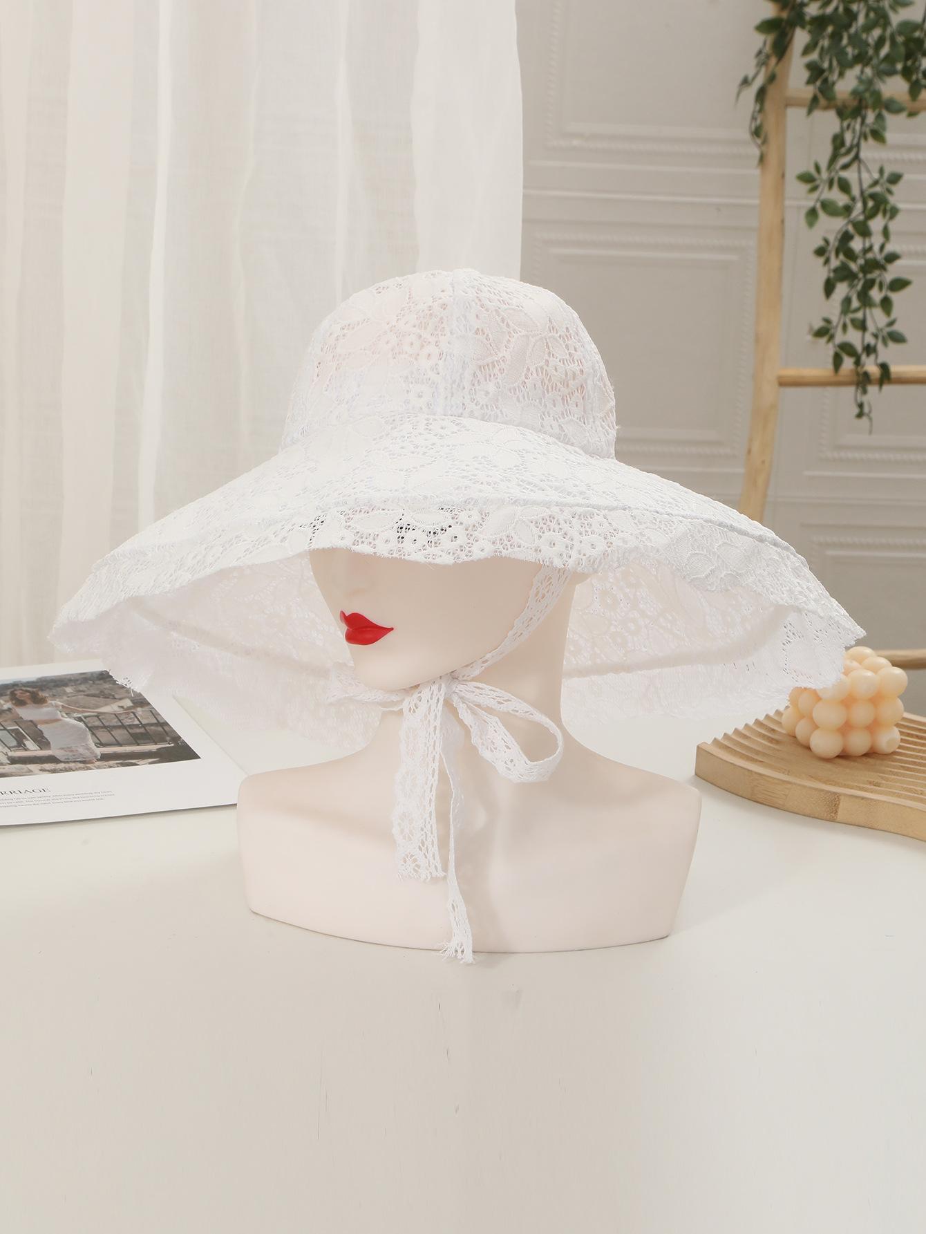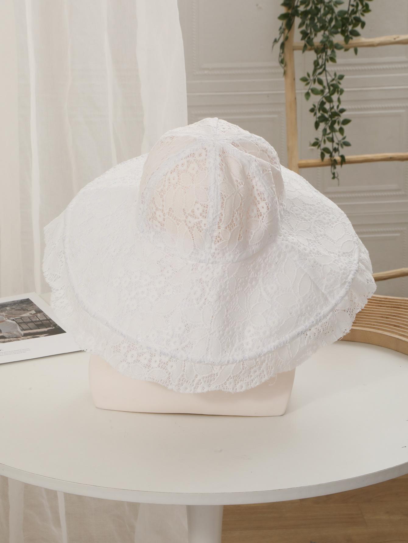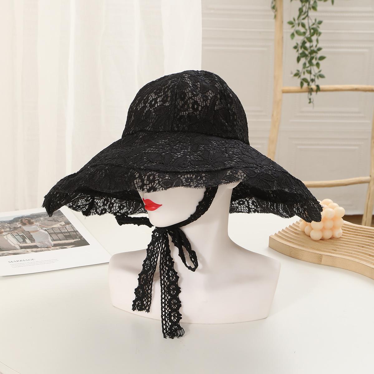 Sombrero de Verano para Mujer de Ala Grande con Encaje Sombrero de Pescador Estilo Coreano Moderno Combinable ins Delgado Parasol Sombrero de Sol Japonés