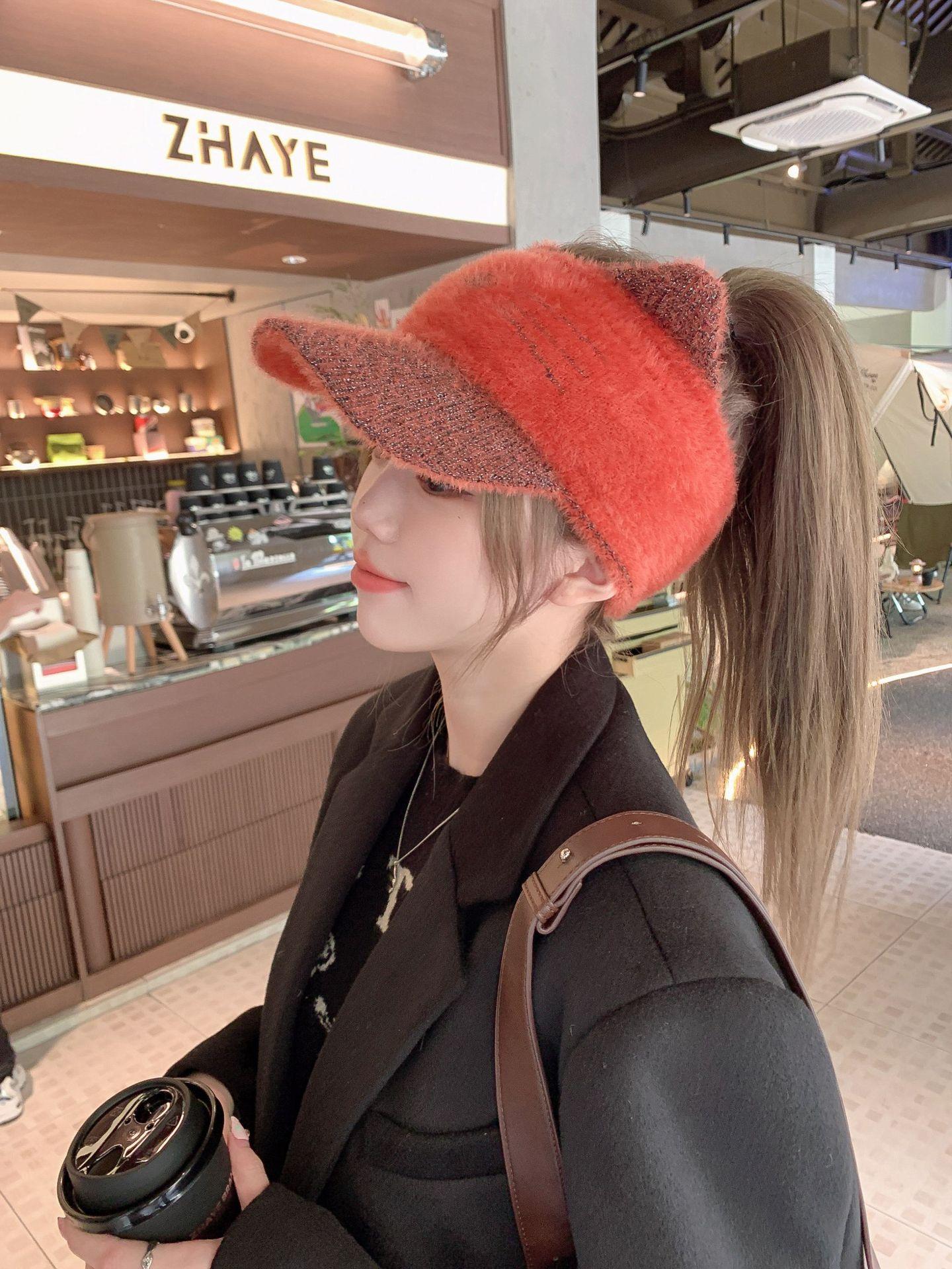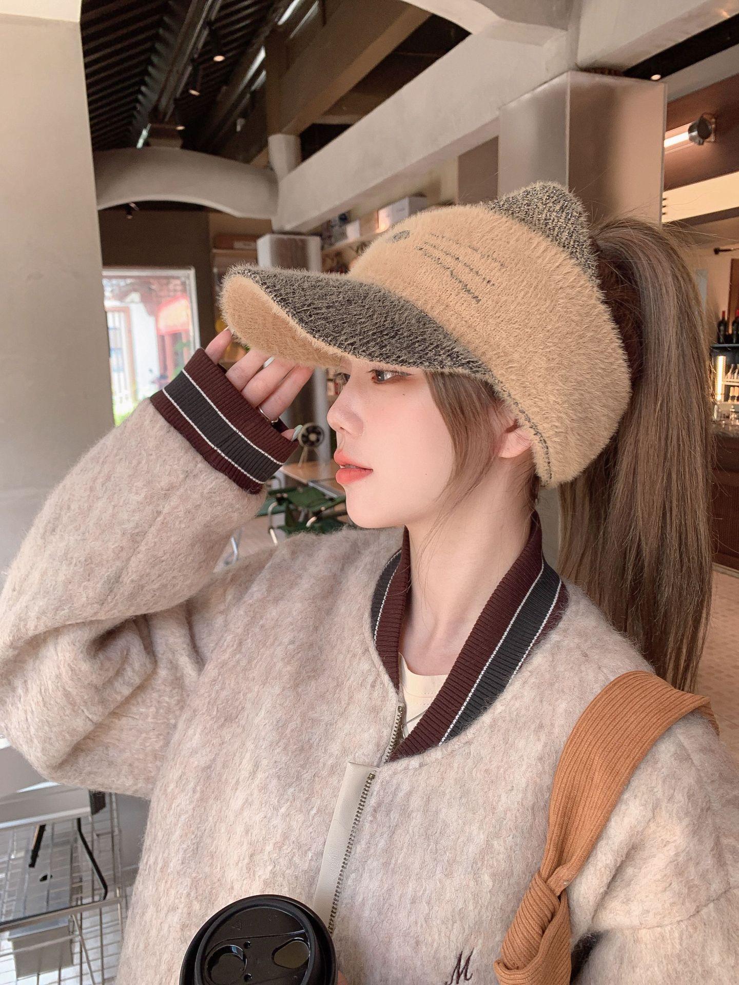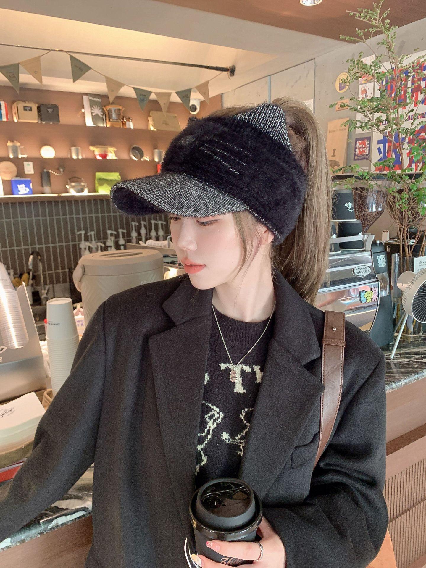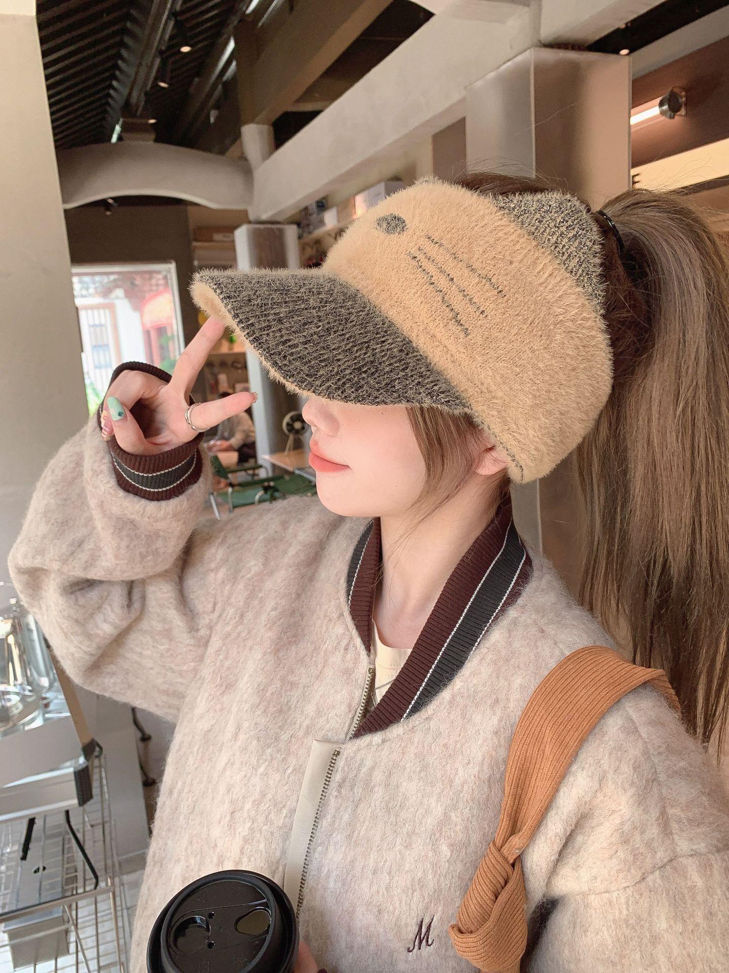 Sombrero Otoño e Invierno Moda para Mujer Cálido con forro polar Tejido Béisbol Mujer Lengua de Pato Lana Gorra Vacía Invierno Cara Pequeña